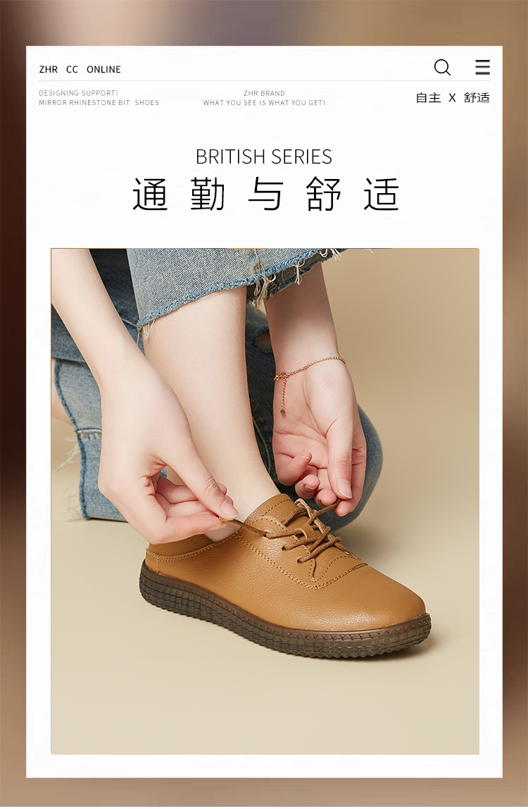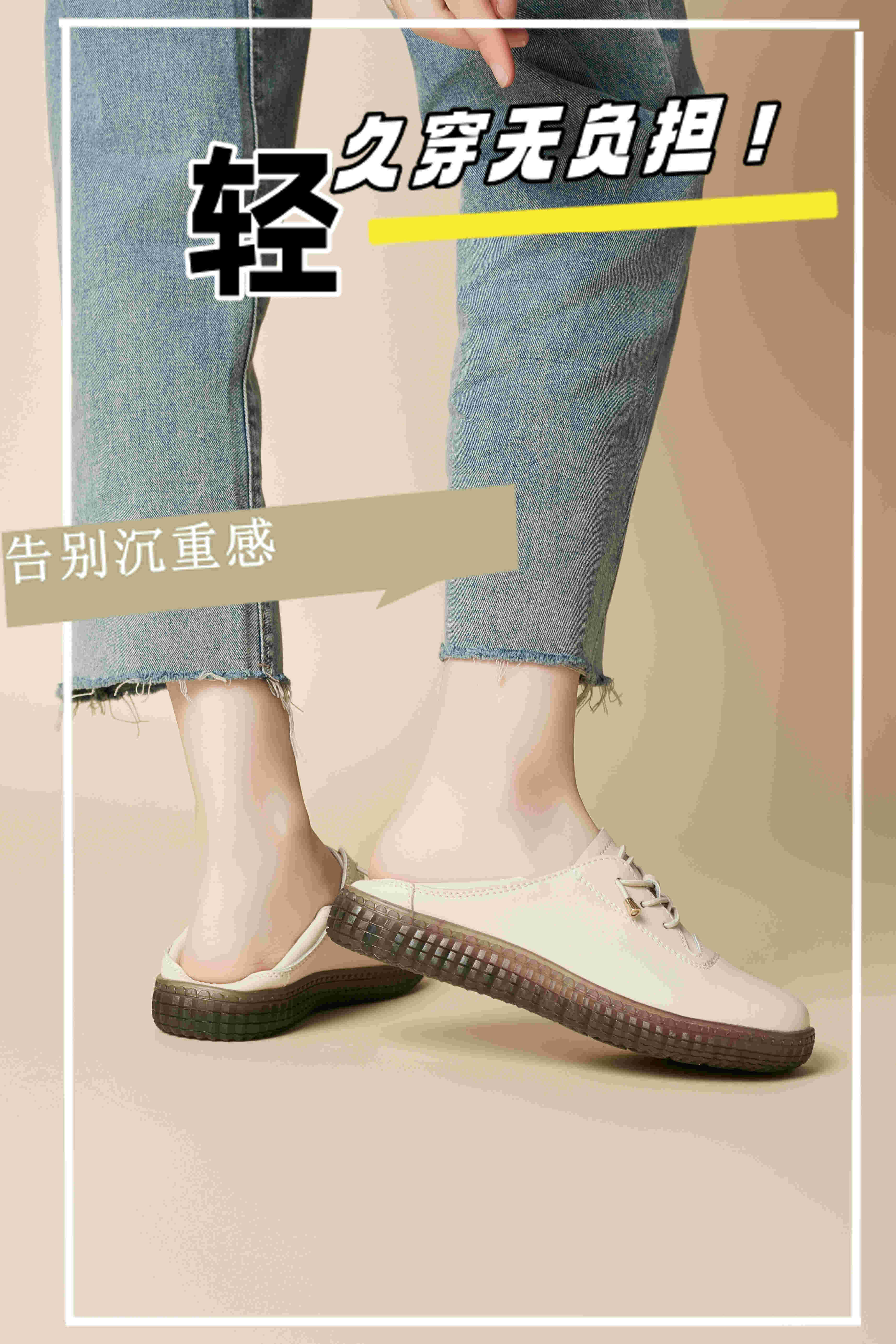 步印【舒适百搭】真皮圆头一脚蹬豆豆鞋2502
