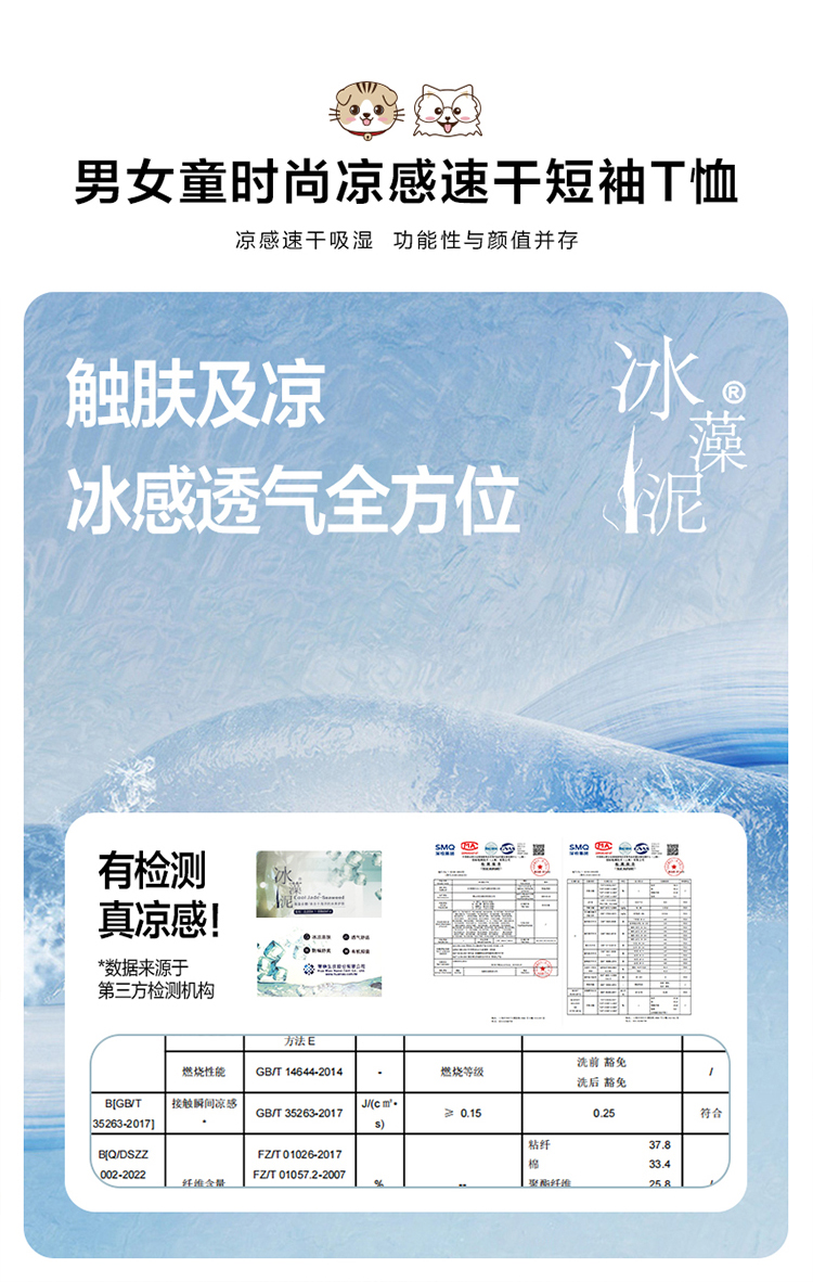 笛莎千与2025夏新款男女童同款时尚凉感速干短袖T恤