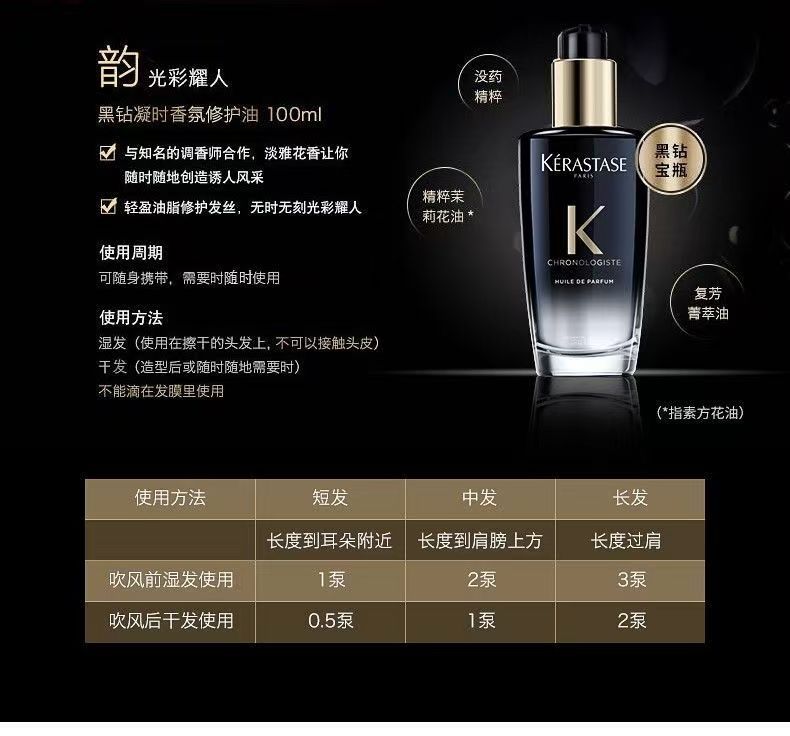 【双12特惠 】【买一送一】KERASTASE卡诗黑钻钥源护发香氛精油柔顺抗毛躁100ML送50ML中样