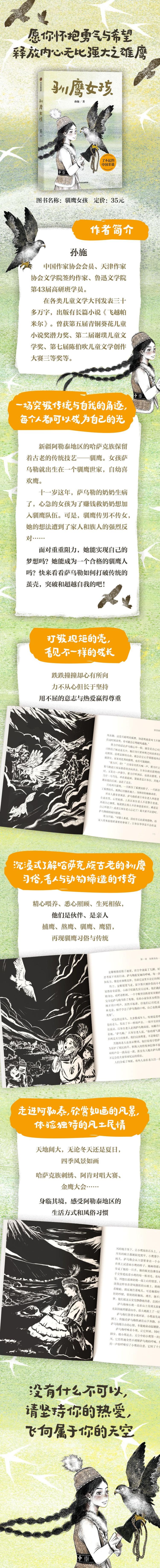 《驯鹰女孩》的故事发生在阿勒泰地区,在这里,哈萨克族一直保留着驯鹰的传统。女孩萨乌勒出生在驯鹰世家,自幼喜欢鹰。十一岁这年,萨乌勒的奶奶生病了,心急的女孩为了赚钱救奶奶想加入驯鹰队伍。可是,驯鹰传男不传女,她的想法遭到了族人的强烈反对。在经历了反抗、努力、妥协等风波后,萨乌勒坚决地走上了驯鹰的道路……她的驯鹰之路还会遇到什么阻力吗?她能成为一个驯鹰人吗?快跟随女孩一起打破传统,追寻属于自己的那片天空吧!