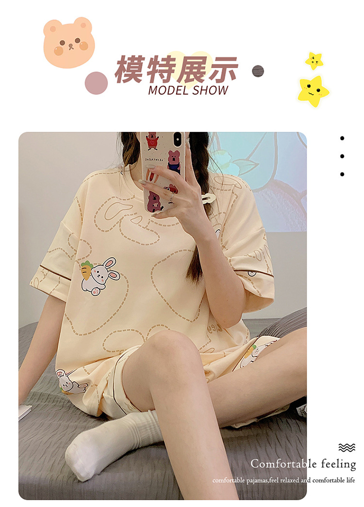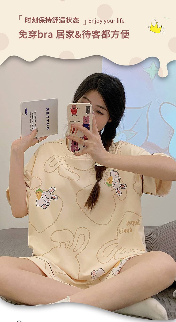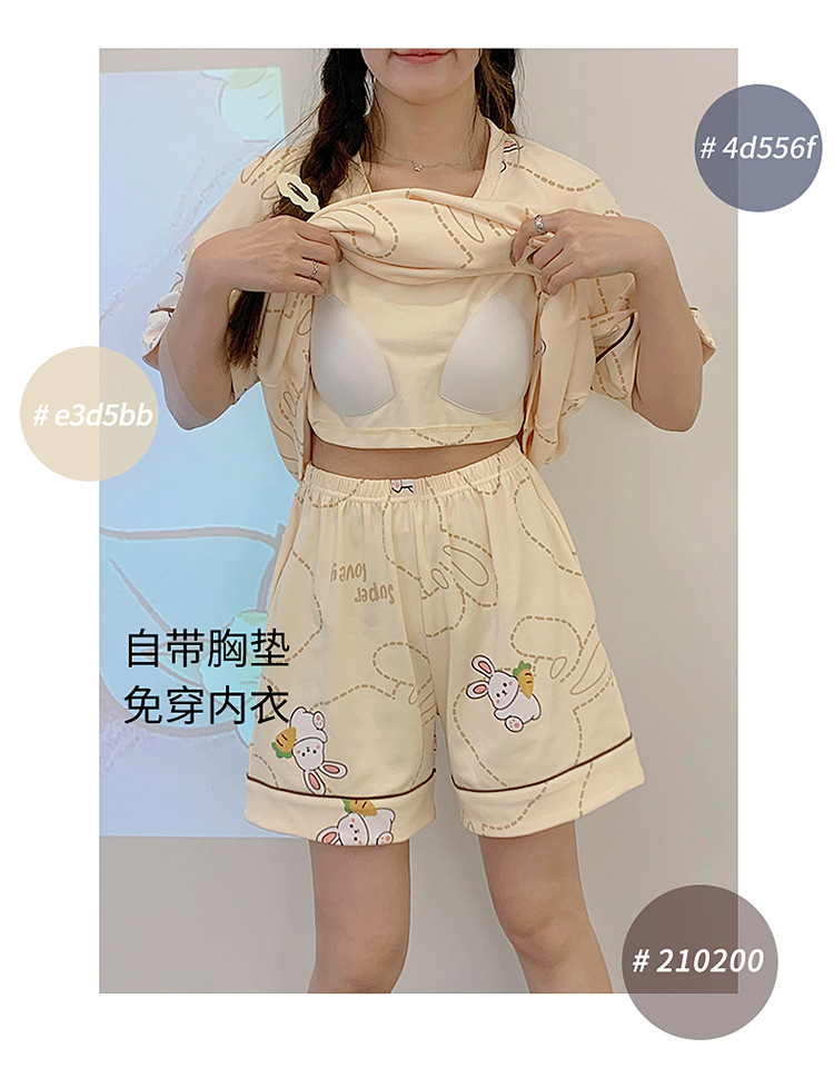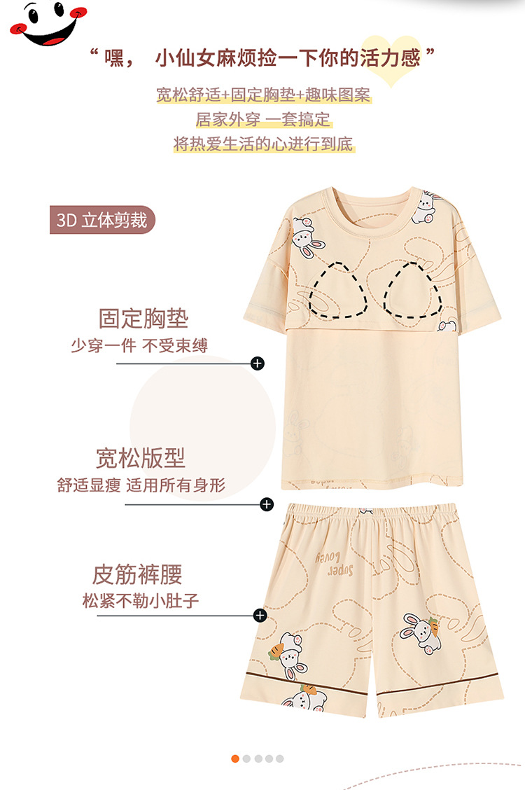 2025新款【带胸垫睡衣女 夏天纯棉短袖套装】初夏款 家居服女 网红风夏季家居服