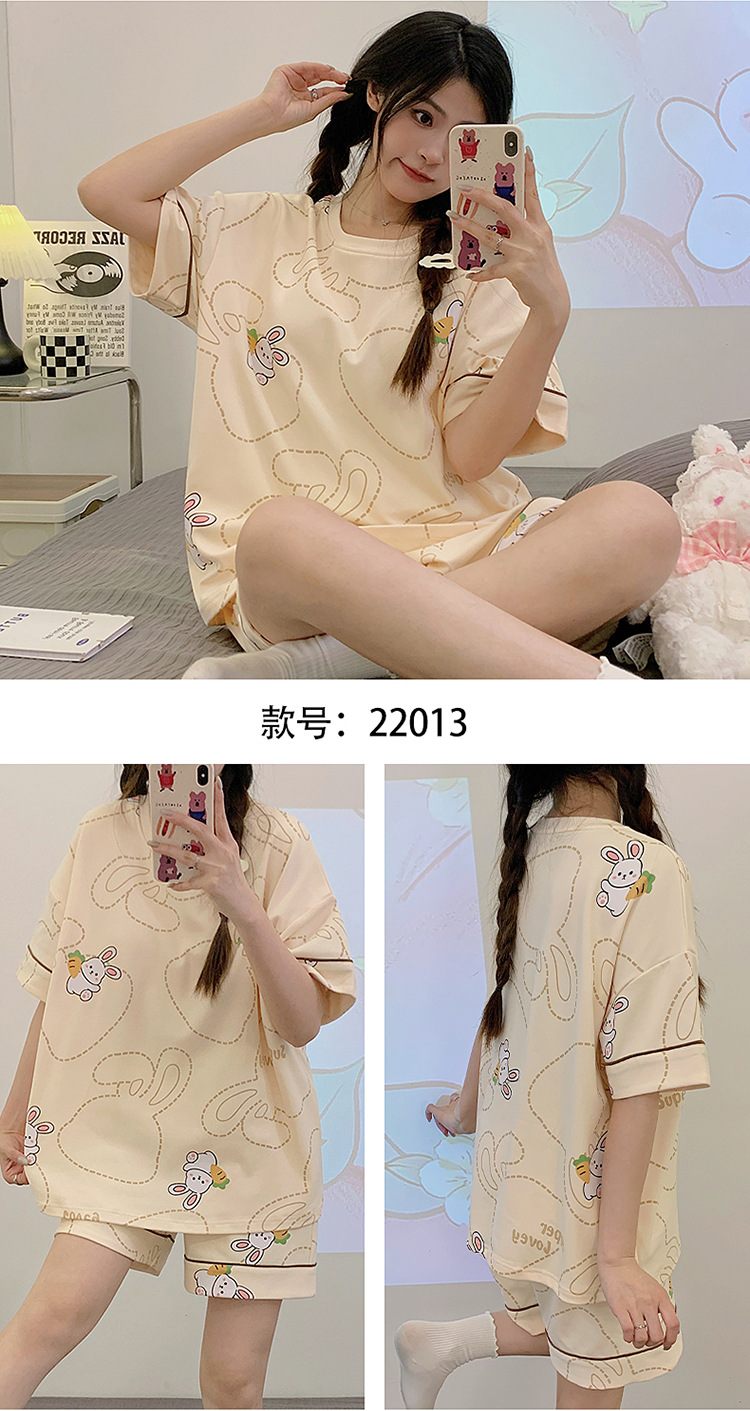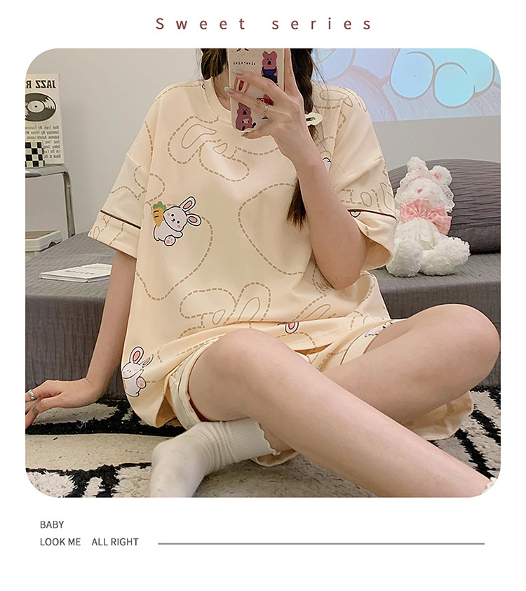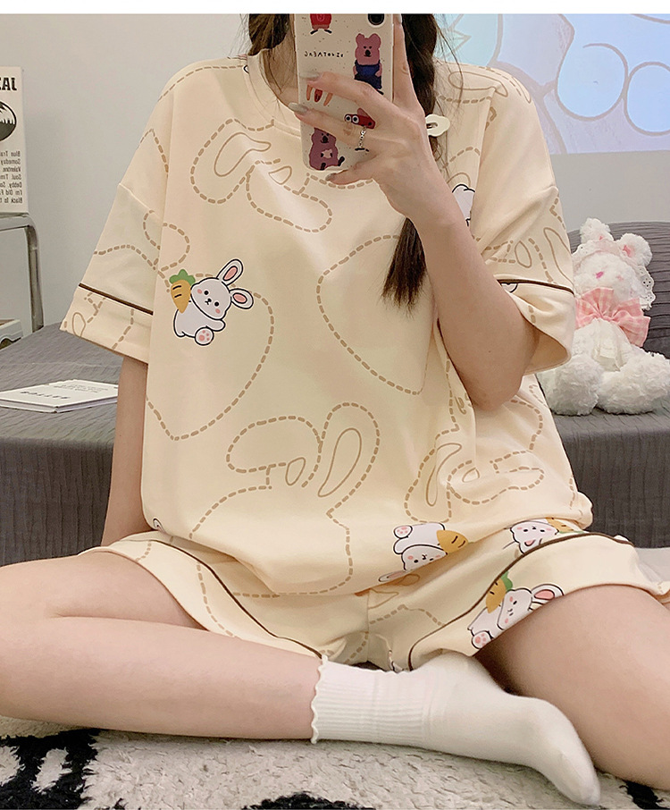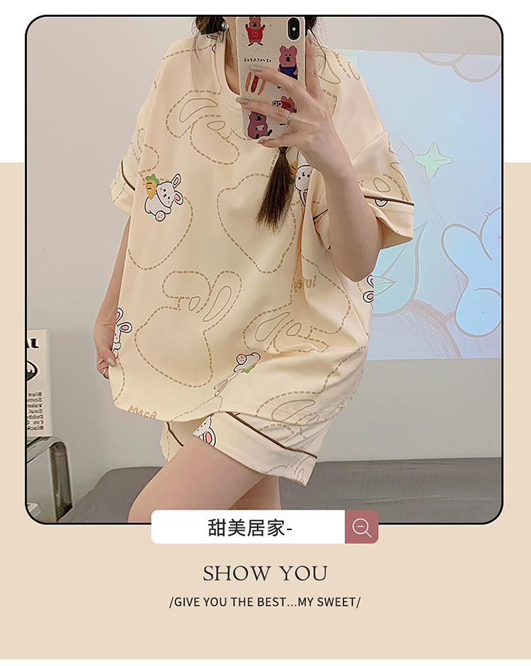 2025新款【带胸垫睡衣女 夏天纯棉短袖套装】初夏款 家居服女 网红风夏季家居服