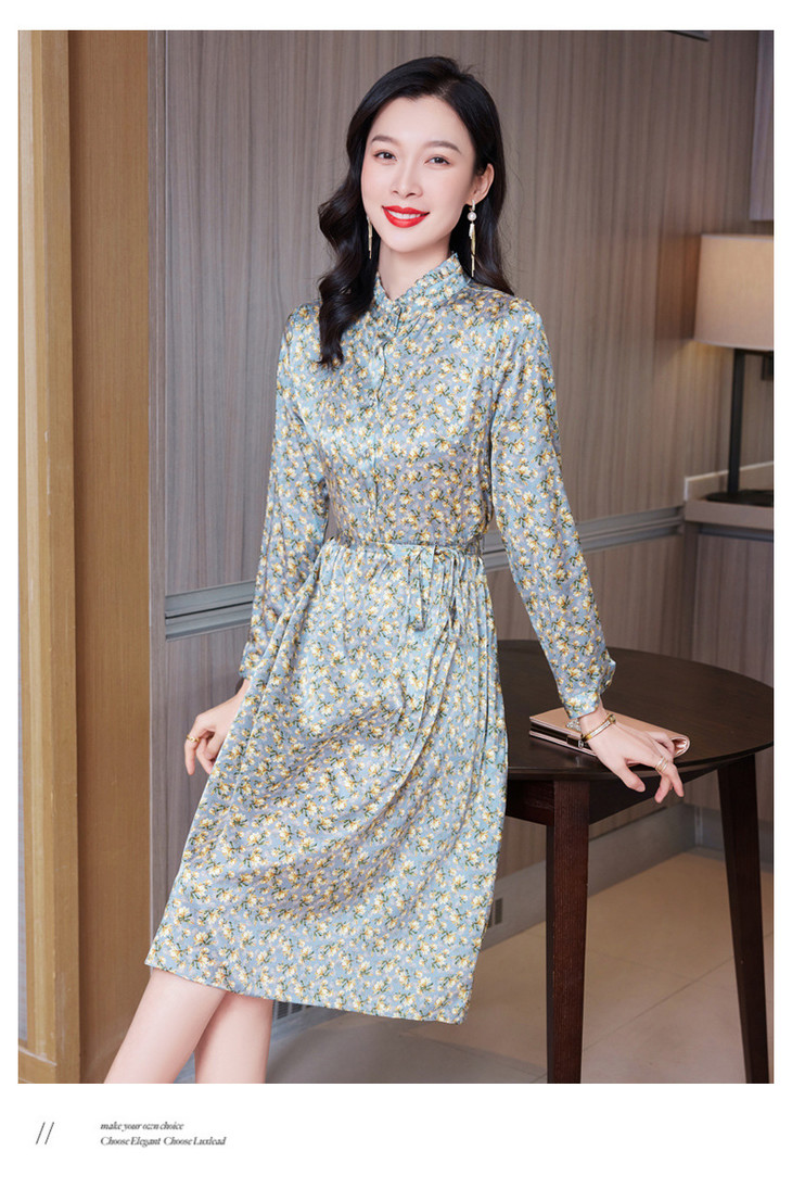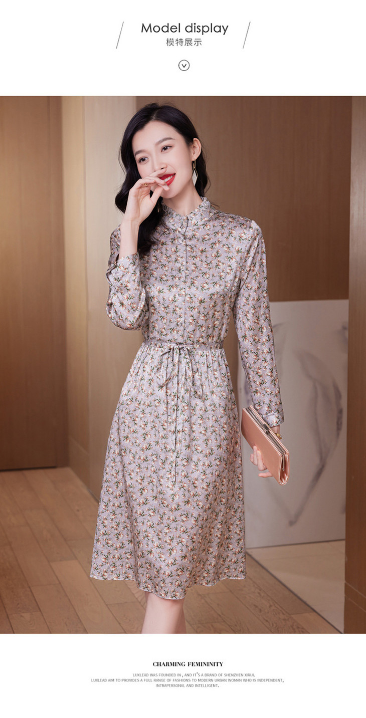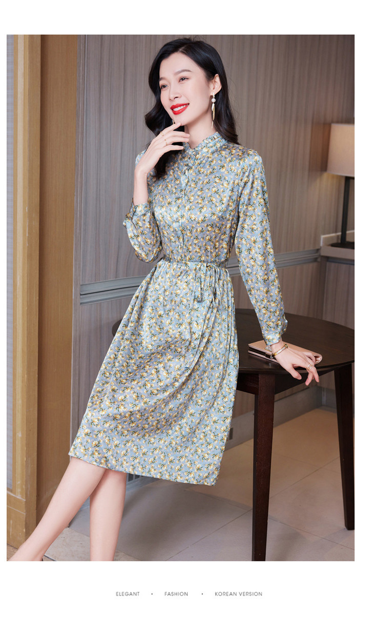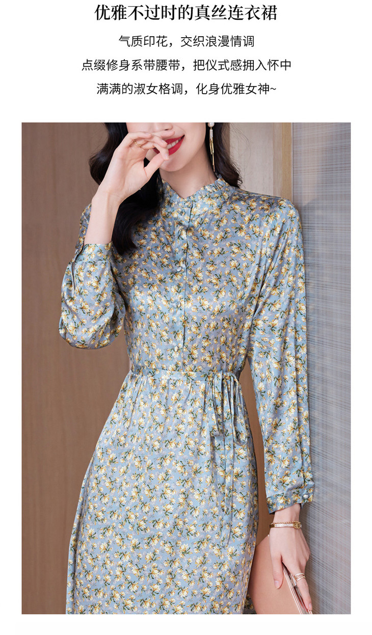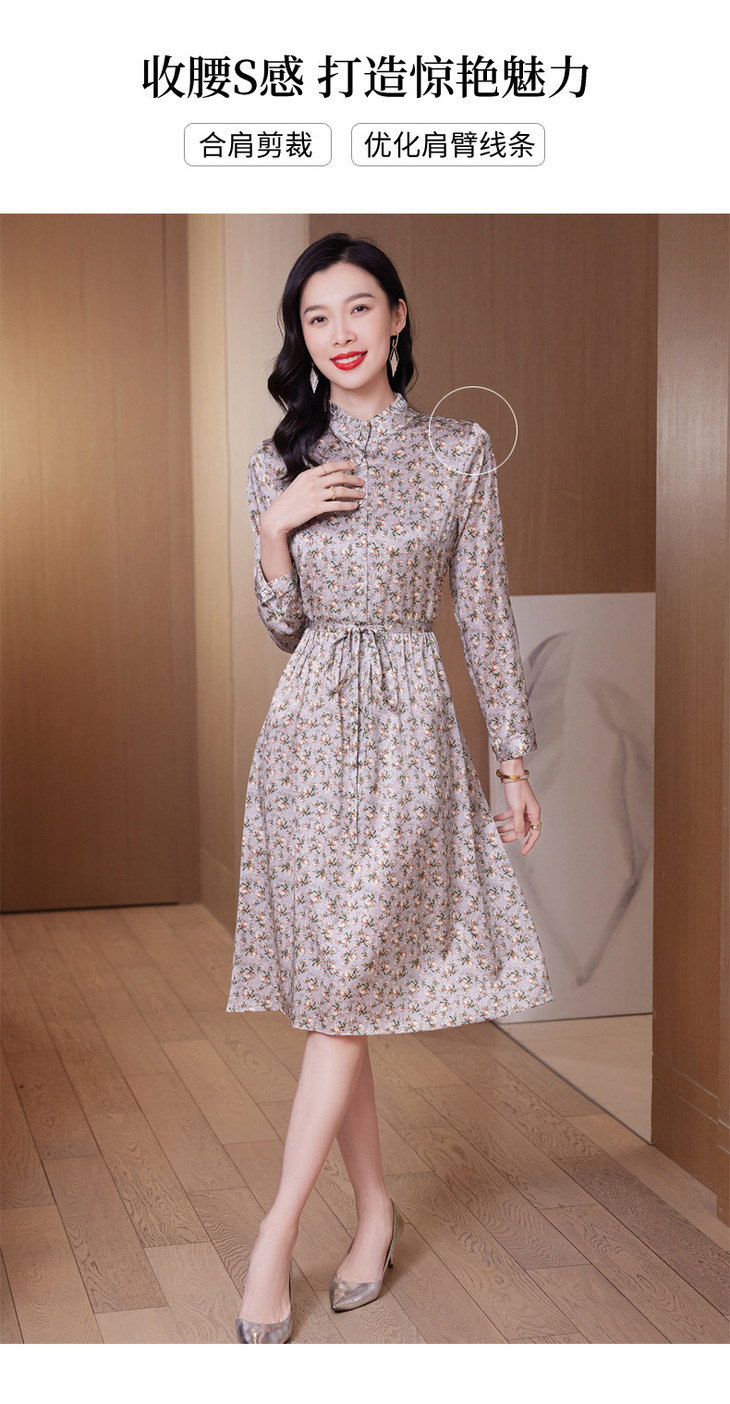 春装新款名媛淑气质小碎花桑蚕丝真丝连衣裙KQN-97508