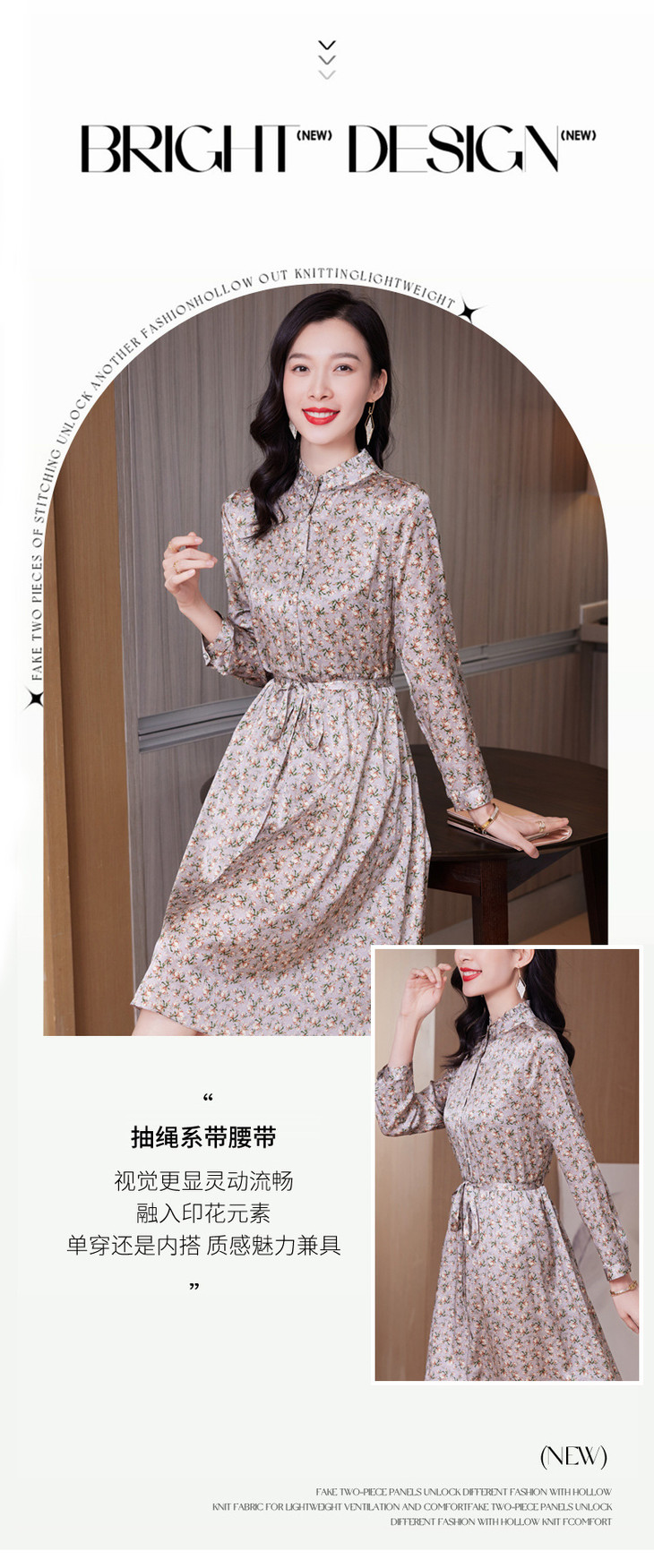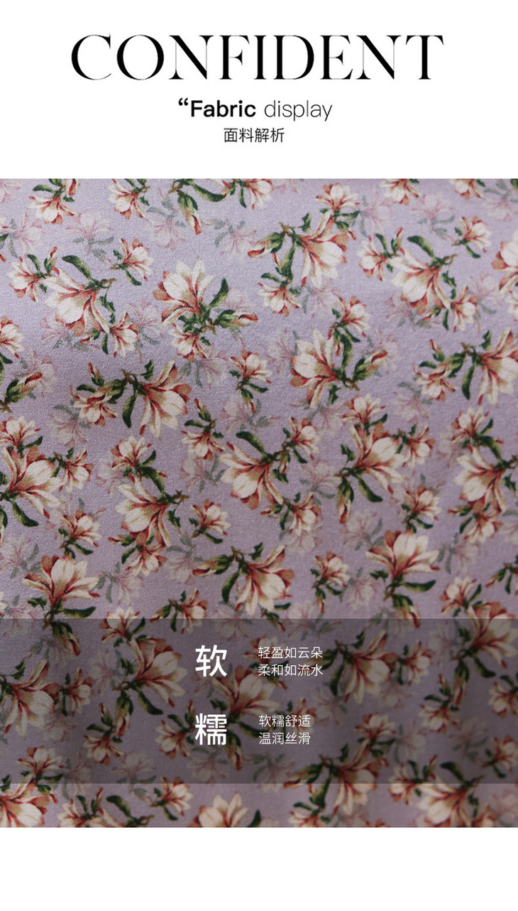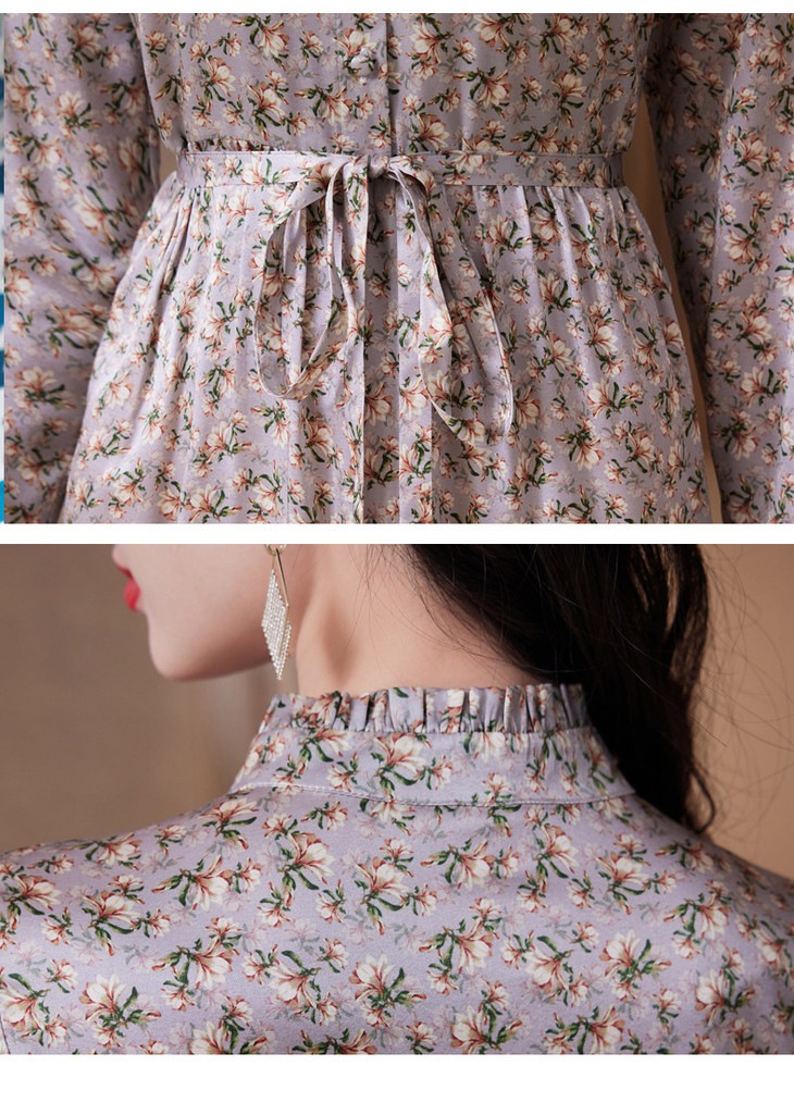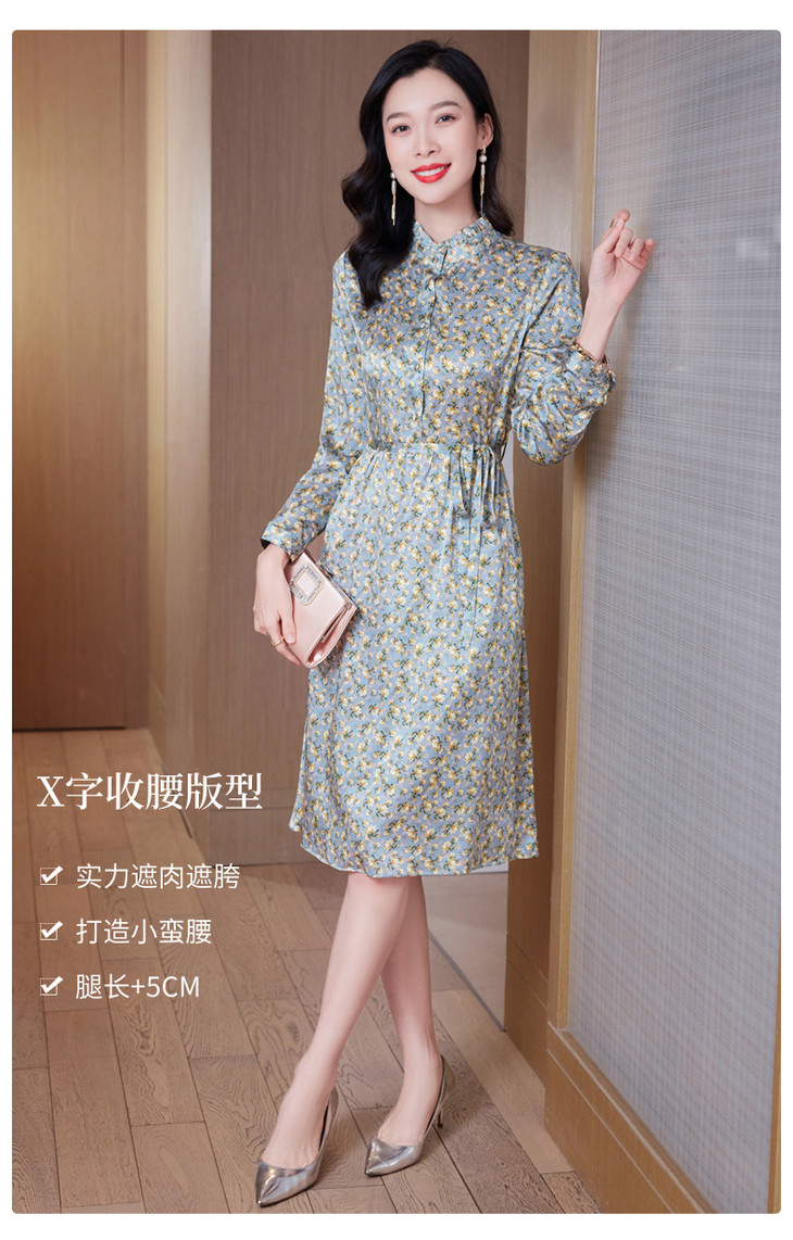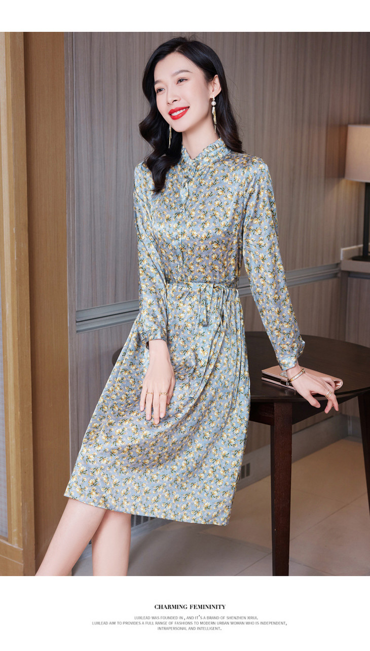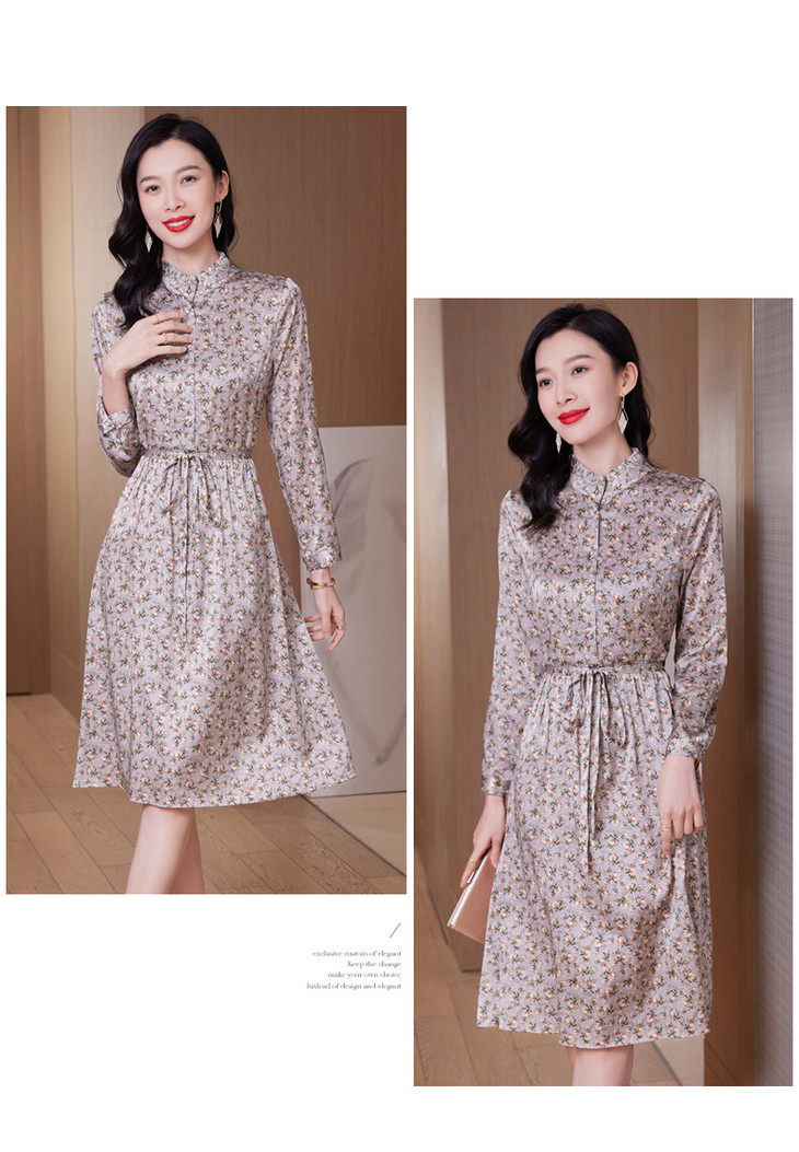 春装新款名媛淑气质小碎花桑蚕丝真丝连衣裙KQN-97508