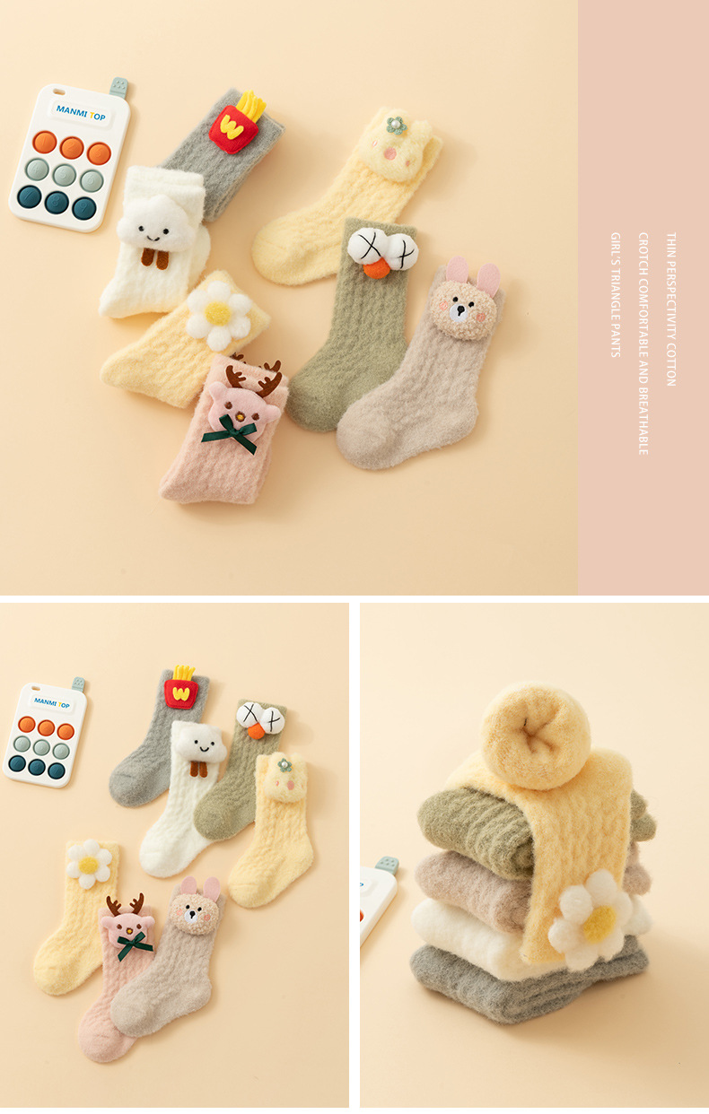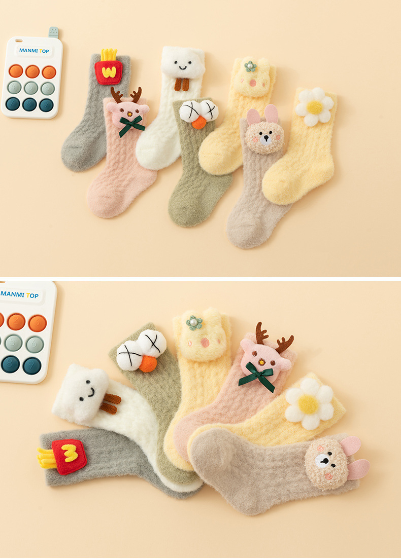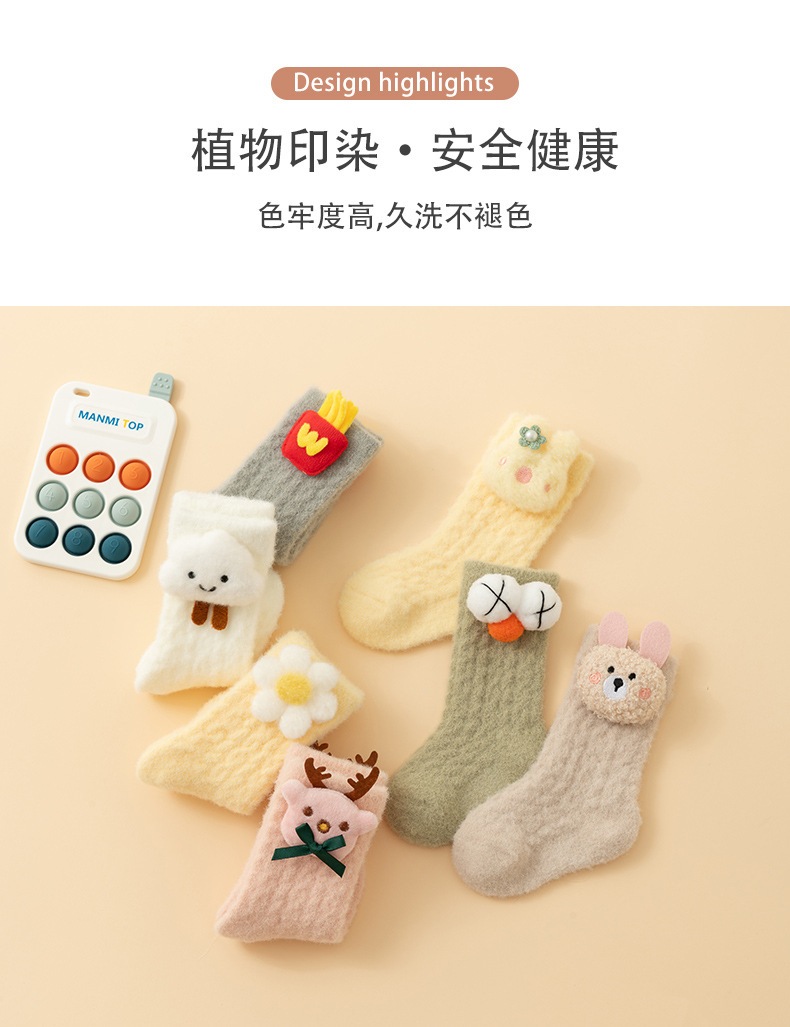 【甄选优质珊瑚绒❗️柔软亲肤微弹舒适】初新生婴儿秋冬加绒加厚男女宝宝中筒珊瑚绒保暖学步地板袜子。jb