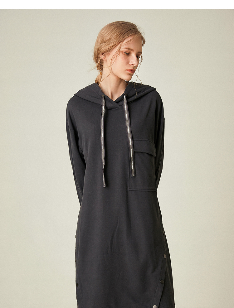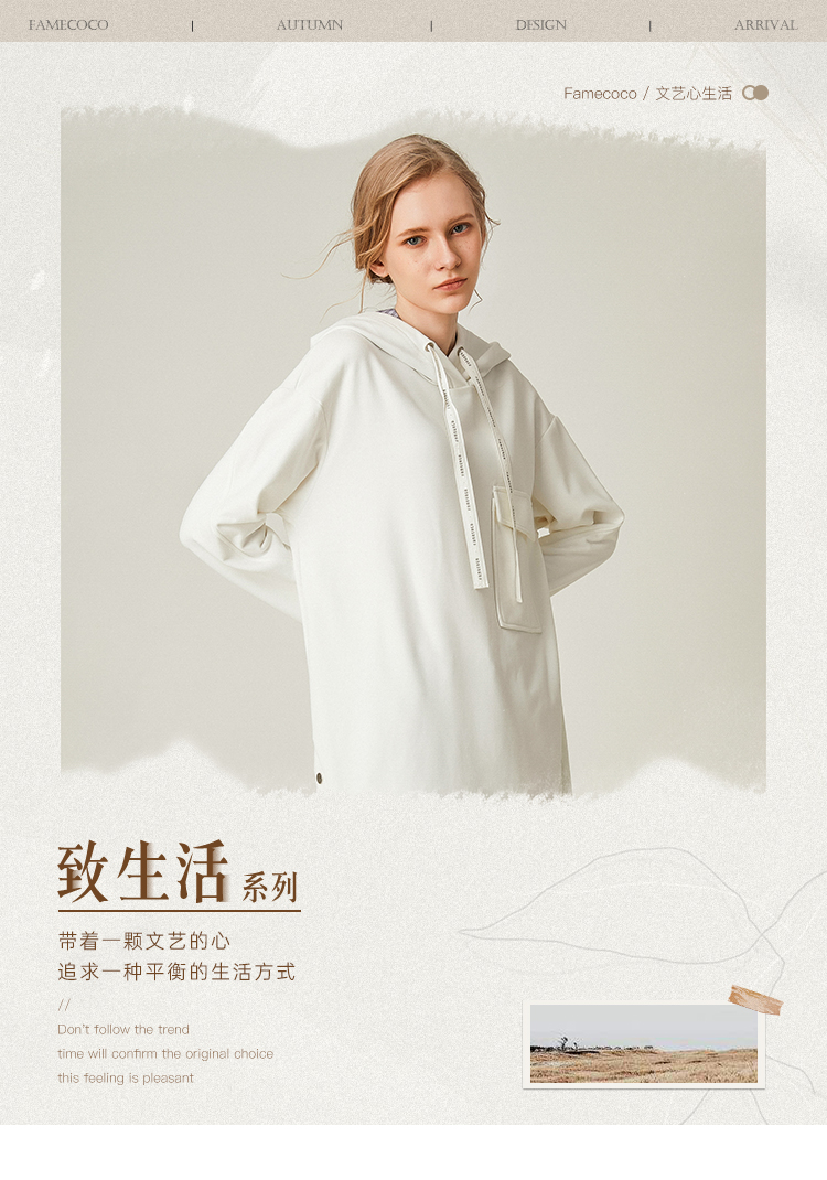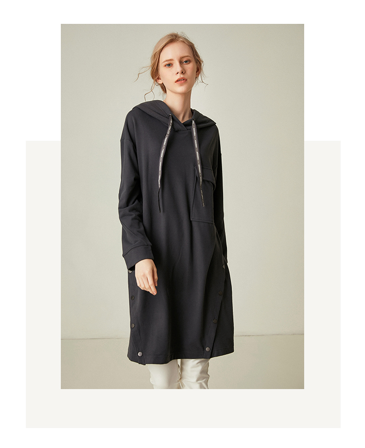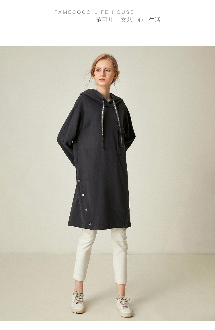 famecoco范可儿中长款休闲连帽卫衣裙F185FA015