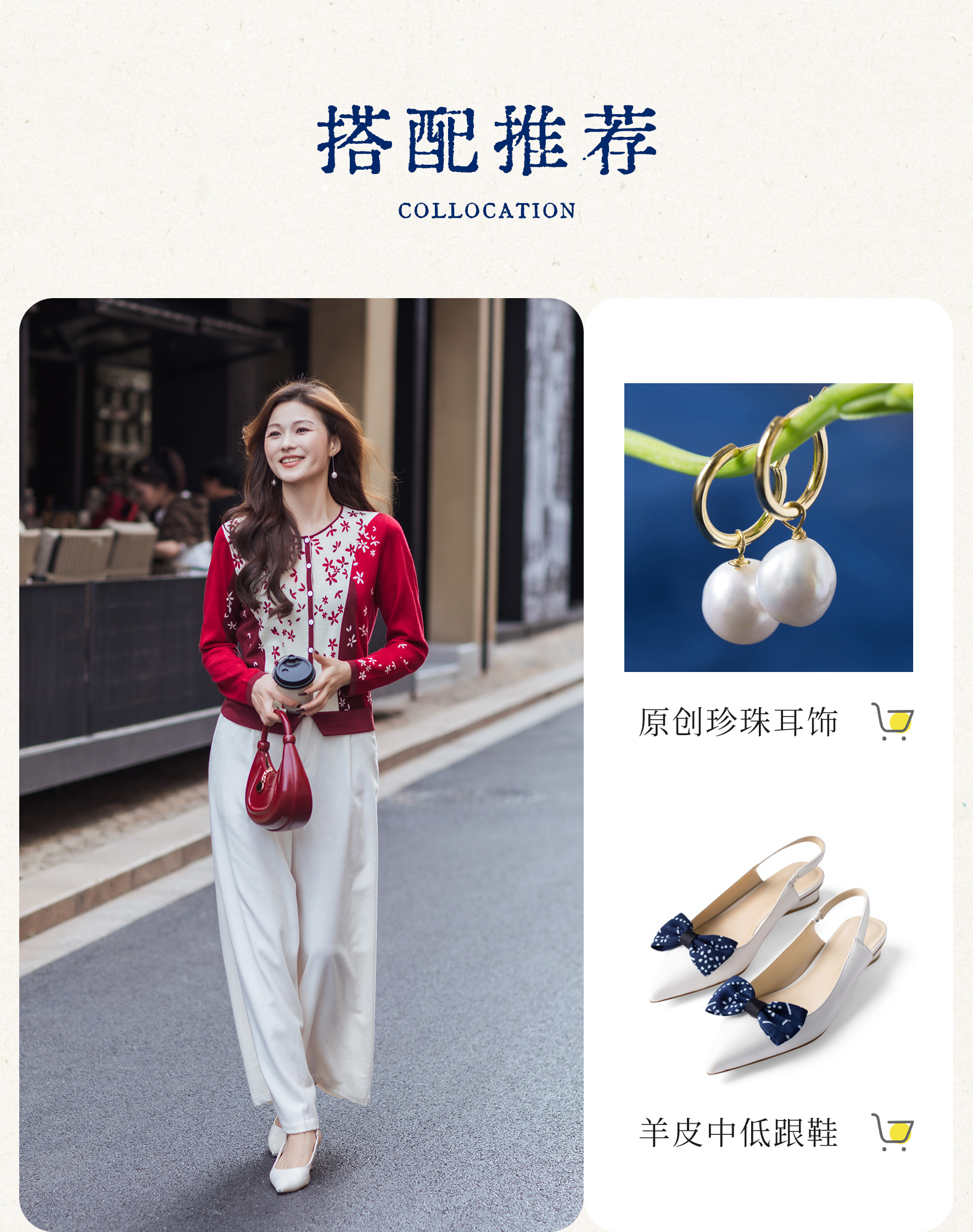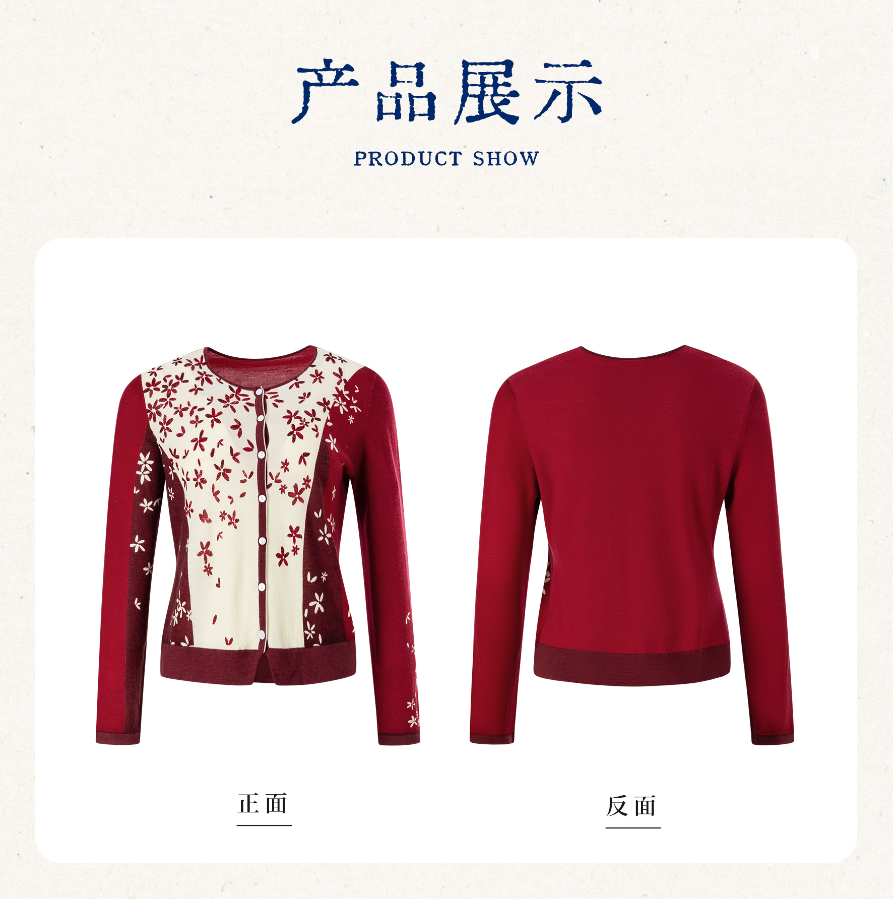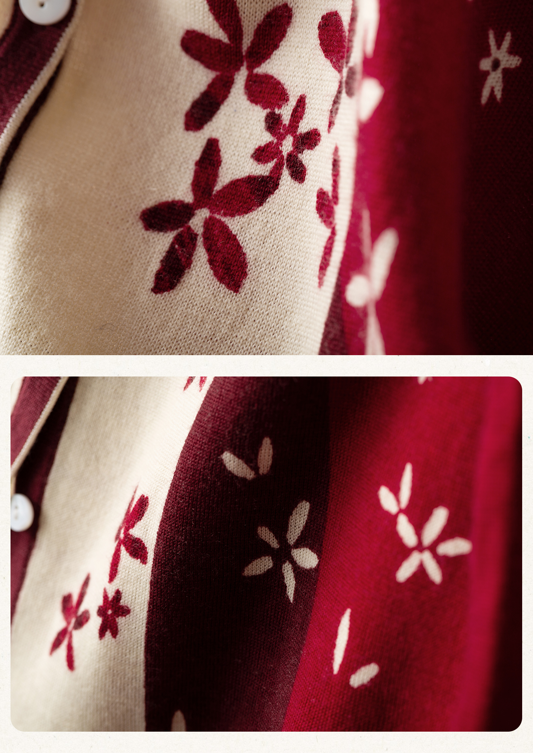 【林栖设计小店】【林栖推荐】(预售)2026早春新款红色与白色撞色羊毛印花针织开衫N1961279