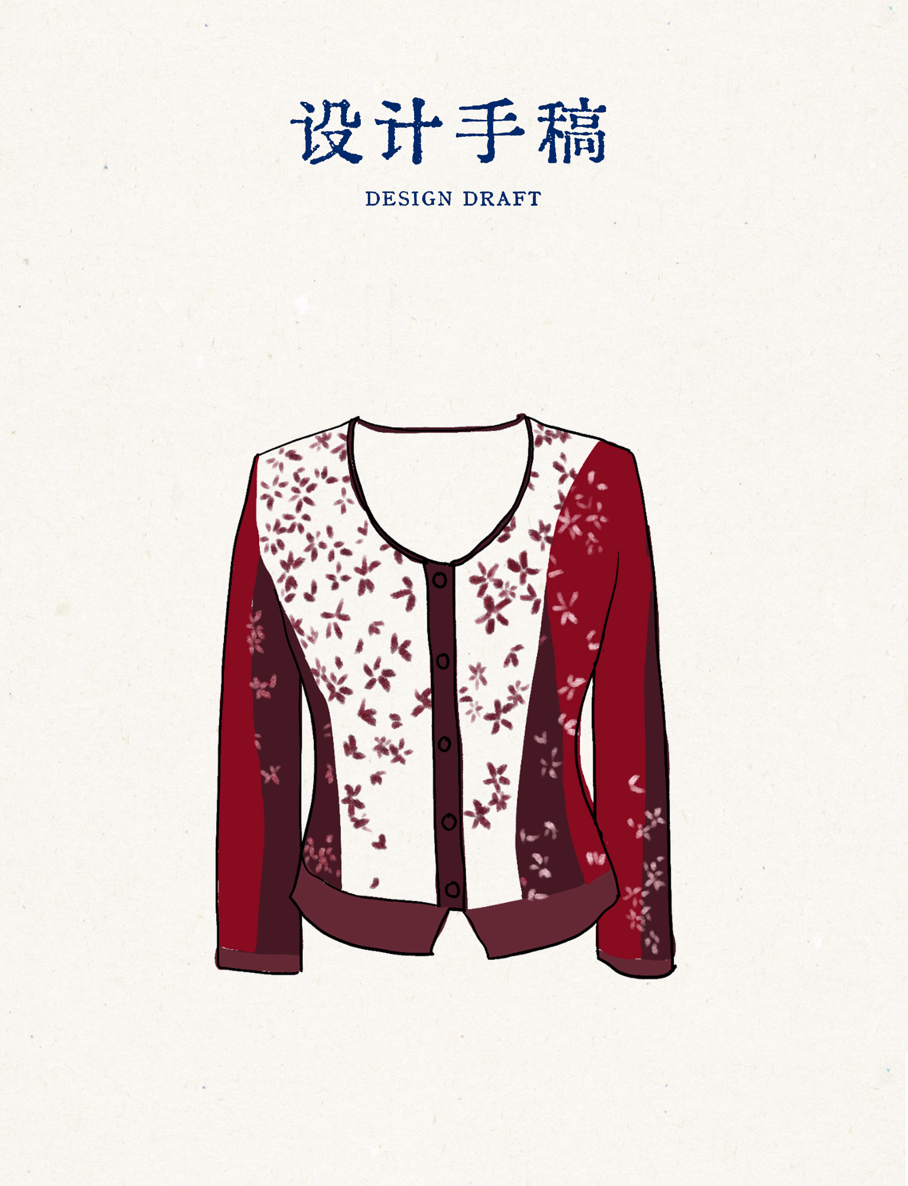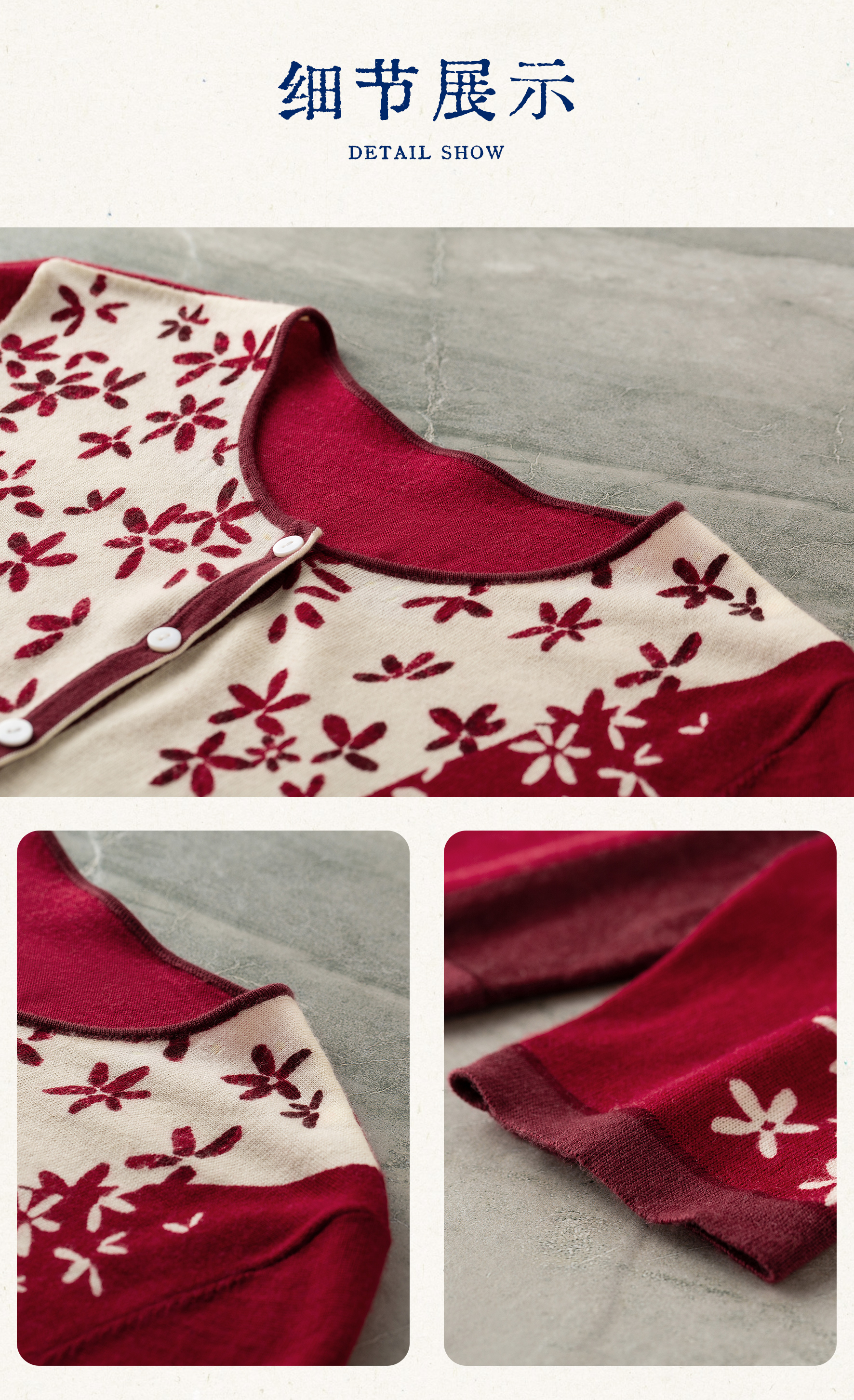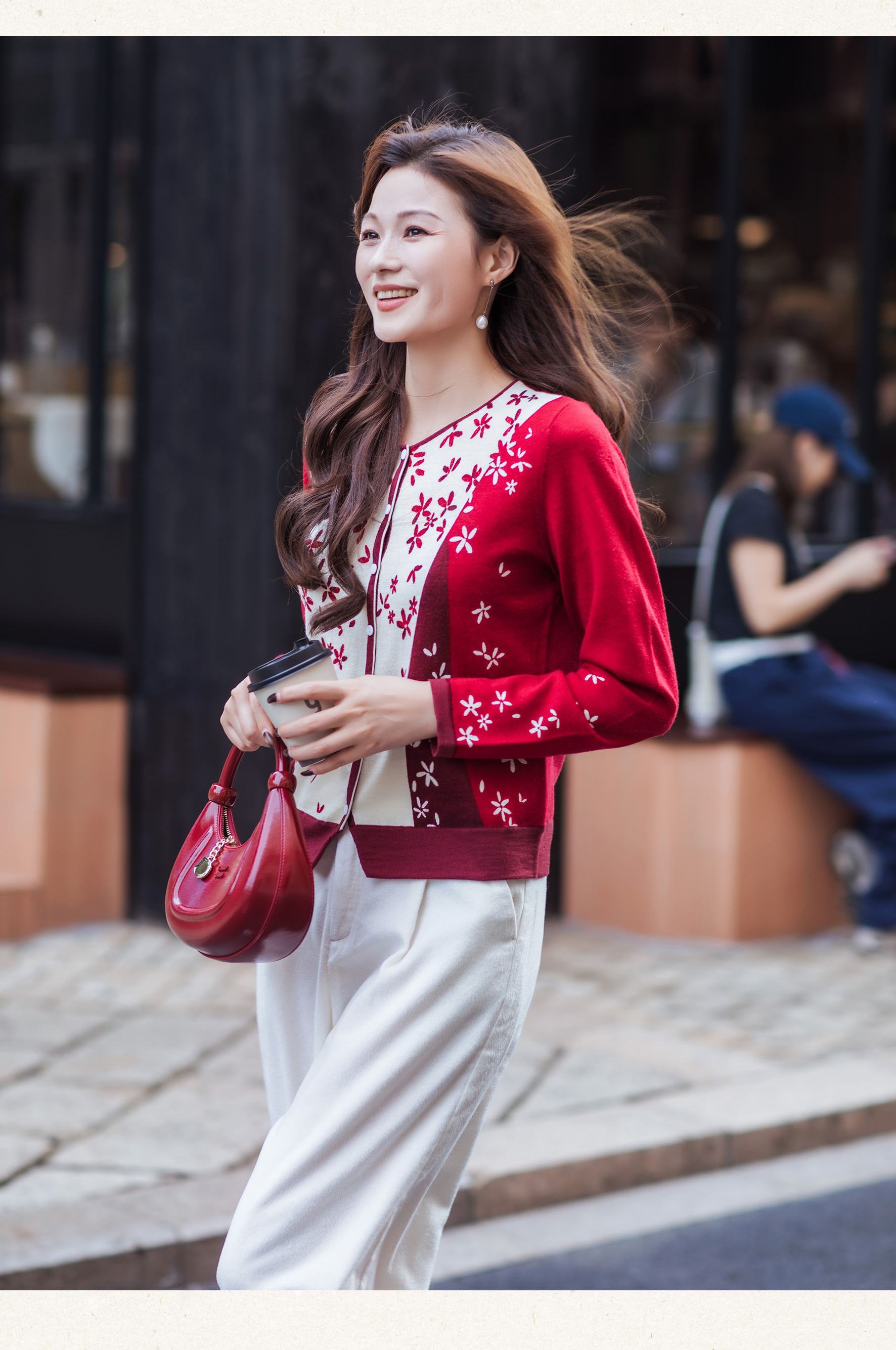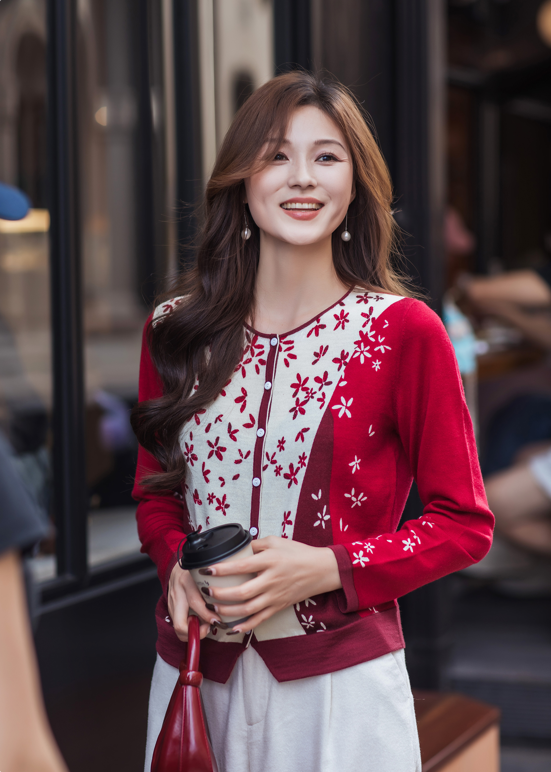 【林栖设计小店】【林栖推荐】(预售)2026早春新款红色与白色撞色羊毛印花针织开衫N1961279