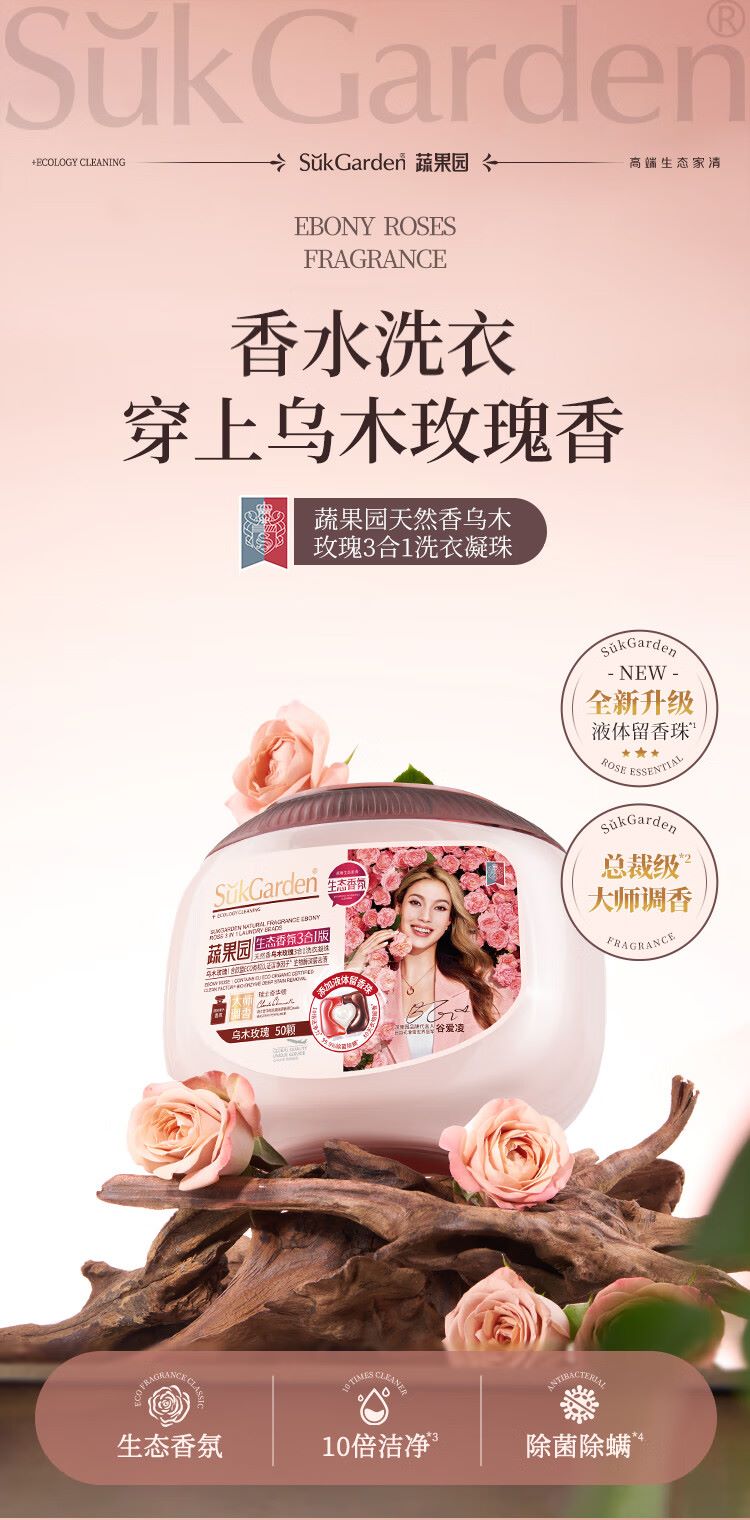 SukGarden蔬果园天然香乌木玫瑰3合1洗衣凝珠