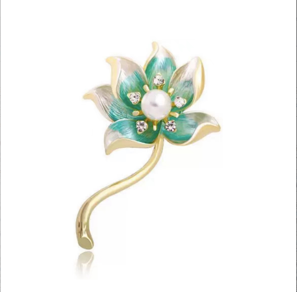 彩荷胸针---荷花寓意着纯洁天真的善良性格,它洁白无瑕的花瓣给人一种端庄高雅的感觉。荷花还寓意着知恩图报的美好品德。荷花开花以后花姿优雅美丽花香迷人芬芳,仿佛在用自己的方式回报人们对它的养护之恩。