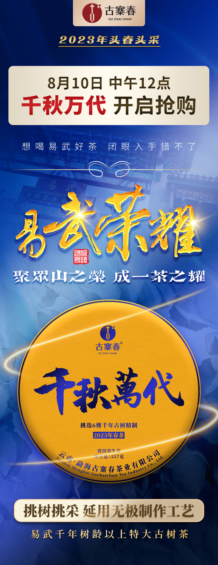 【最后1饼,售罄再无】【超值拼团秒杀】高货好茶【千秋万代】【无铜盒包装】2023年头春茶,易武六棵千年以上特大树拼配而制聚众山之荣成一茶之耀全网独一家错过再无