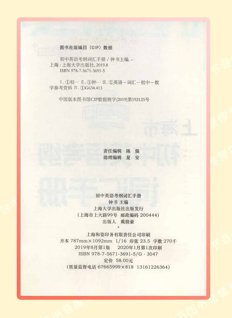 钟书金牌上海市初中英语考纲词汇手册活力英语含答案上海中考英语词汇学习初中初一初二初三中考大纲上海中考英语词汇辅导用法手册