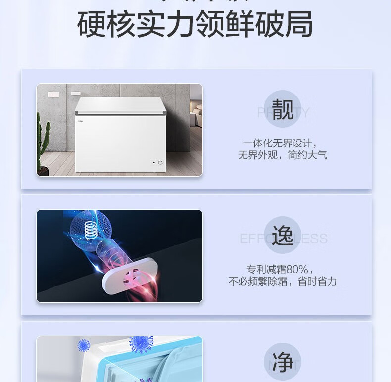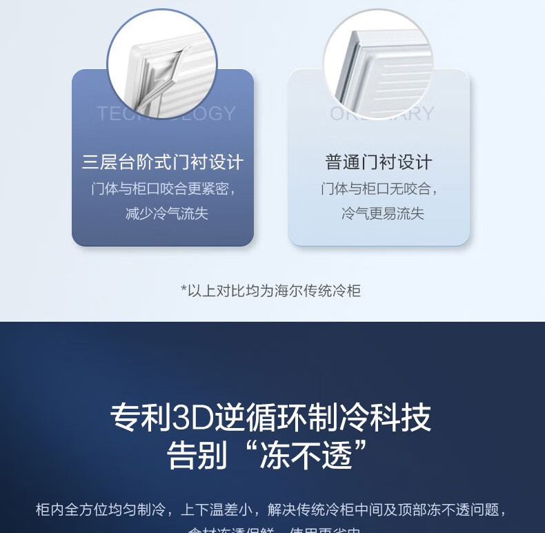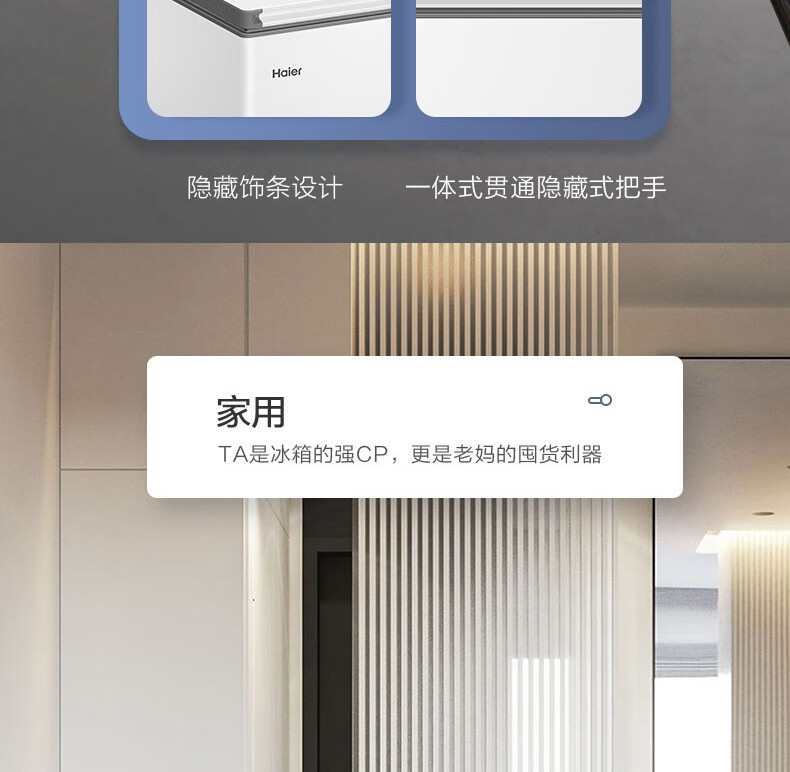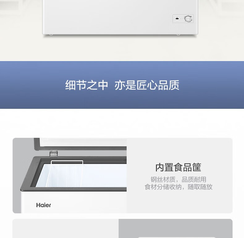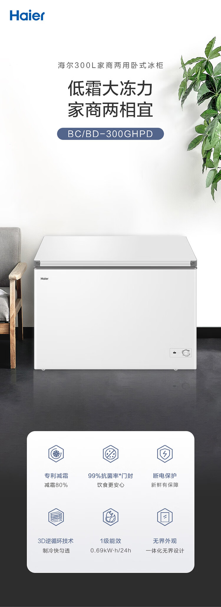海尔(Haier)300升卧式低霜商用家用冰柜 大容量冷藏柜冷冻柜小冰柜家用母乳小型冰箱冷柜BC/BD-300GHPDZ