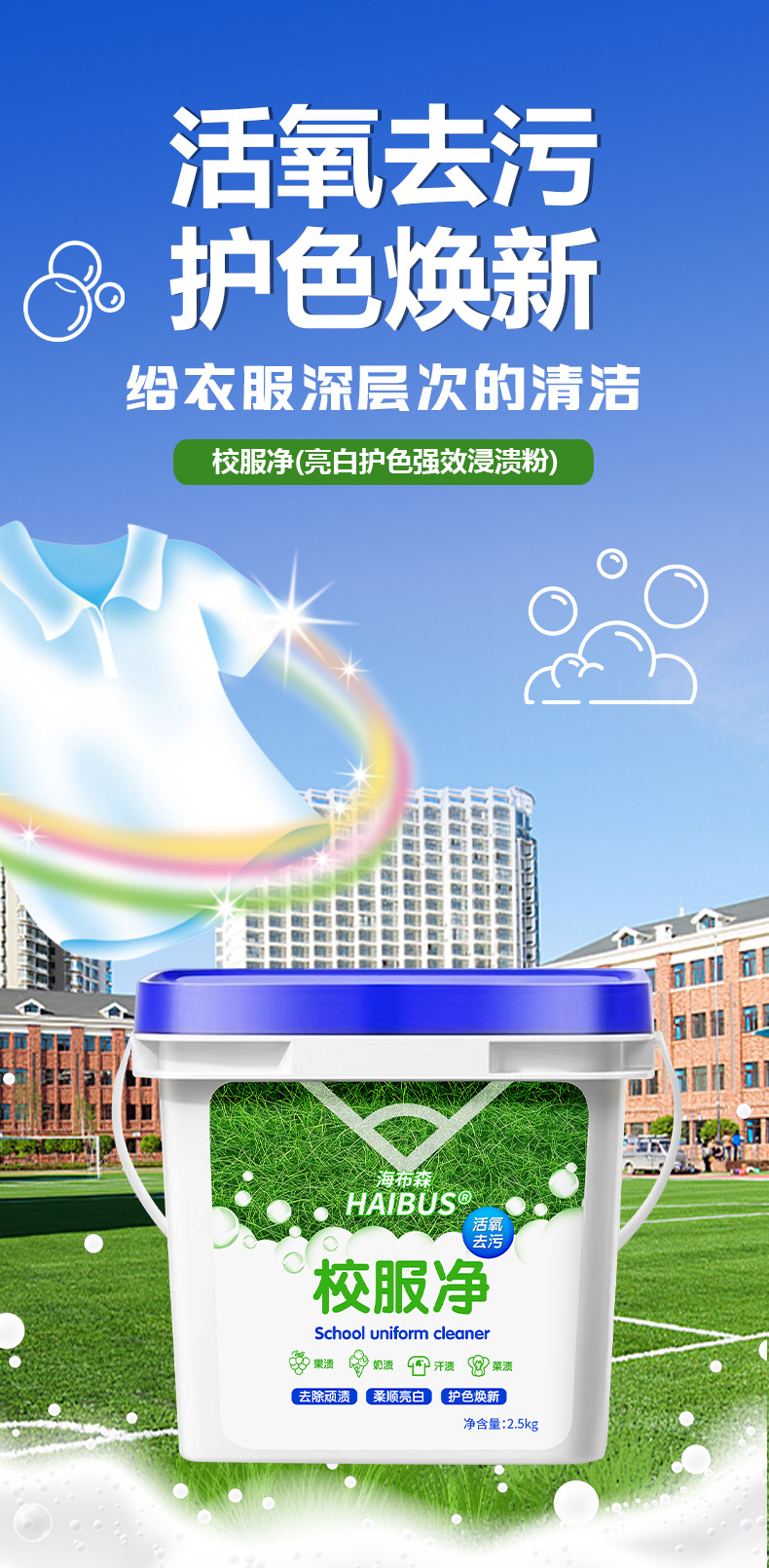 校服净桶装学生衣物去污渍清洗洗衣粉去黄去污衣领洗白彩色通用