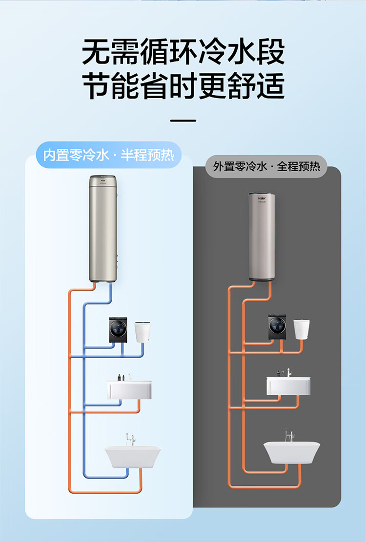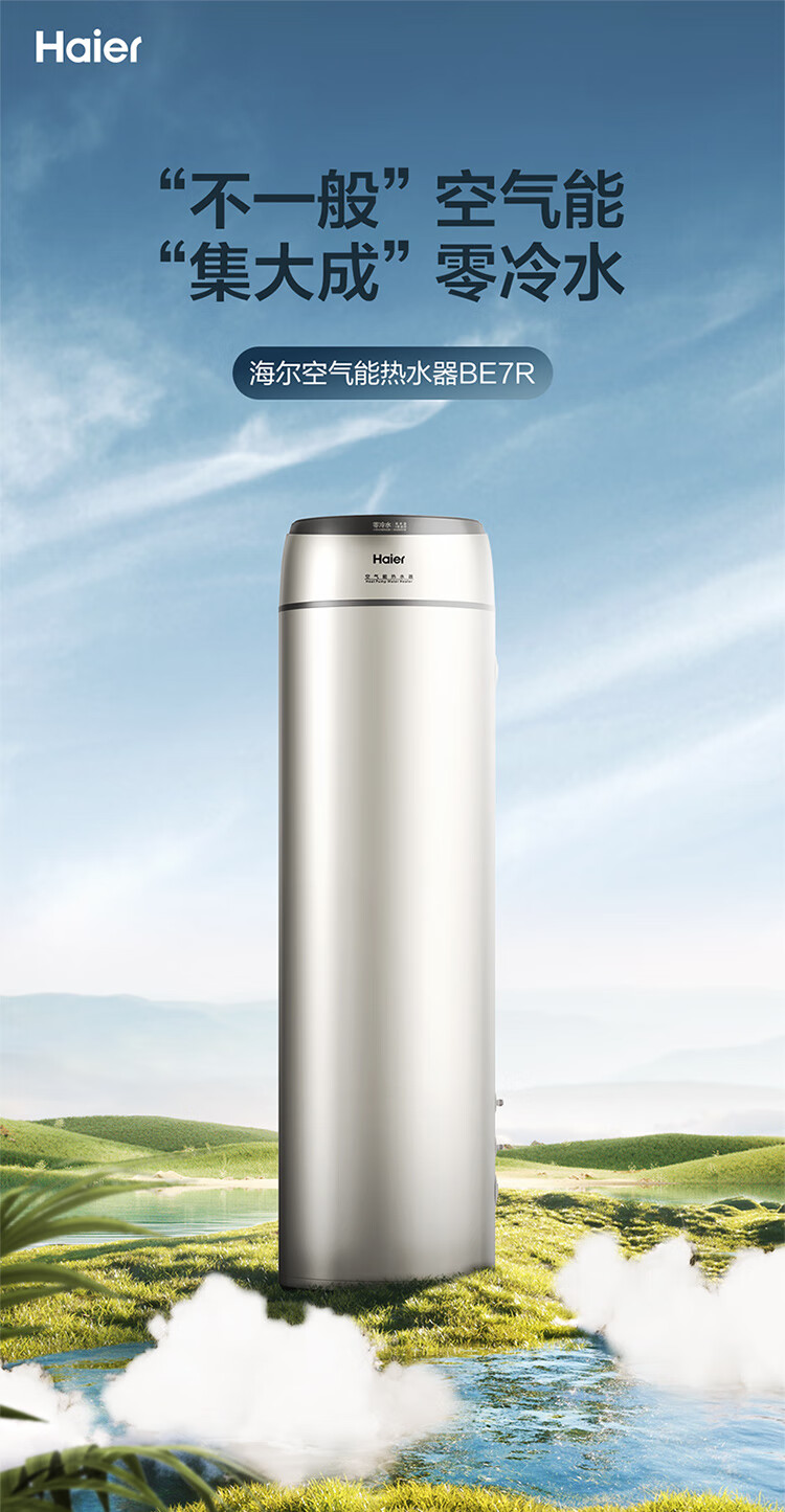 海尔(Haier)零冷水空气能热水器200升包安装 一级能效杀菌阻垢健康洗升级R32冷媒电辅热80℃ BE7RU1(4-6人)