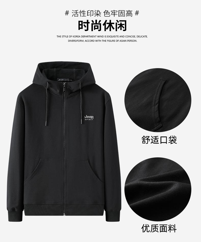JEEP SPIRIT卫衣运动开衫连帽外套薄款宽松休闲男HL2027(主推)