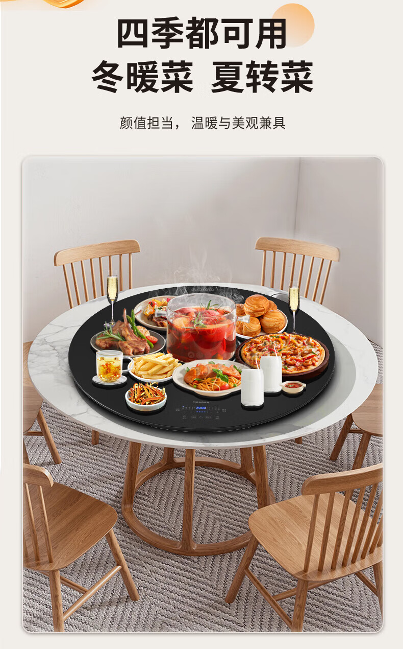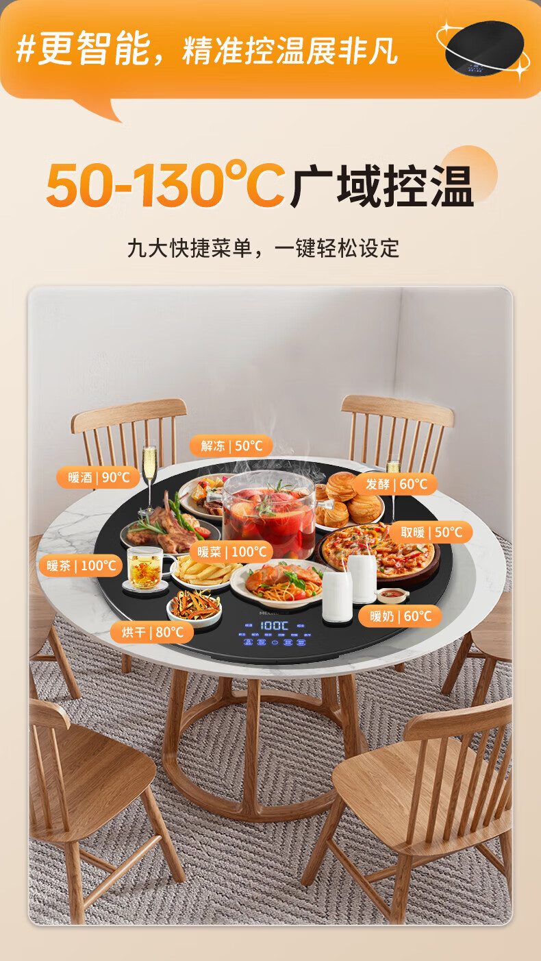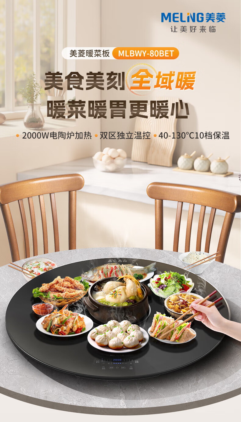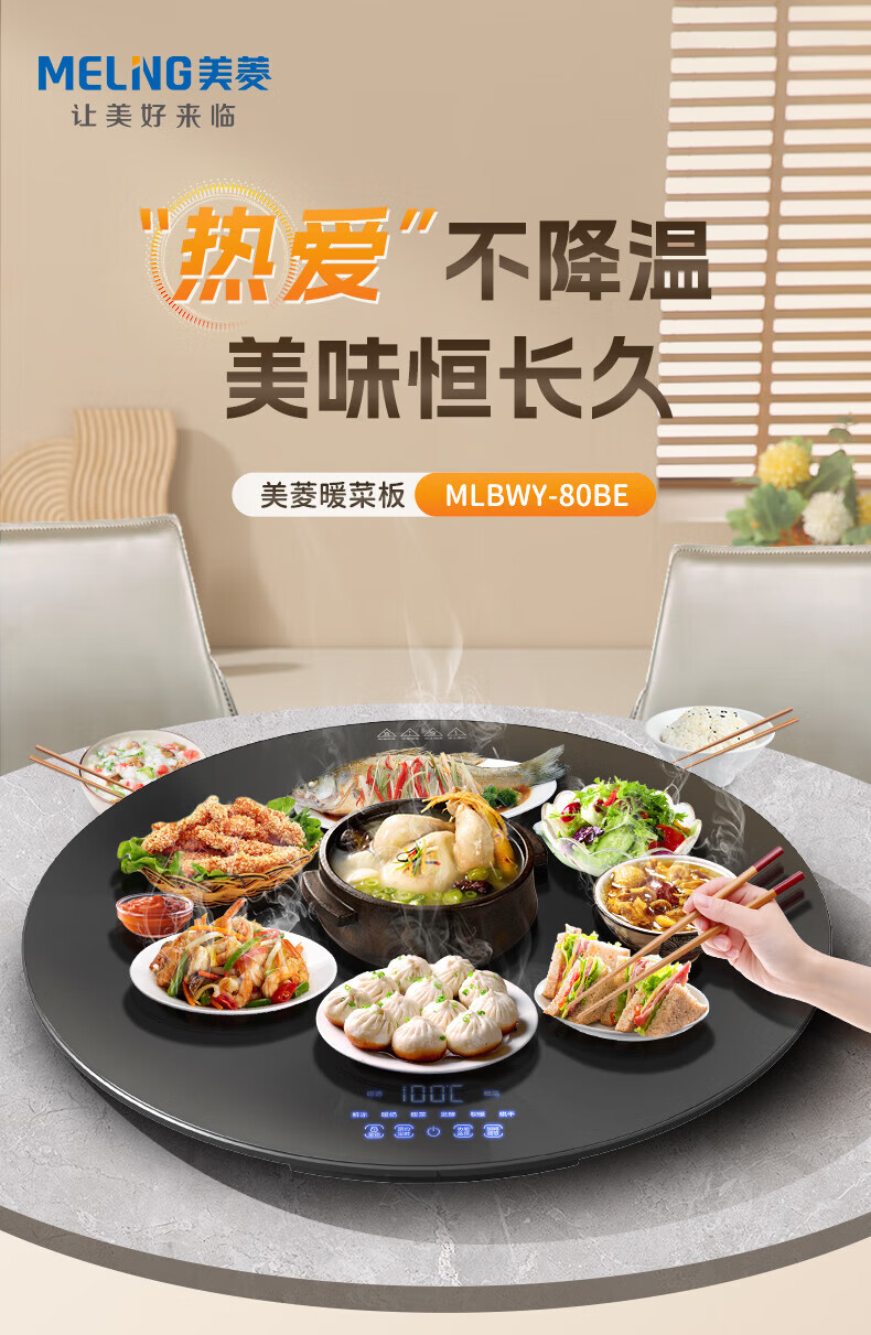 美菱(MeiLing)暖菜板家用热菜板饭菜保温板多功能智能预约定时恒温饭菜加热器保温桌垫可旋转 80cm