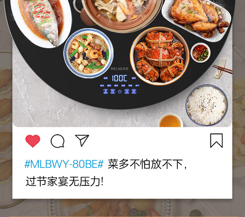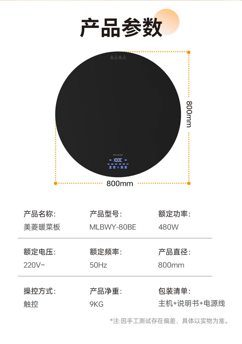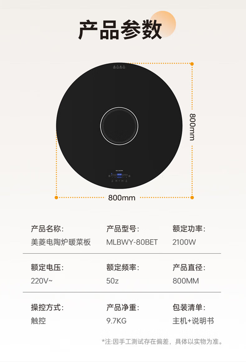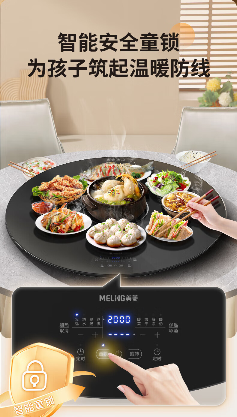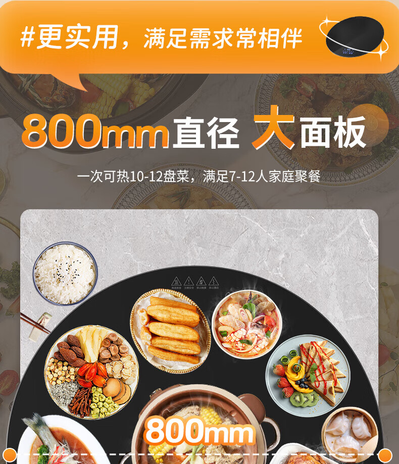 美菱(MeiLing)暖菜板家用热菜板饭菜保温板多功能智能预约定时恒温饭菜加热器保温桌垫可旋转 80cm