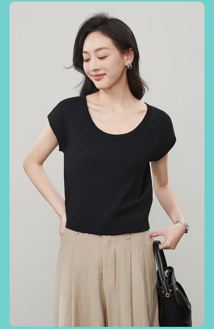 【夏薄U领针织衫】逸阳夏新款小飞袖宽松简约短上衣5176
