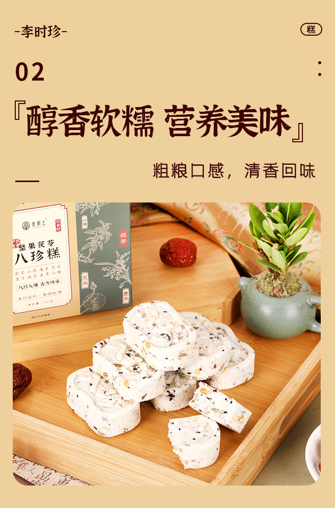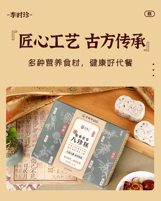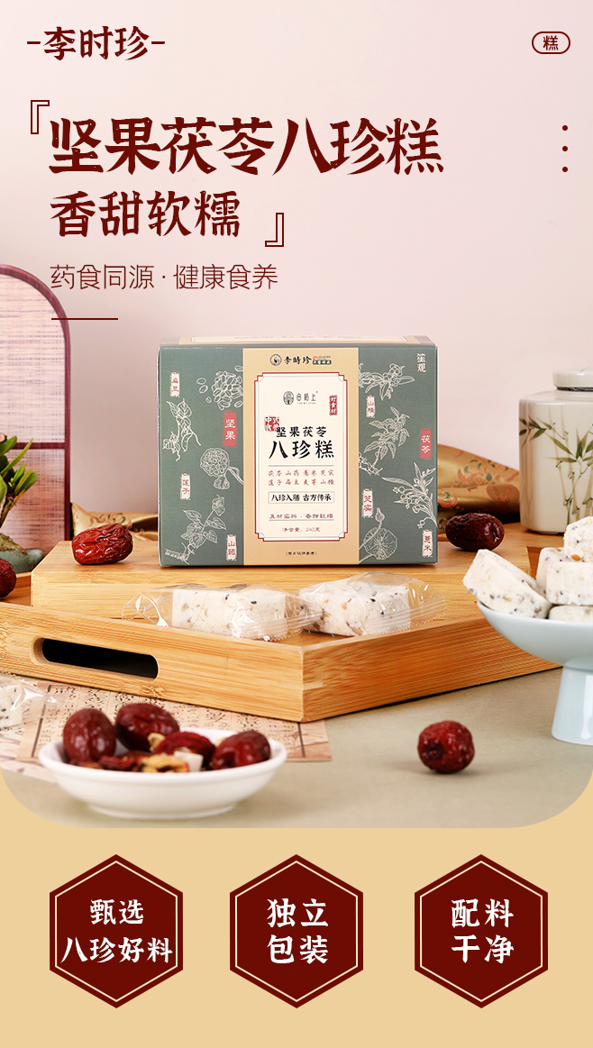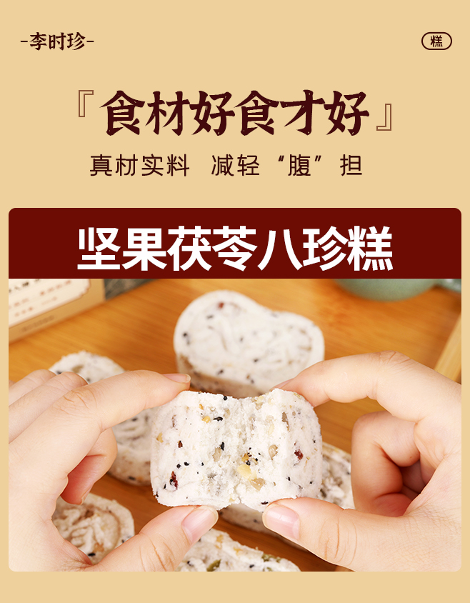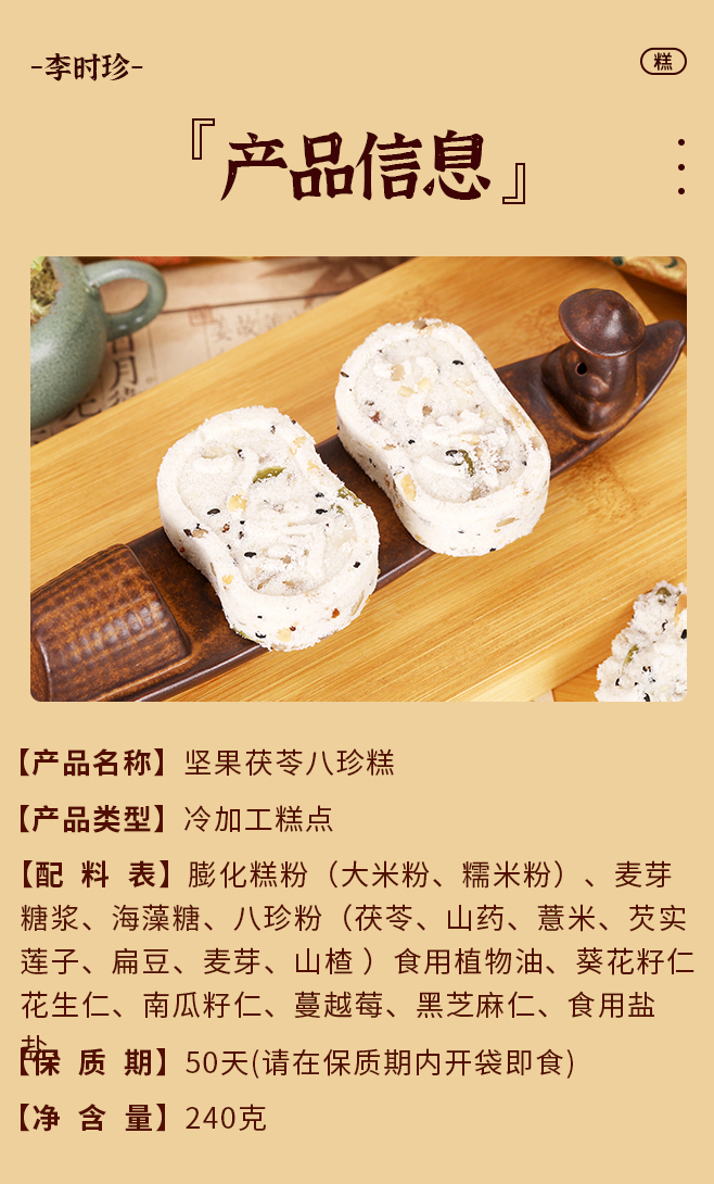 【买2送1 买3送2 加赠三伏茶(限量100份)】李时珍出品坚果茯苓八珍糕 甄选食材 配料干净 老少皆宜