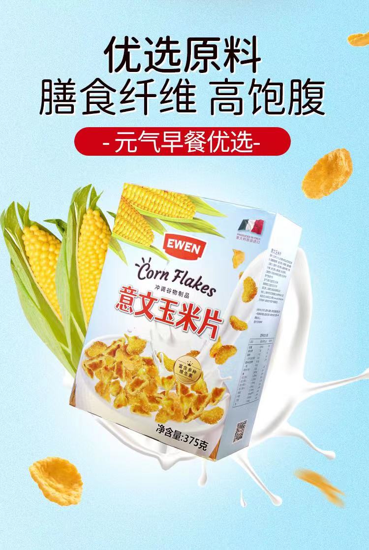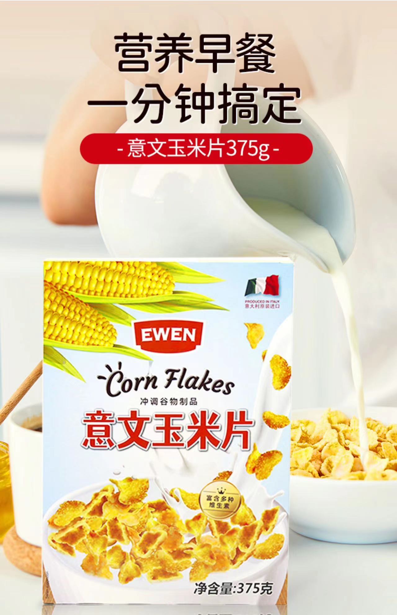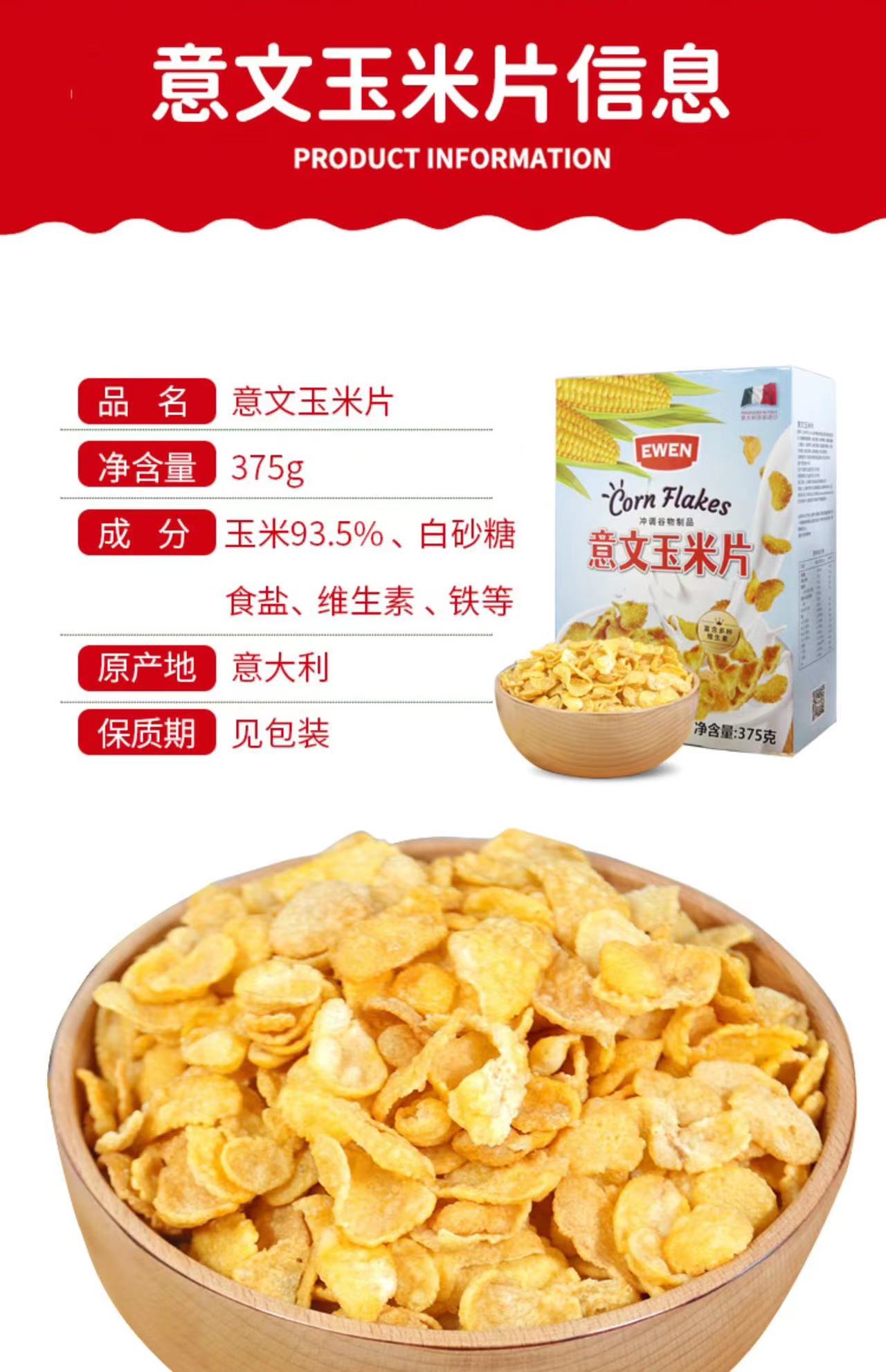 【中欧班列精选】意大利意文捷森玉米片 原装进口酥脆免煮即食早餐非油炸营养冲饮麦片 375g/袋