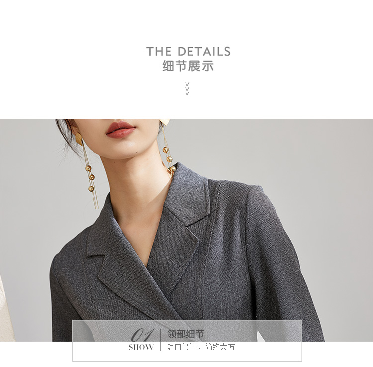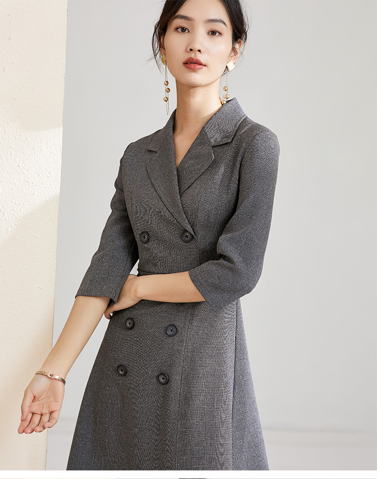 剩S 芳外秋季复古西装领连衣裙简约修身显瘦a字裙子连衣裙