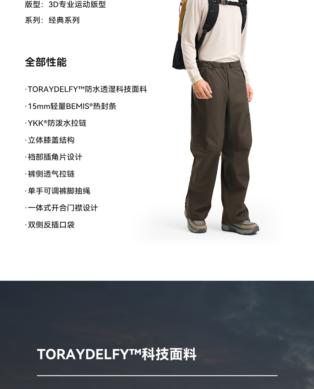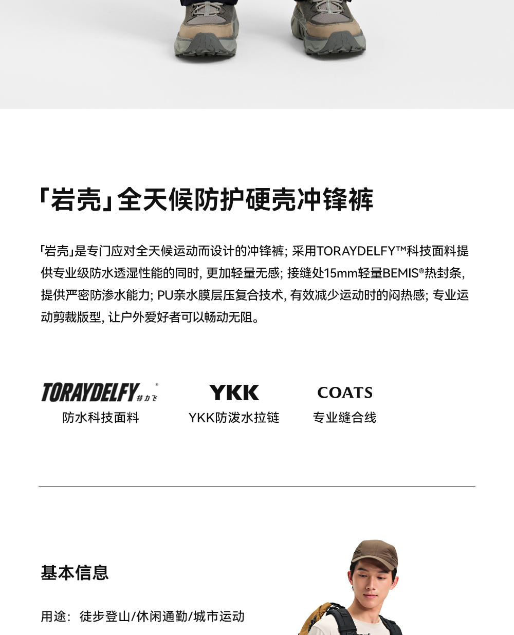 【岩壳】伯希和户外硬壳冲锋裤男2025新款3L全压胶徒步登山长裤女