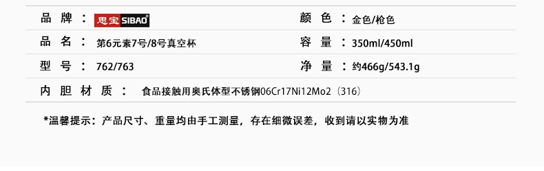 思宝旗舰店新品第6元素7/8号真空杯礼盒包装内置茶隔便携车载