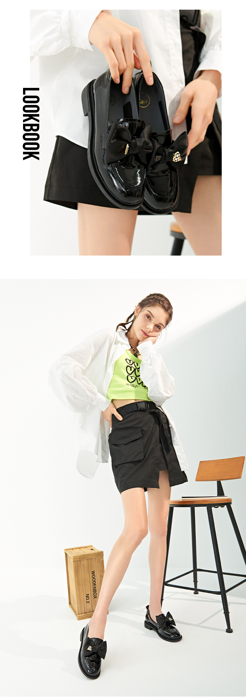 Safiya/索菲娅 浅口单鞋2022秋季新款潮趣简约爱心少女蝴蝶结乐福鞋女 SF23112022