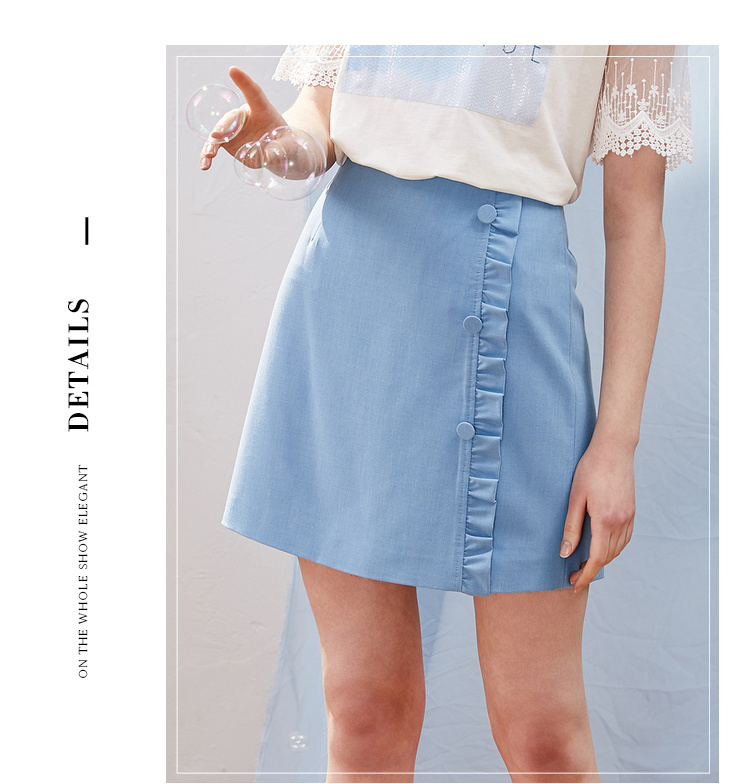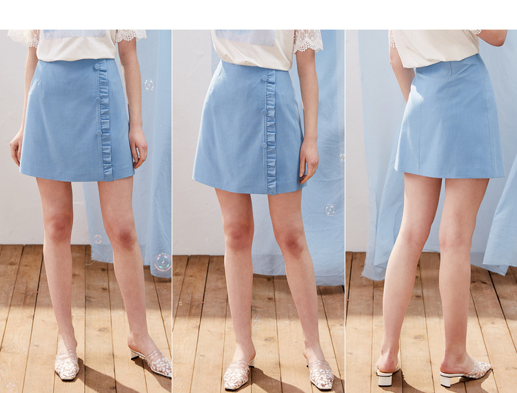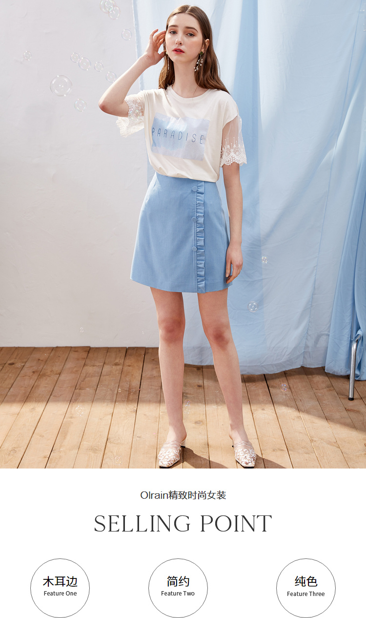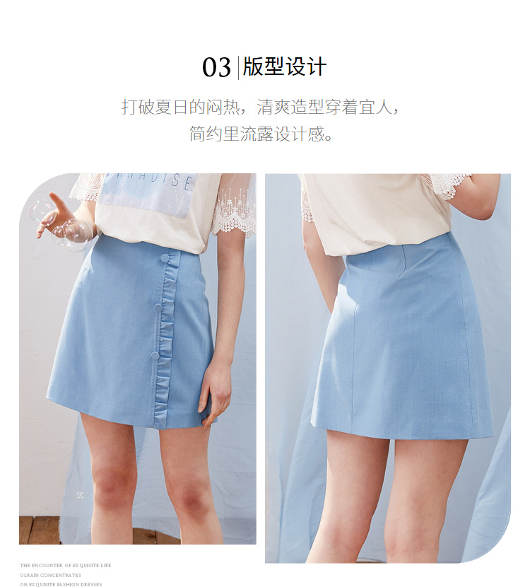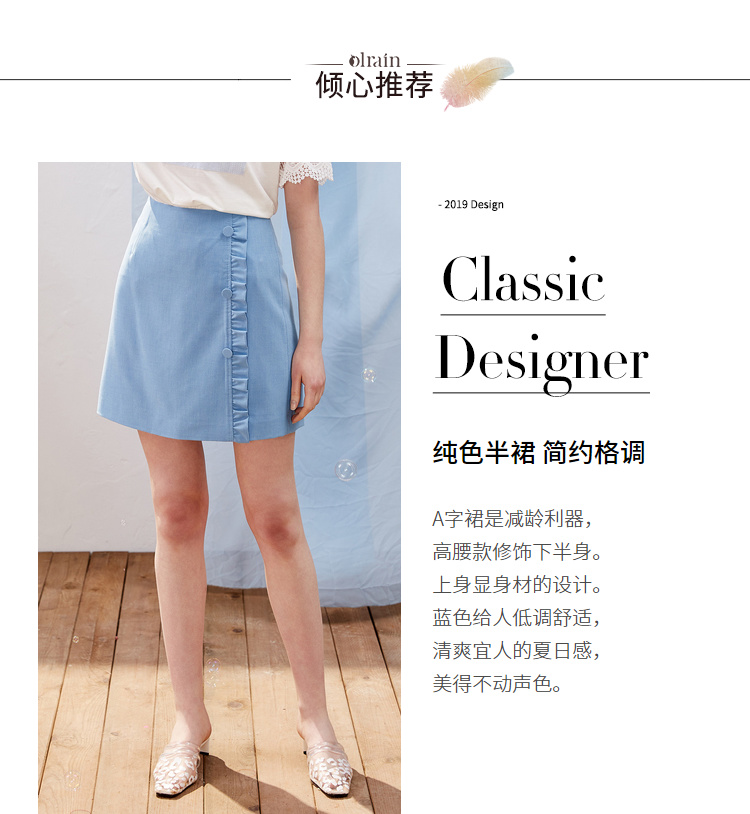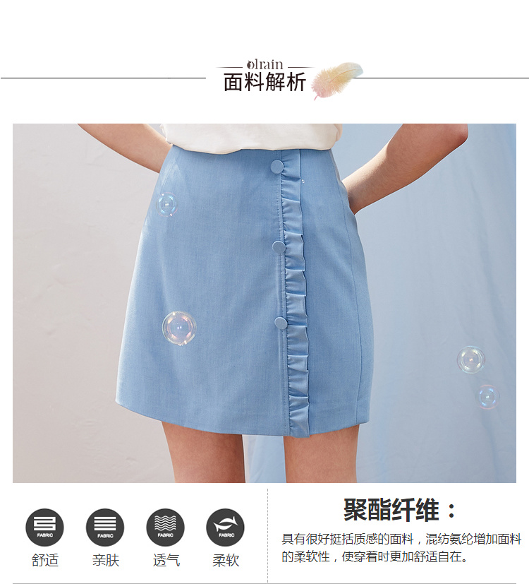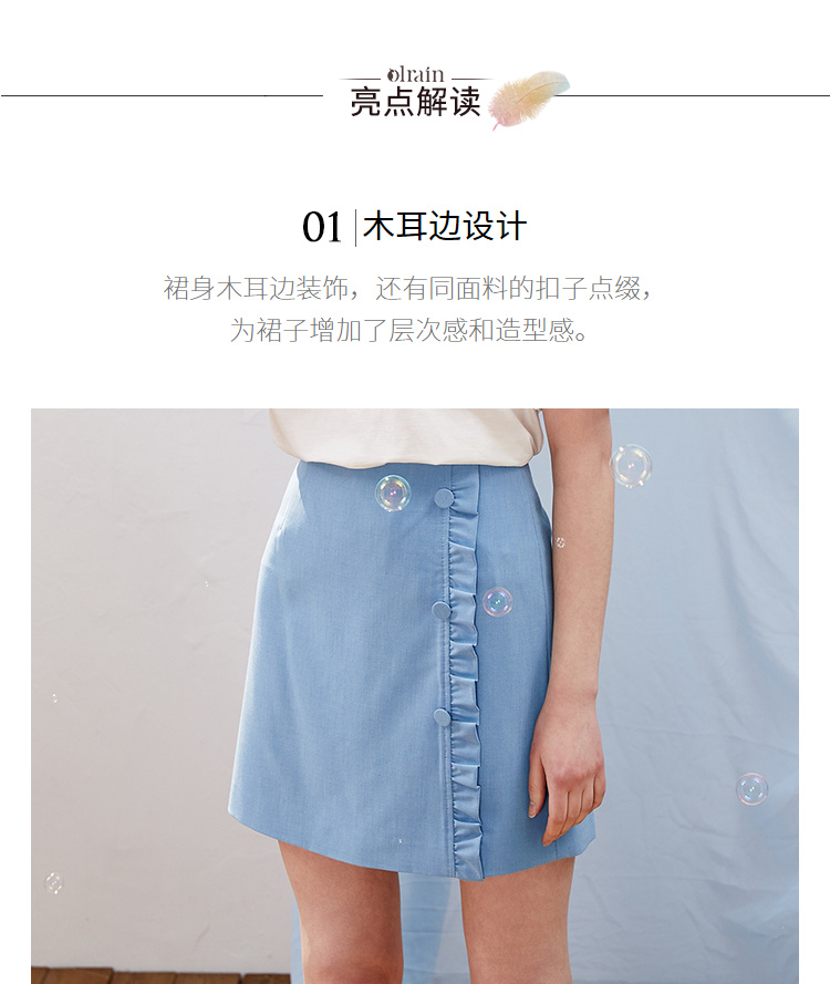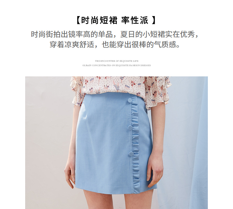 欧芮儿2021新款女装夏装木耳边包臀半身裙女短款高腰a字裙女裙