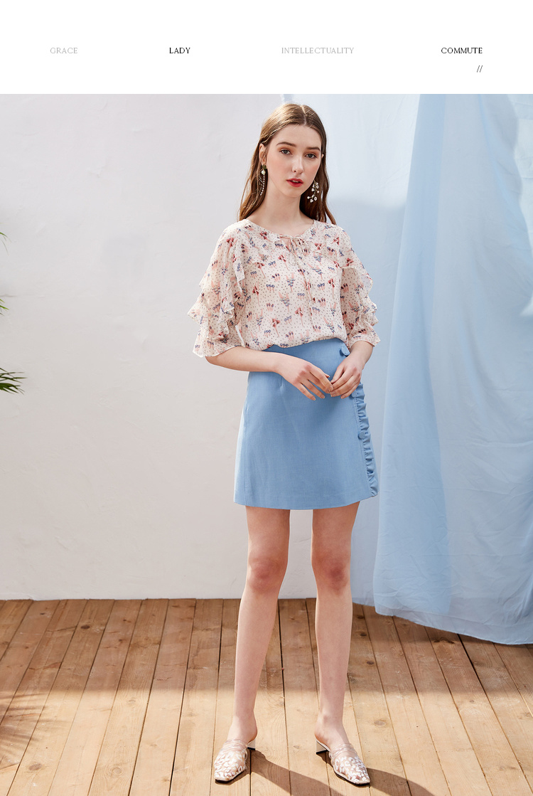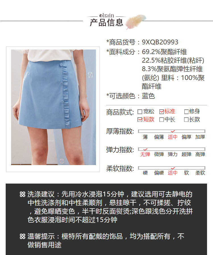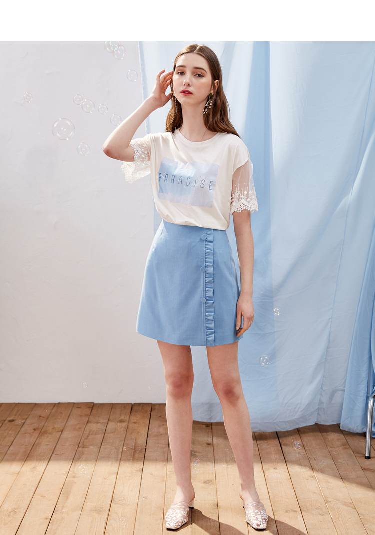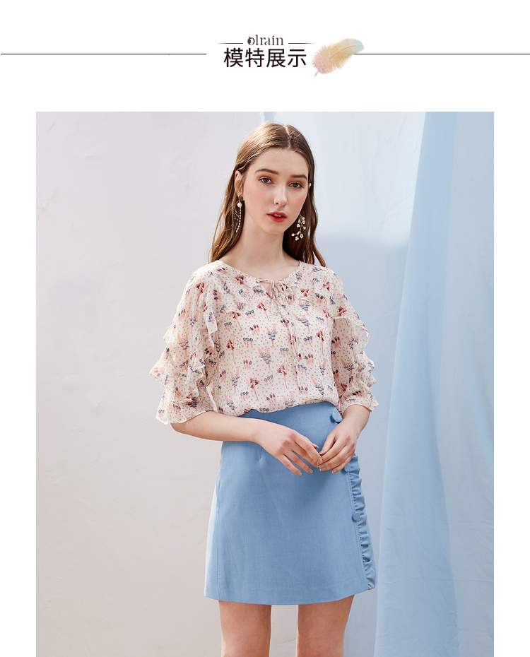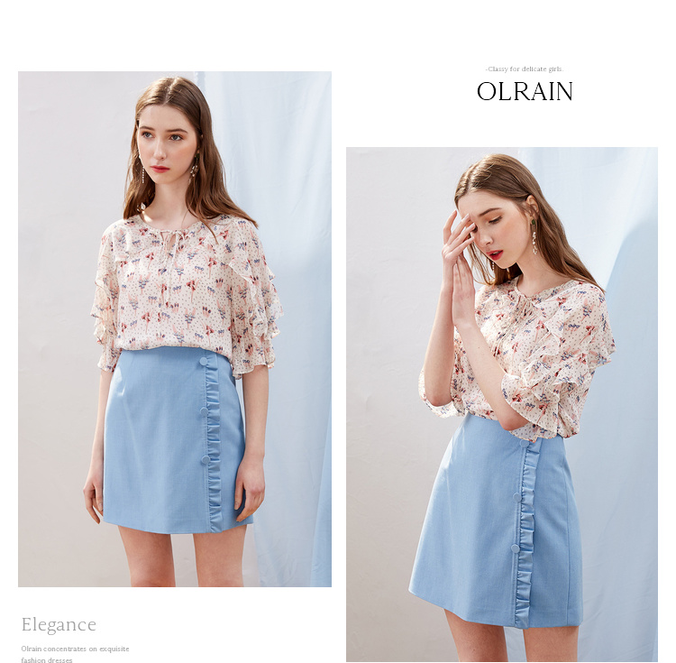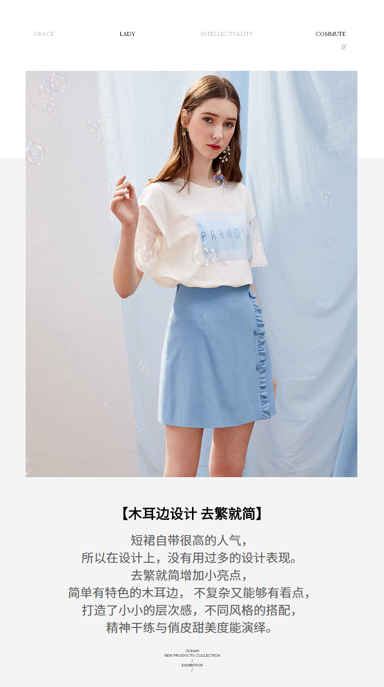 欧芮儿2021新款女装夏装木耳边包臀半身裙女短款高腰a字裙女裙