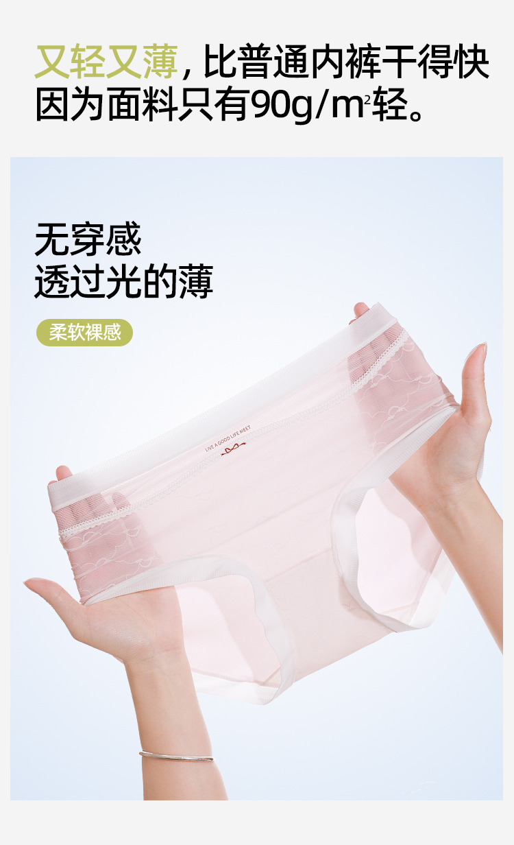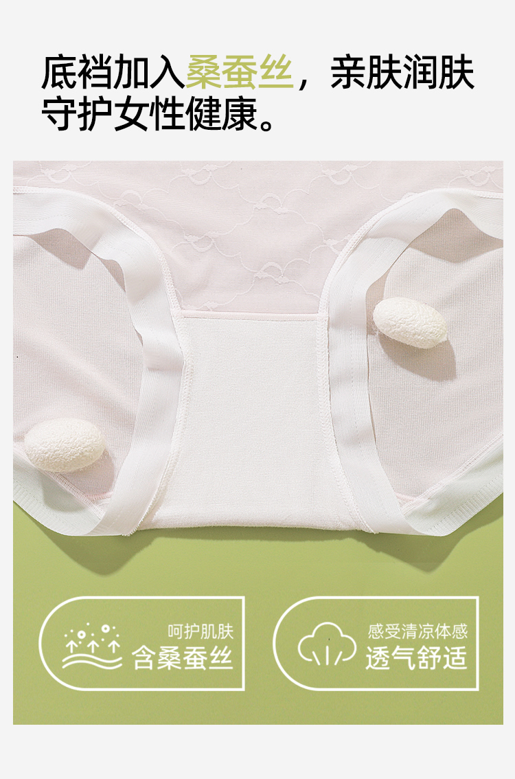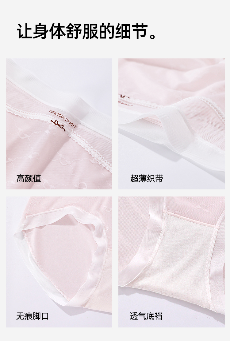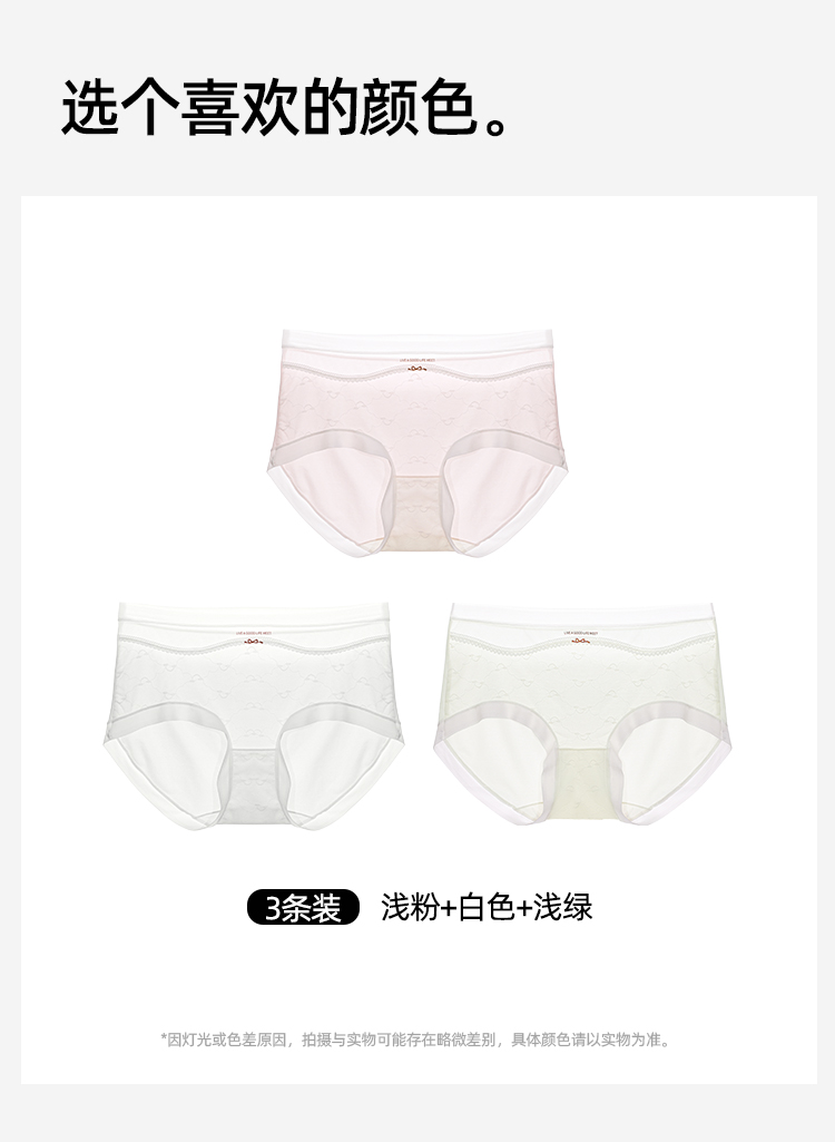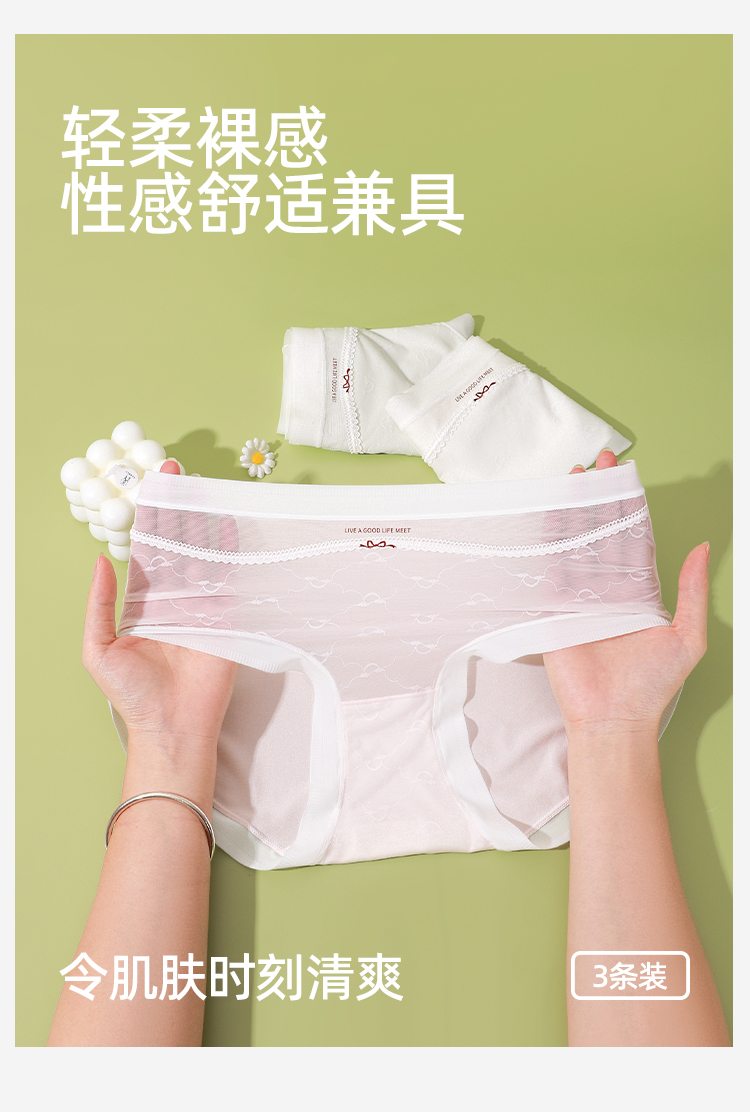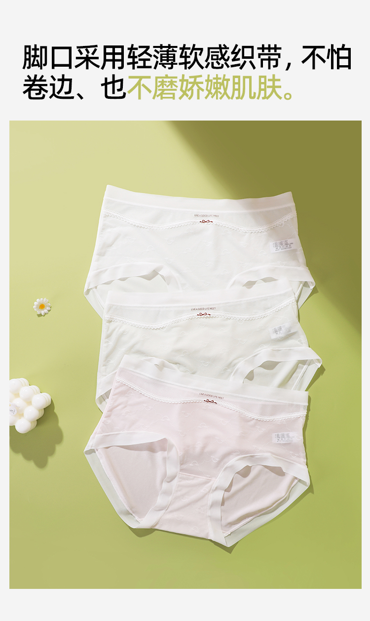 【3条装】熳洁儿 莫代尔女士内裤含桑蚕丝中低腰包臀蕾丝拼接性感25262120