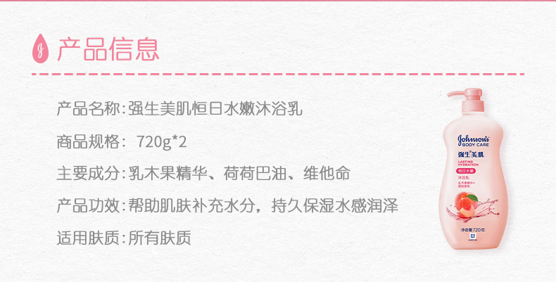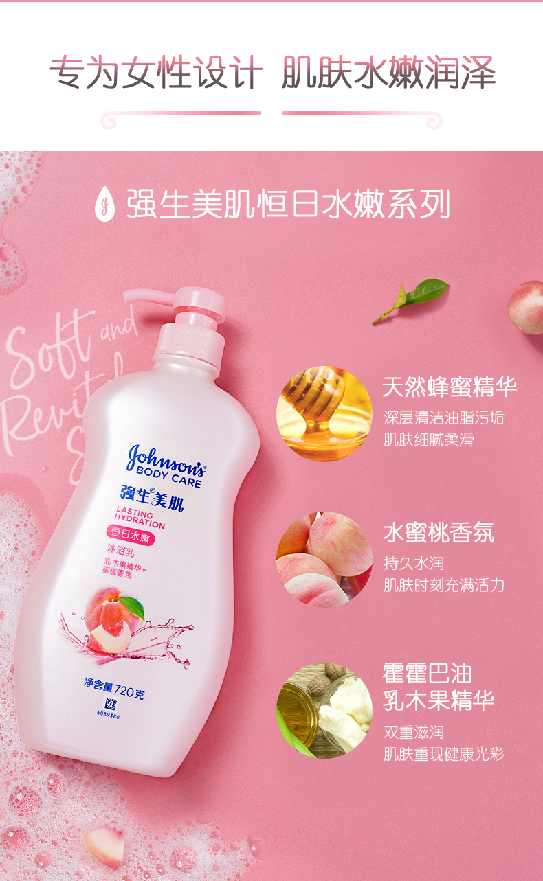 强生美肌 恒日水嫩沐浴乳720g双支装(720g*2 蜜桃香氛 沐浴露 沐浴液)
