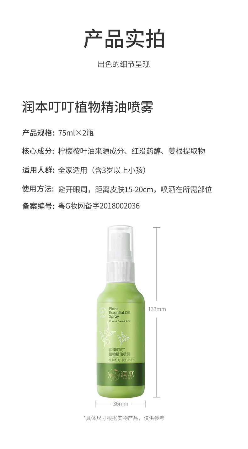 润本(RUNBEN)叮叮植物精油喷雾75ml×2支防护喷雾花露水婴幼儿宝宝户外 经典款