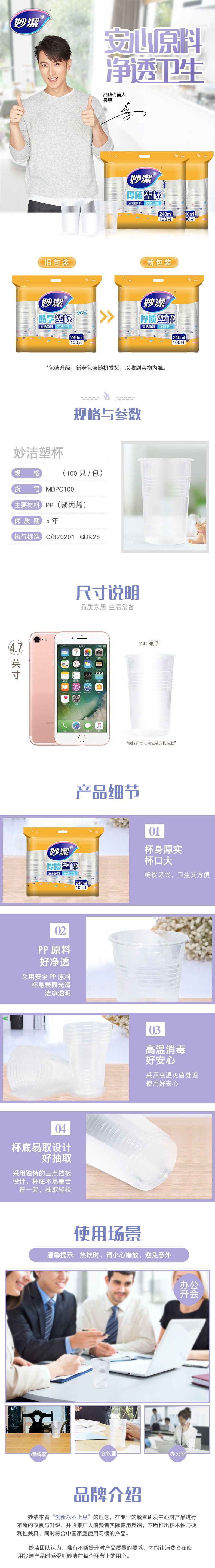 【积分兑换】超市同款妙洁一次性杯子加厚100只