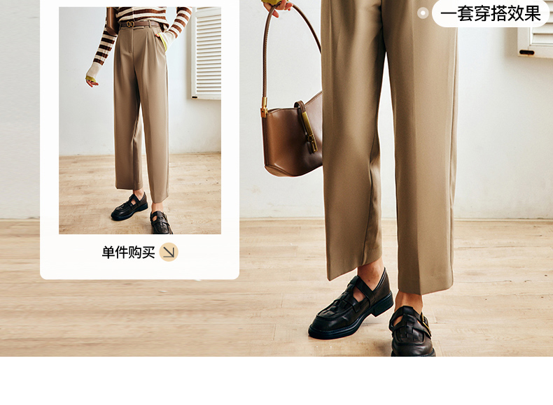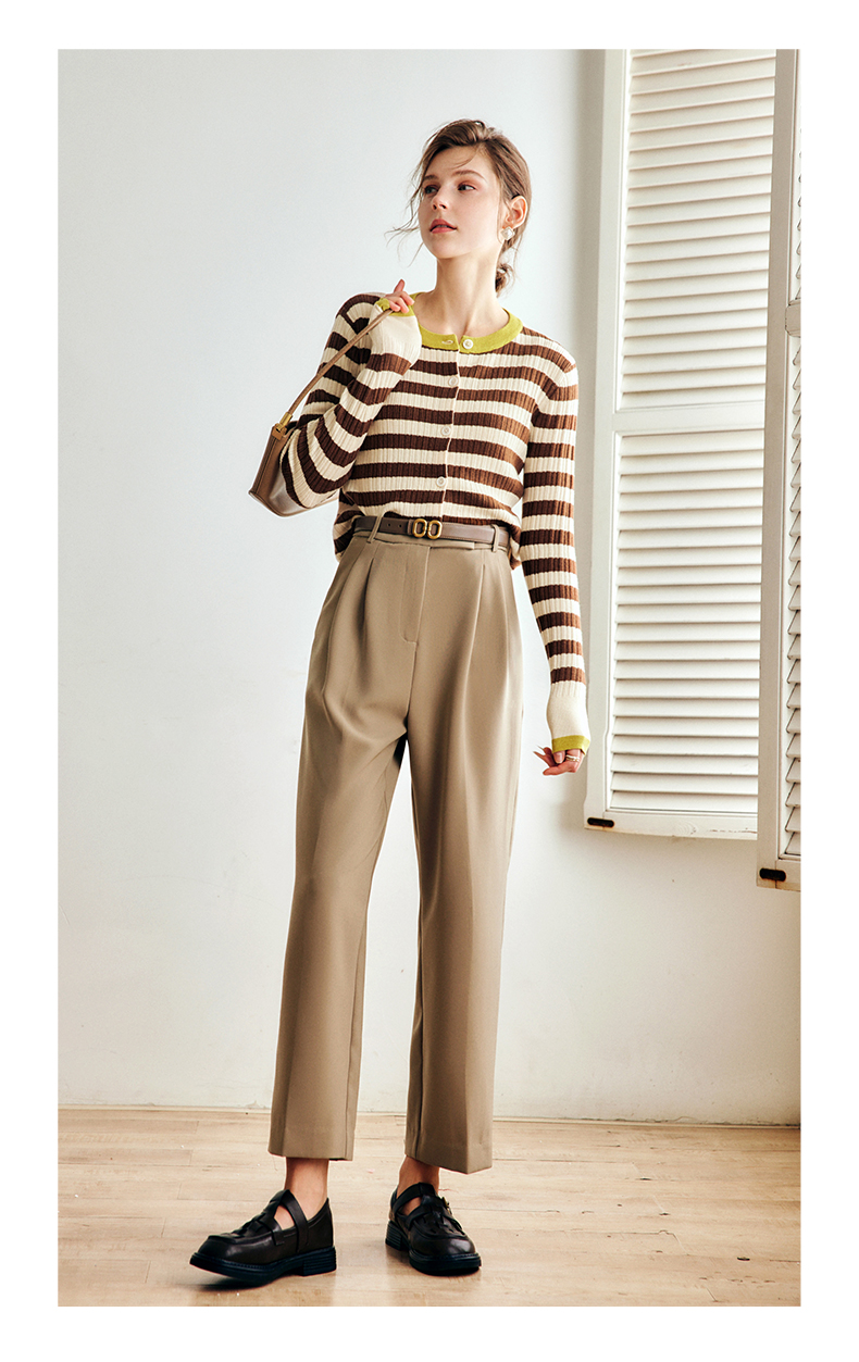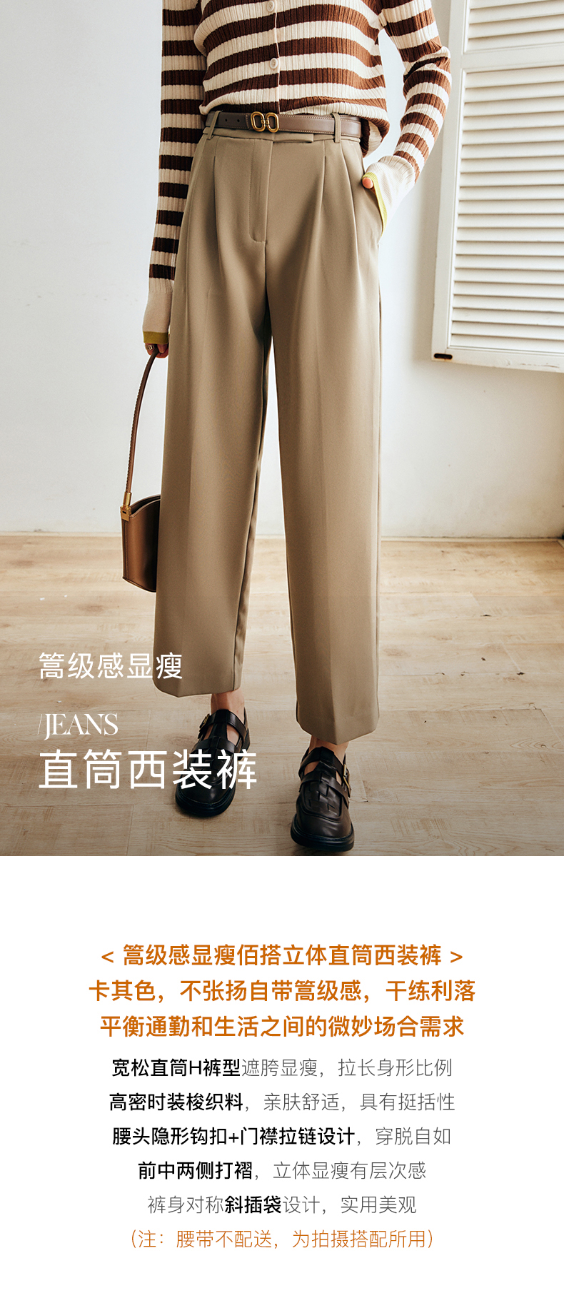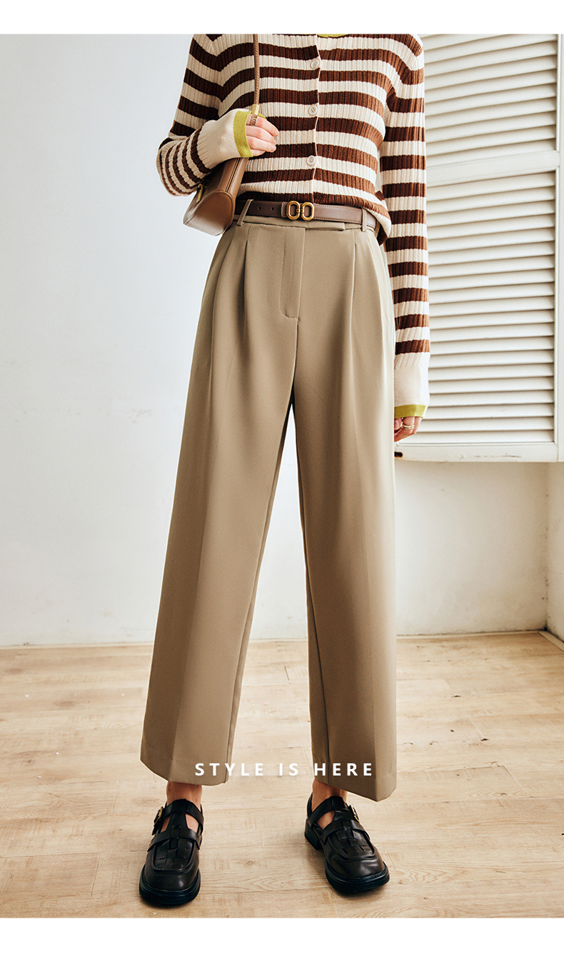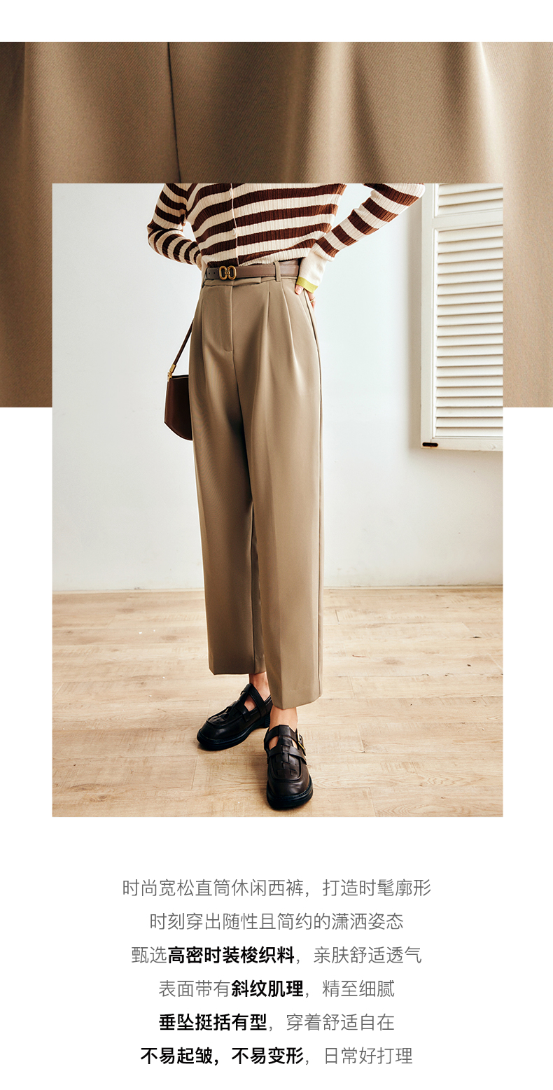 OLrain欧芮儿法式卡其色休闲裤女早秋2022年新款潮ins直筒西装裤