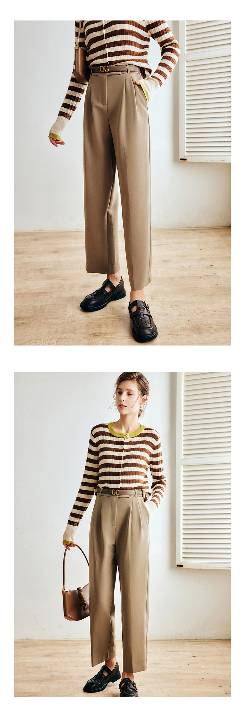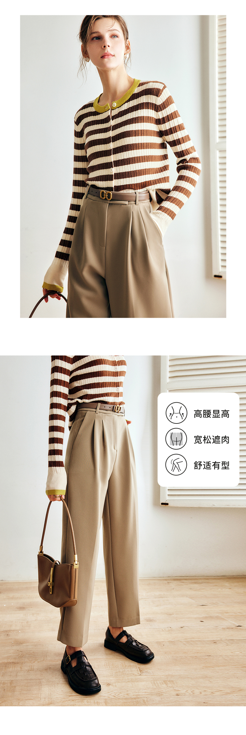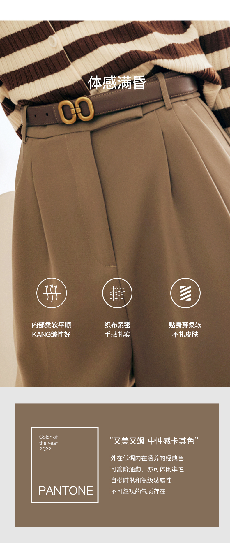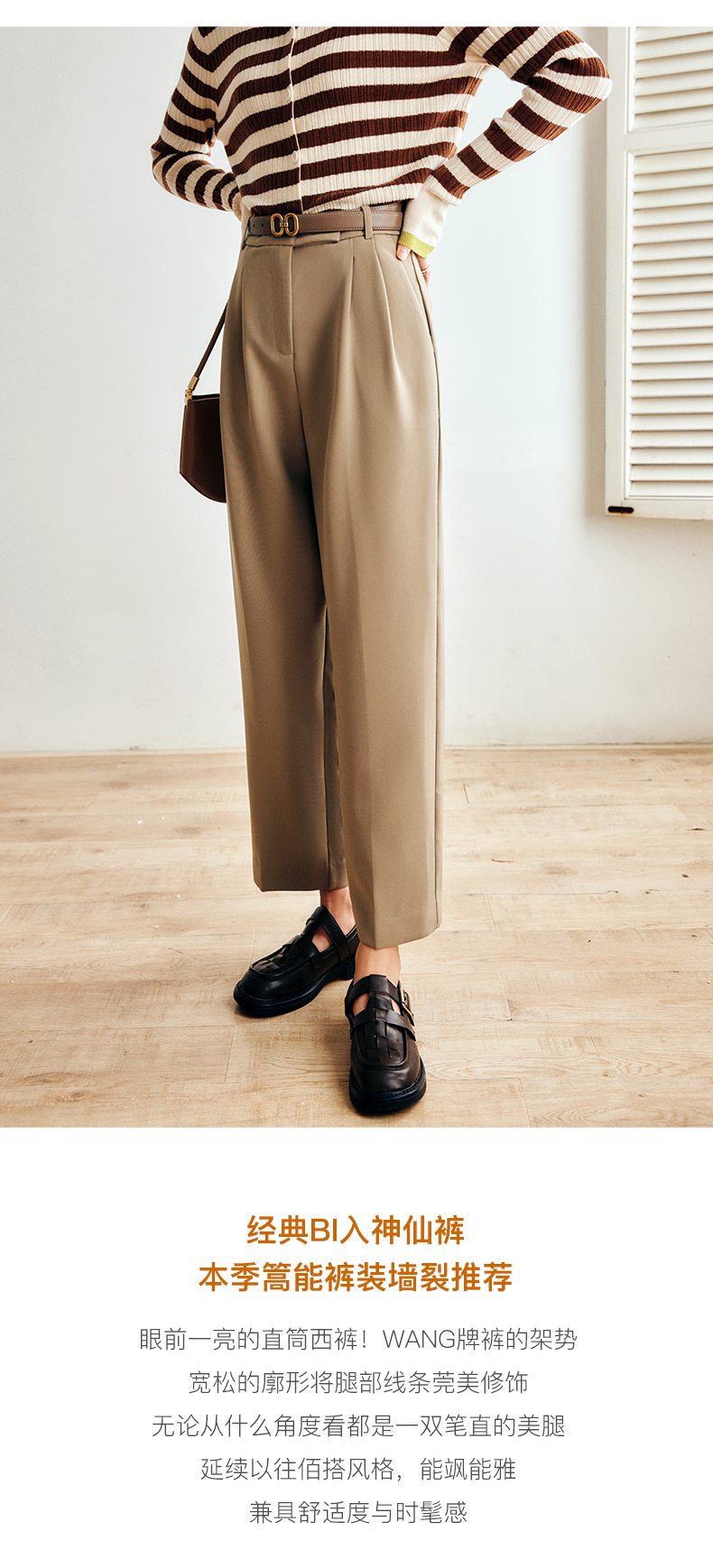 OLrain欧芮儿法式卡其色休闲裤女早秋2022年新款潮ins直筒西装裤