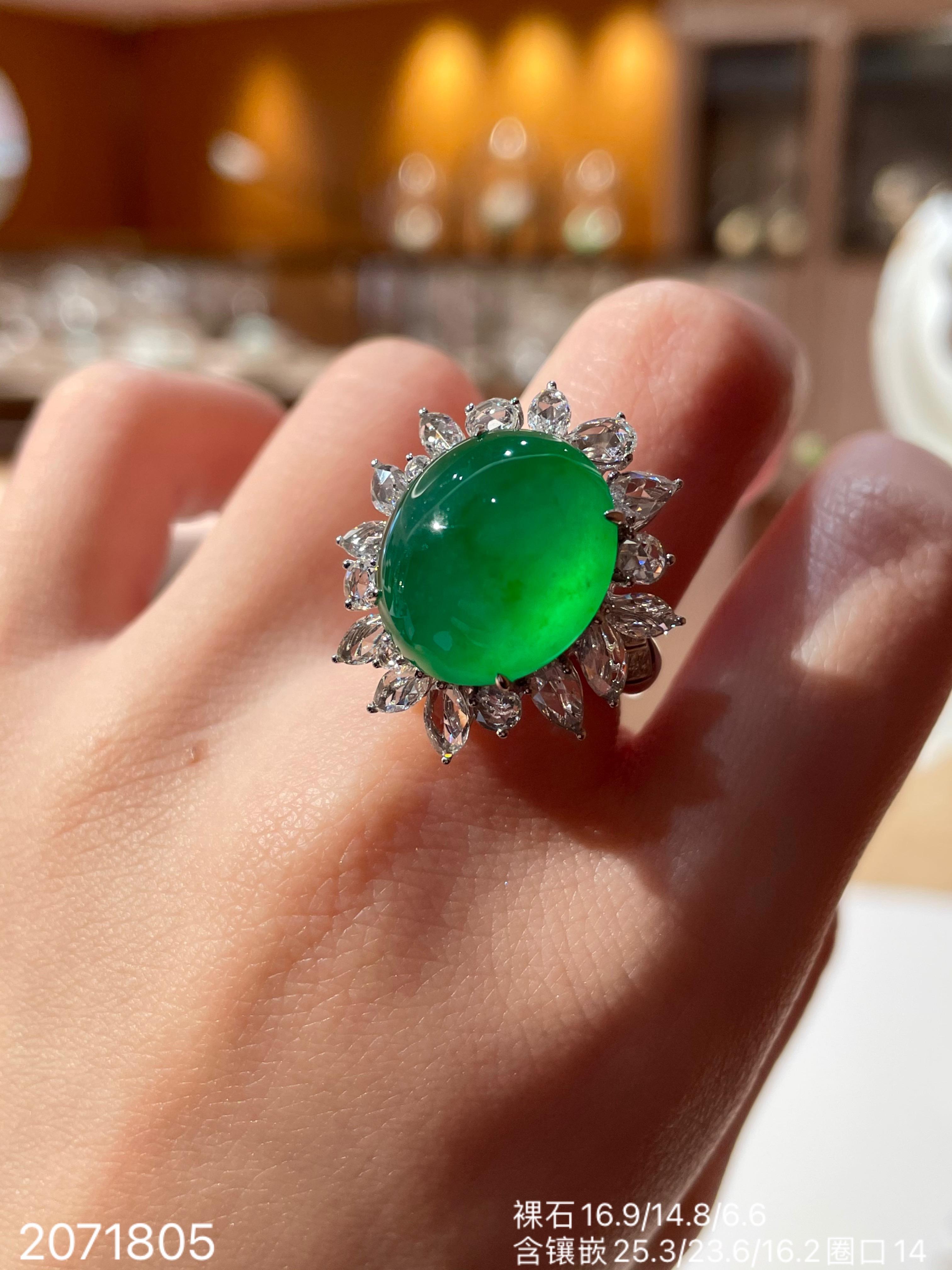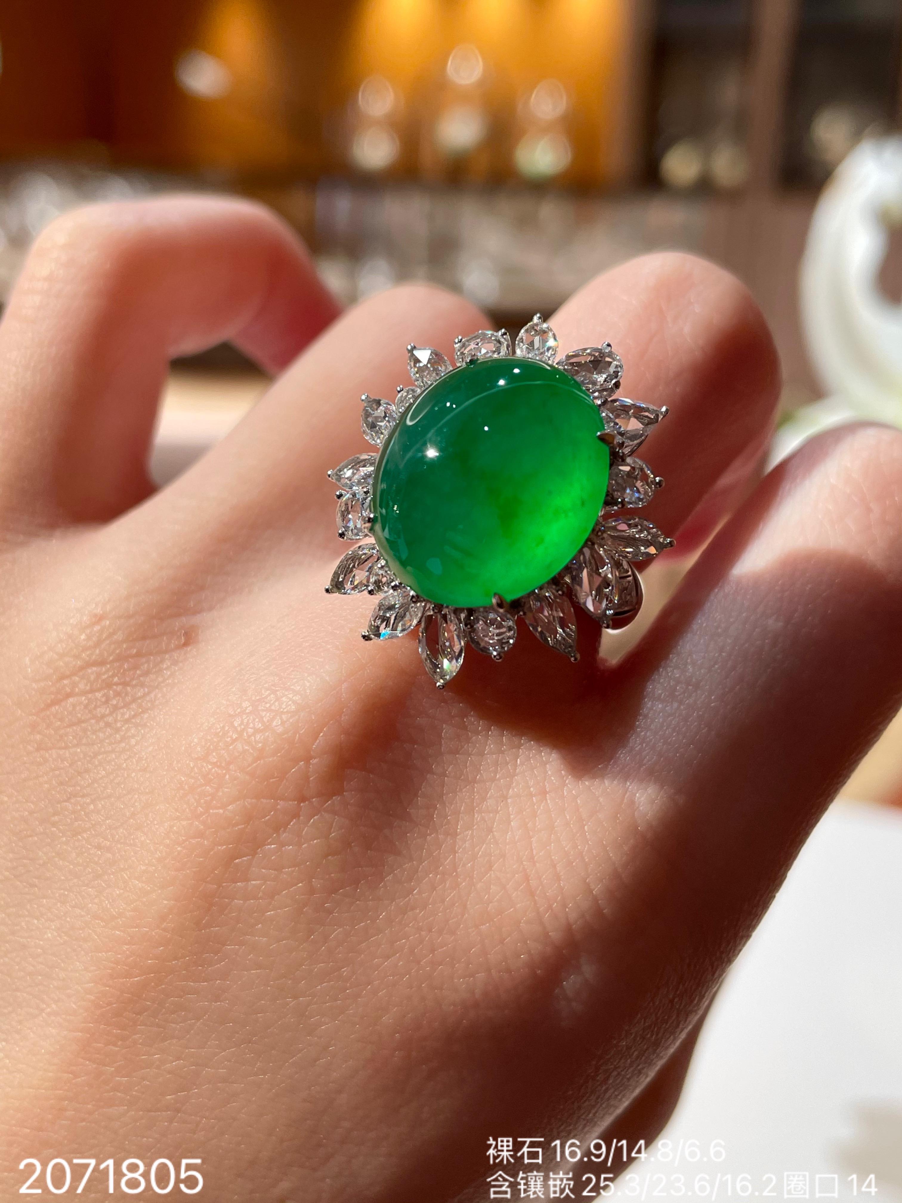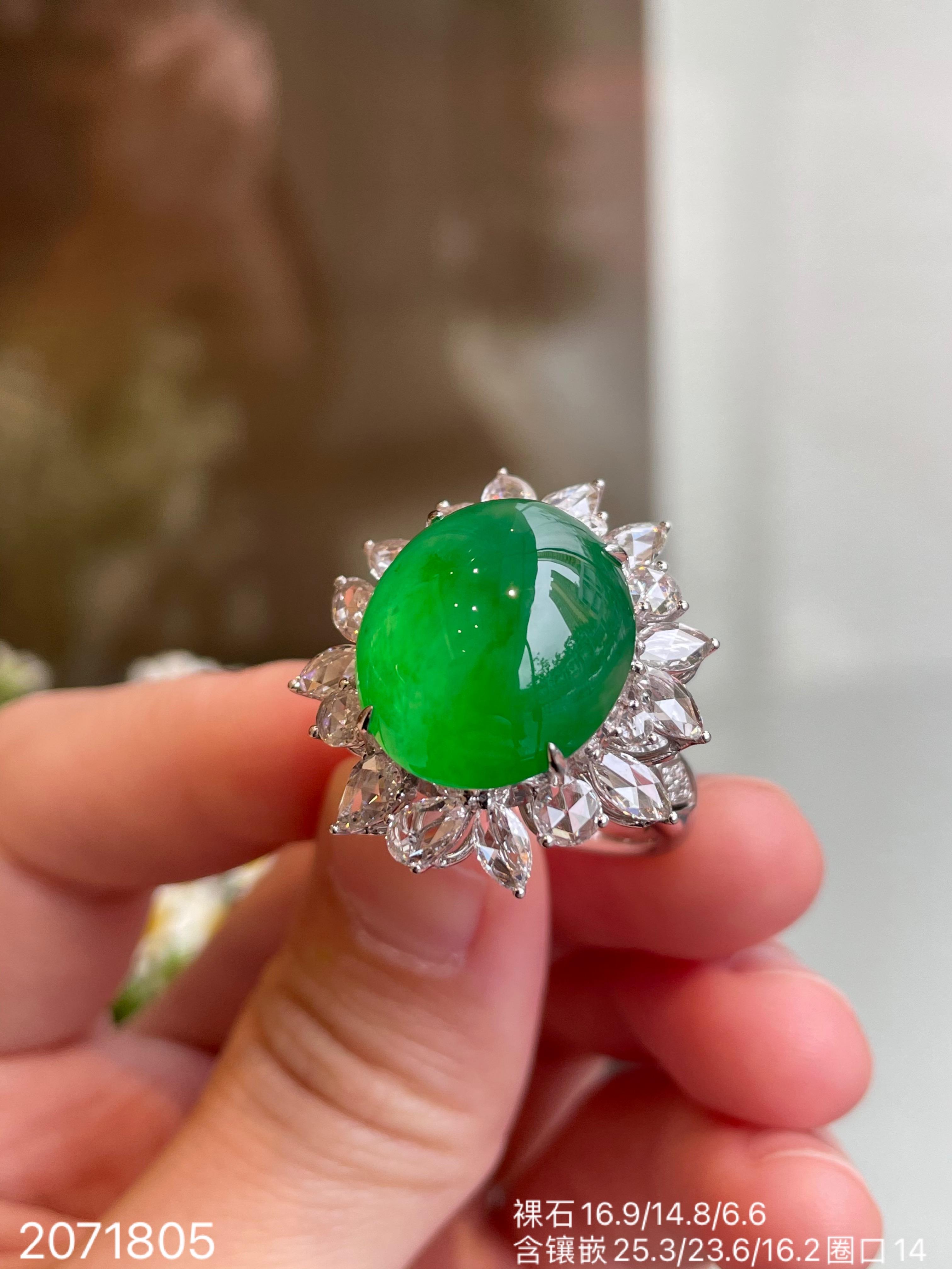 近高冰艳绿蛋面戒指 【2071805】具体价格微信咨询