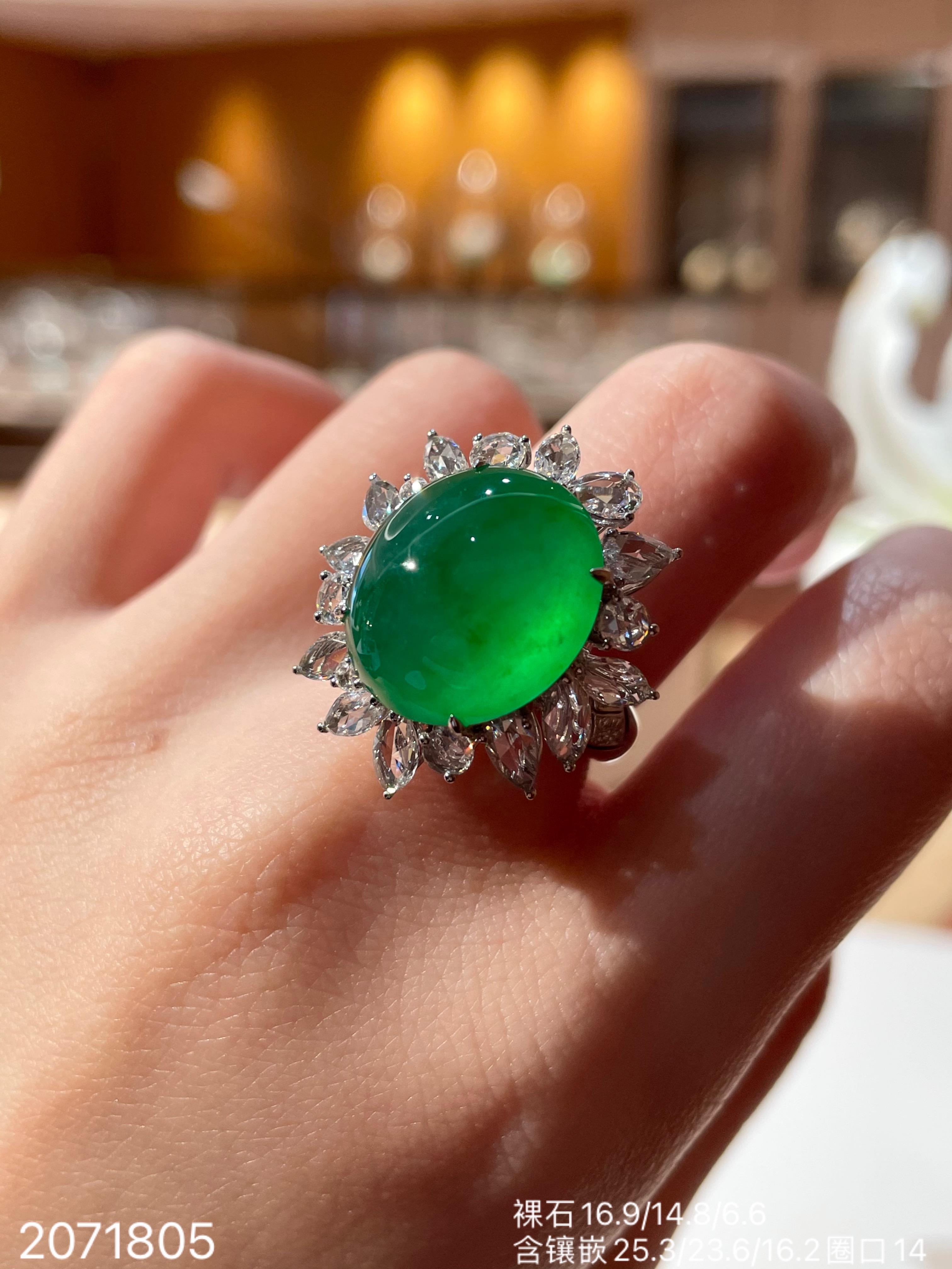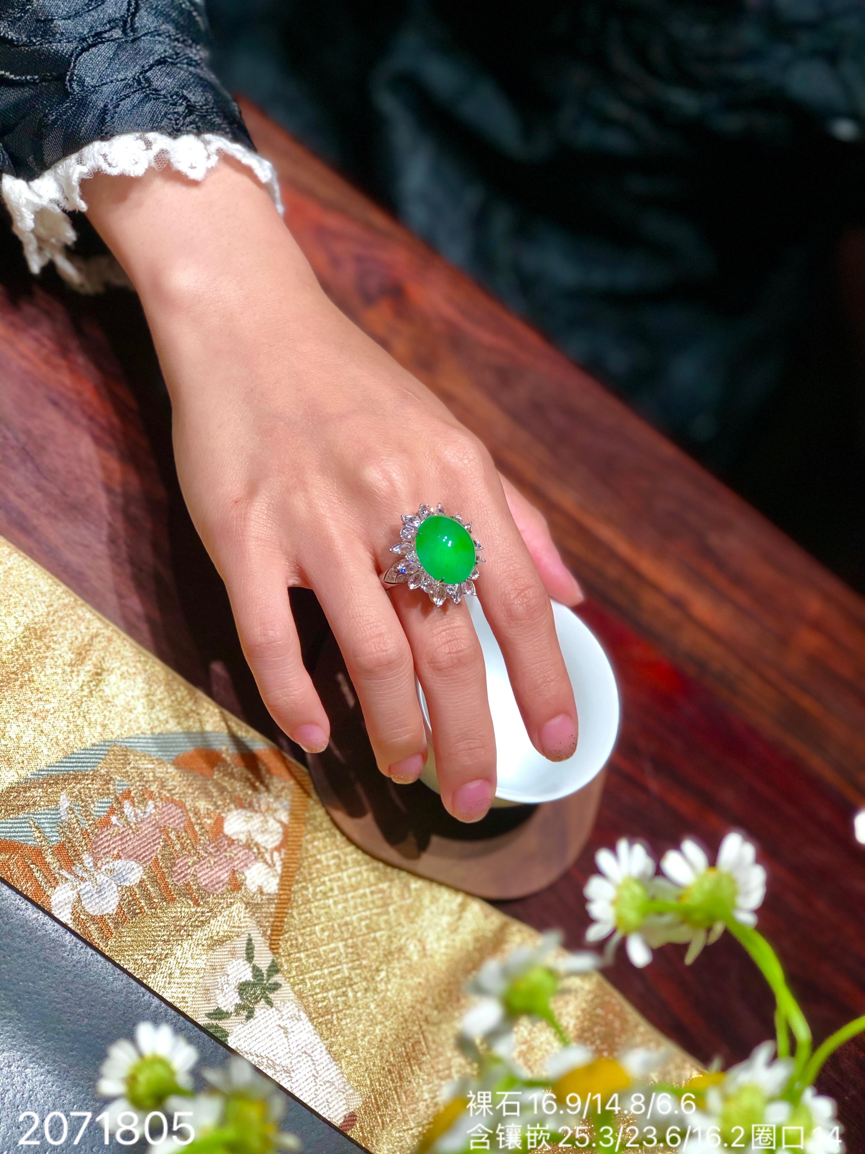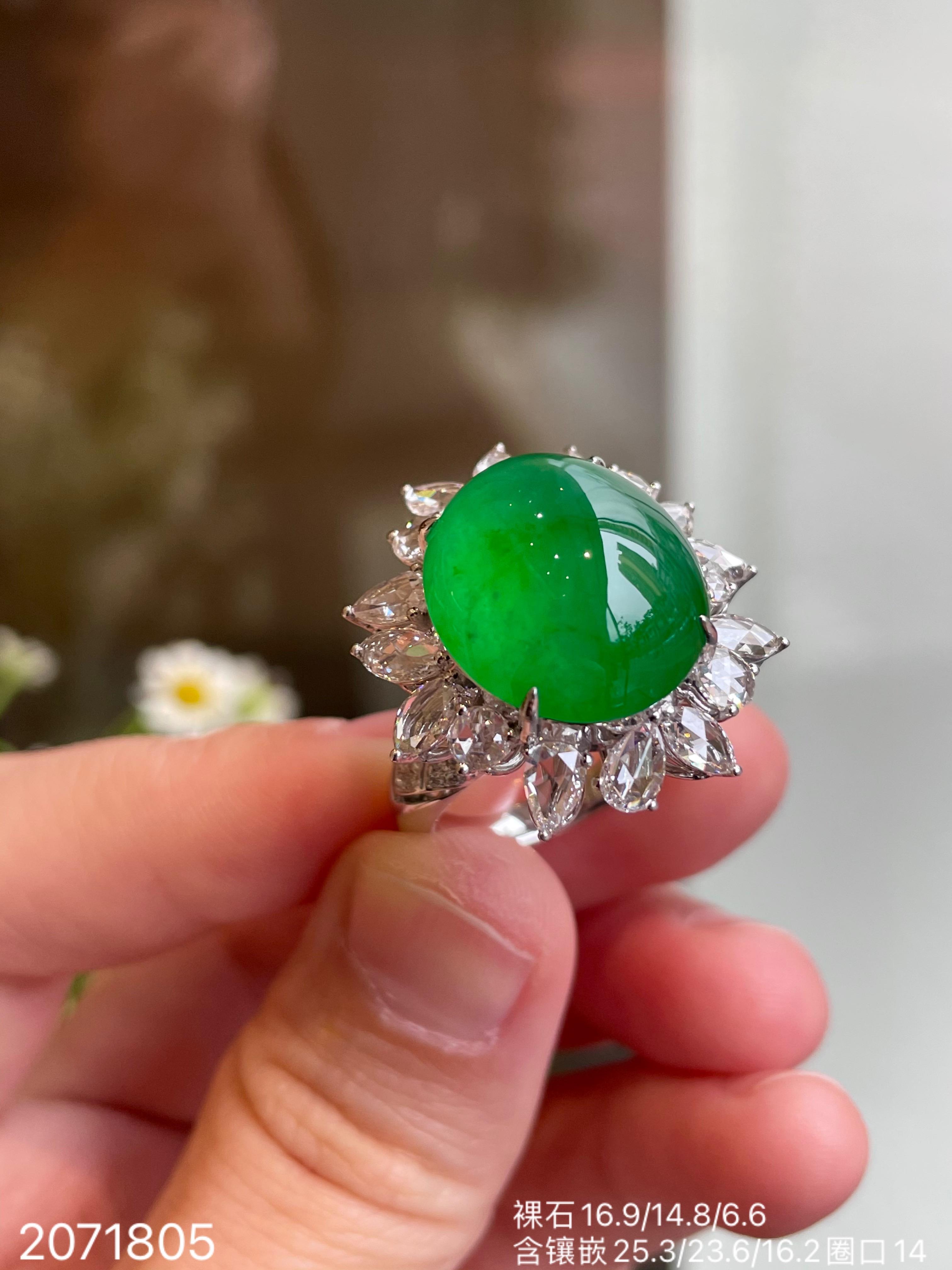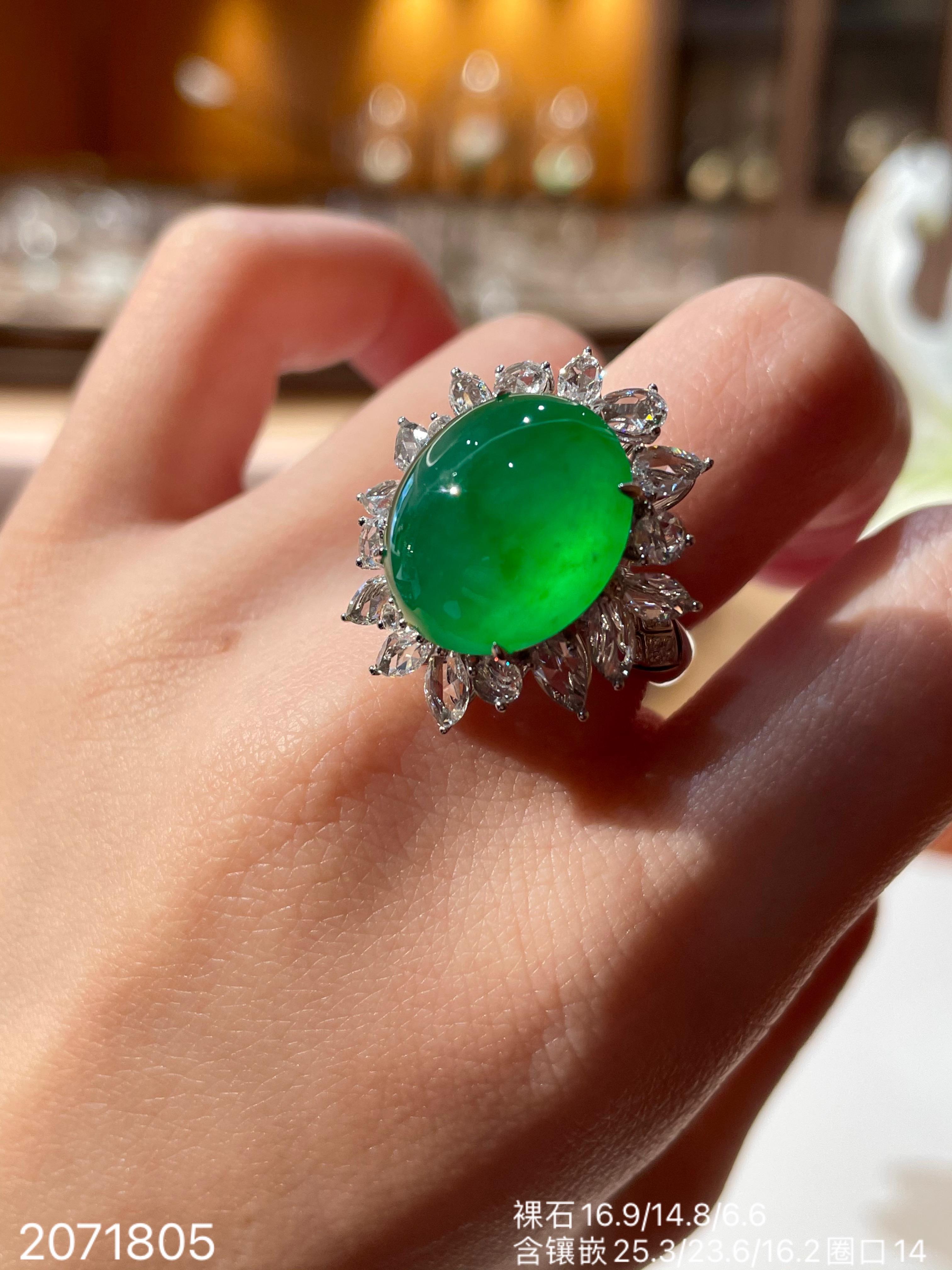 近高冰艳绿蛋面戒指 【2071805】具体价格微信咨询