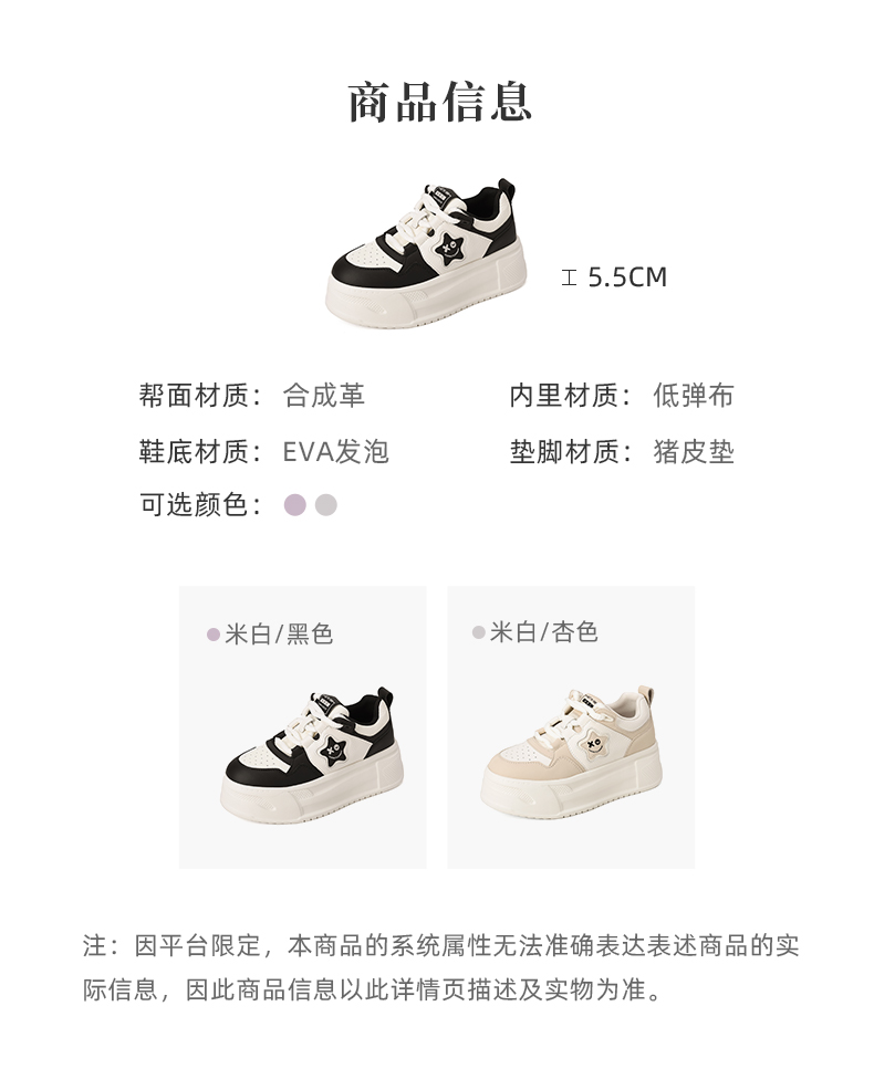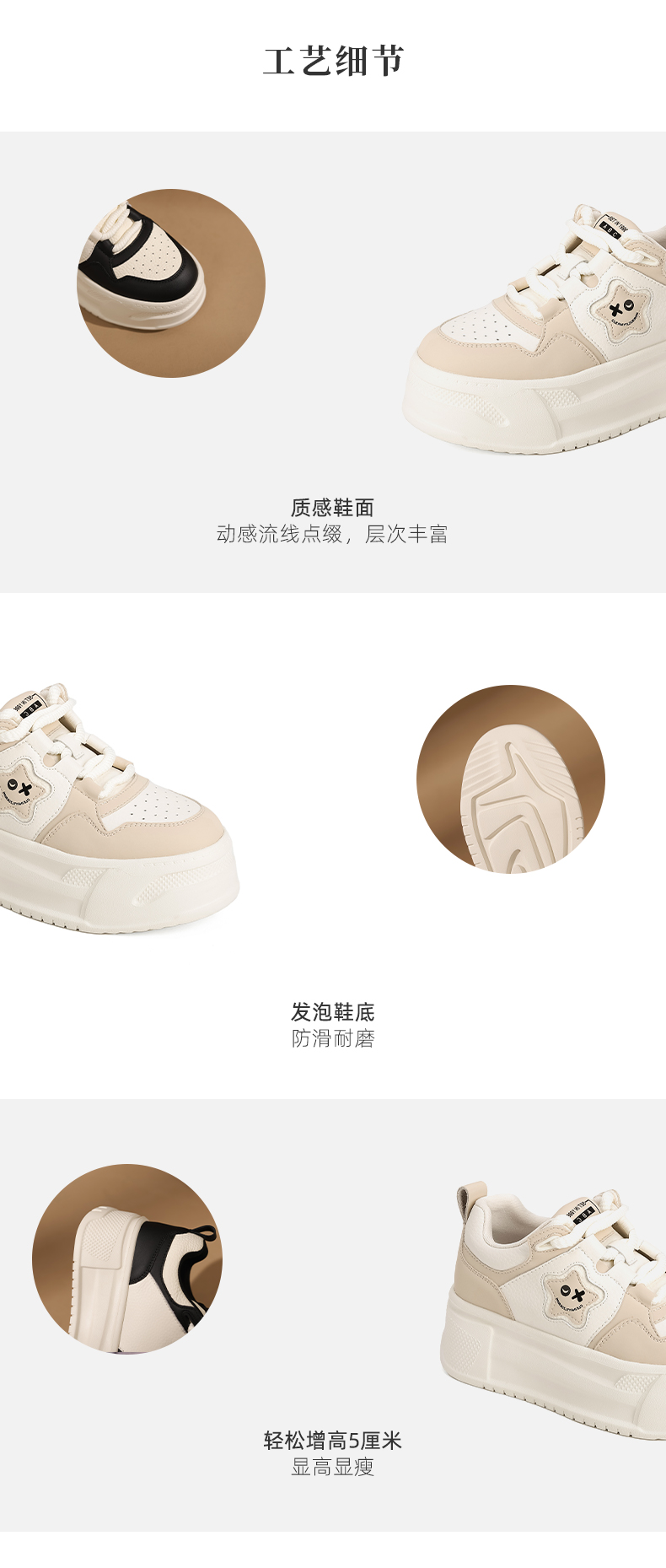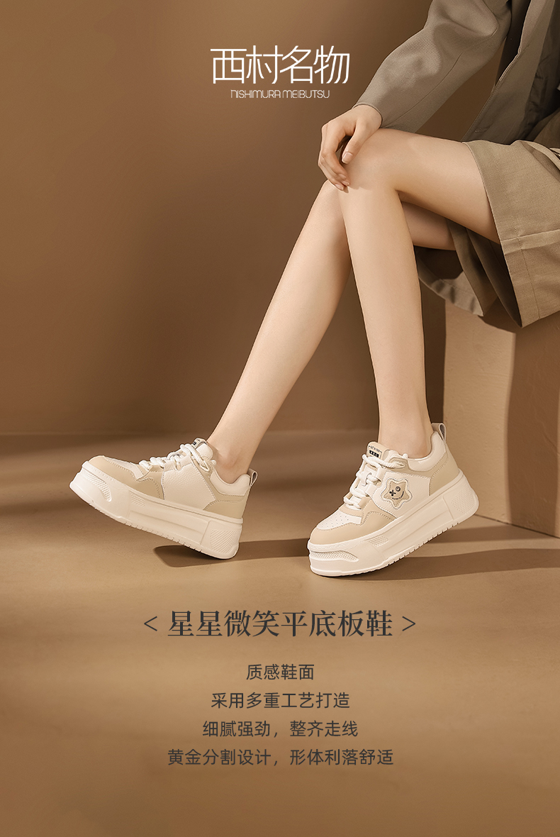西村名物2023秋季新品女士厚底熊猫星星鞋微笑板鞋休闲舒适T23CM35781