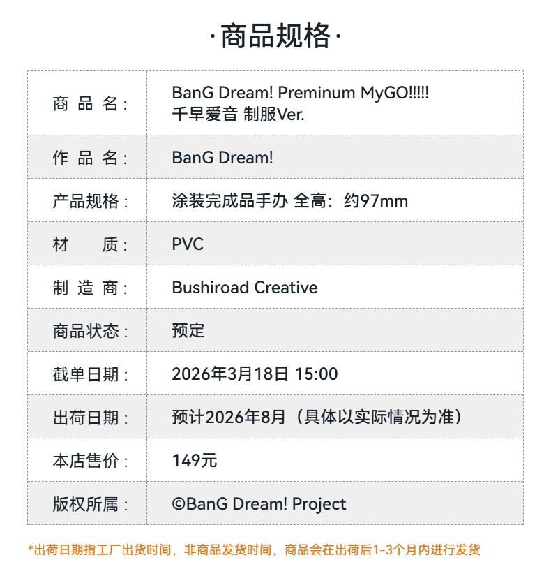 【GSC预售定金】BanG Dream! Preminum MyGO!!!!! 千早爱音 制服Ver.