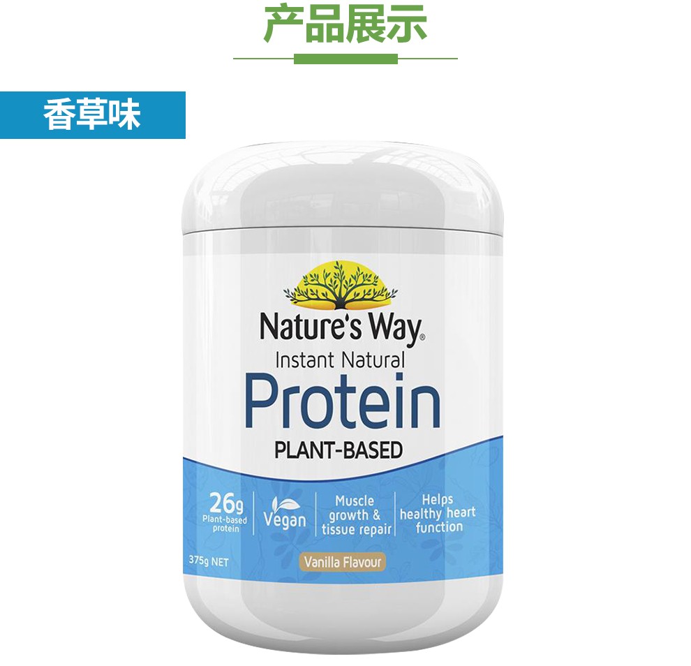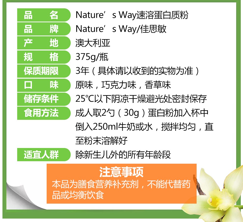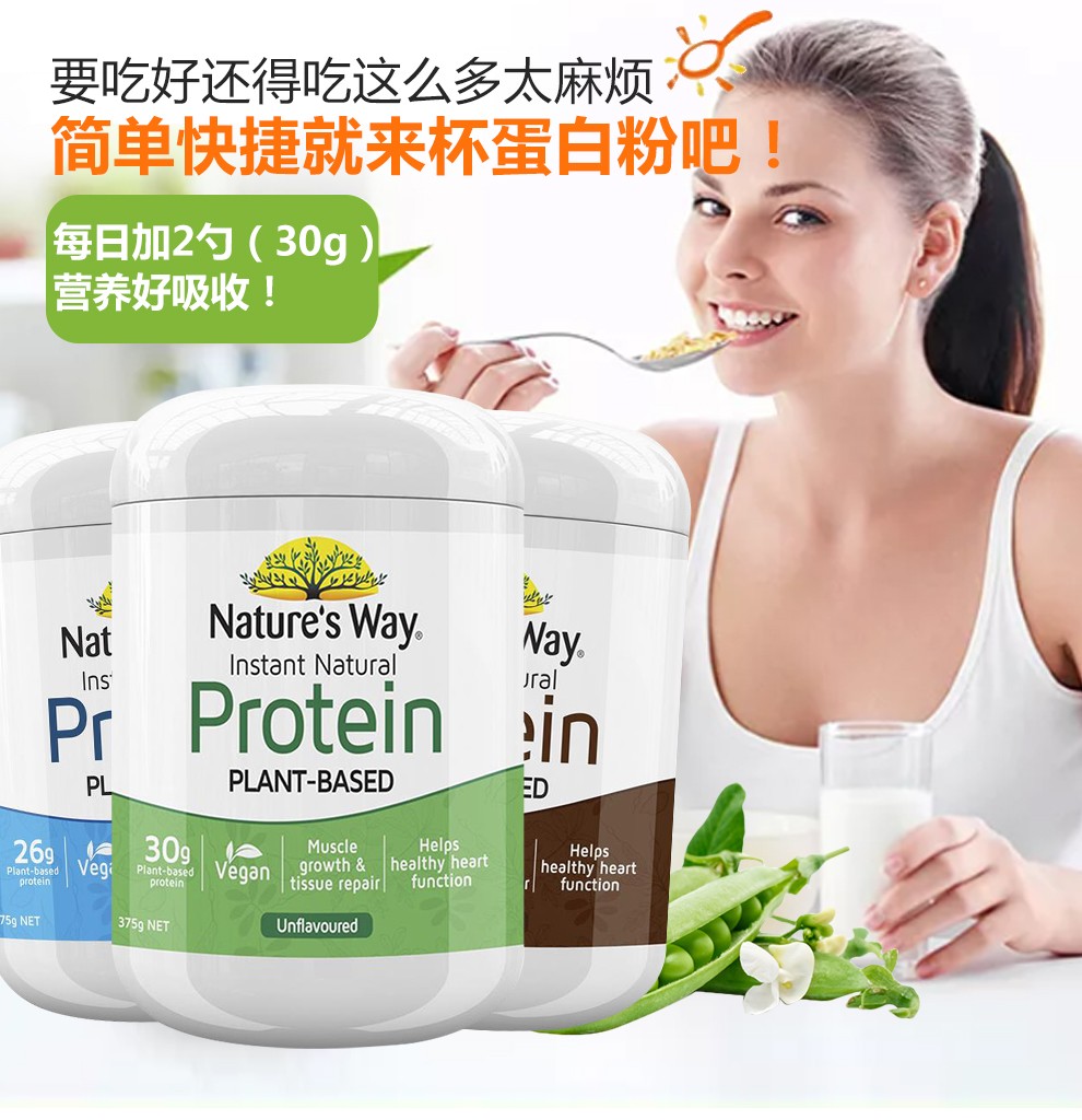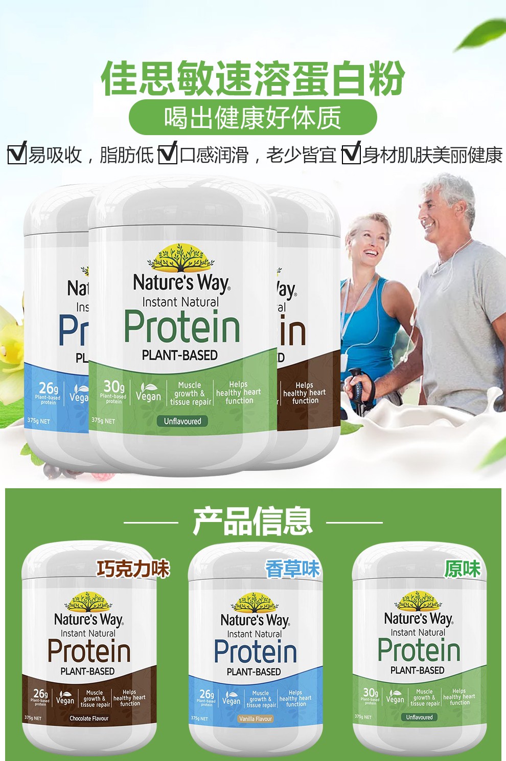 澳洲进口naturesway佳思敏天然速溶蛋白质粉大豆植物蛋白粉老少皆宜蛋白粉原味375g*1瓶香草味巧克力味