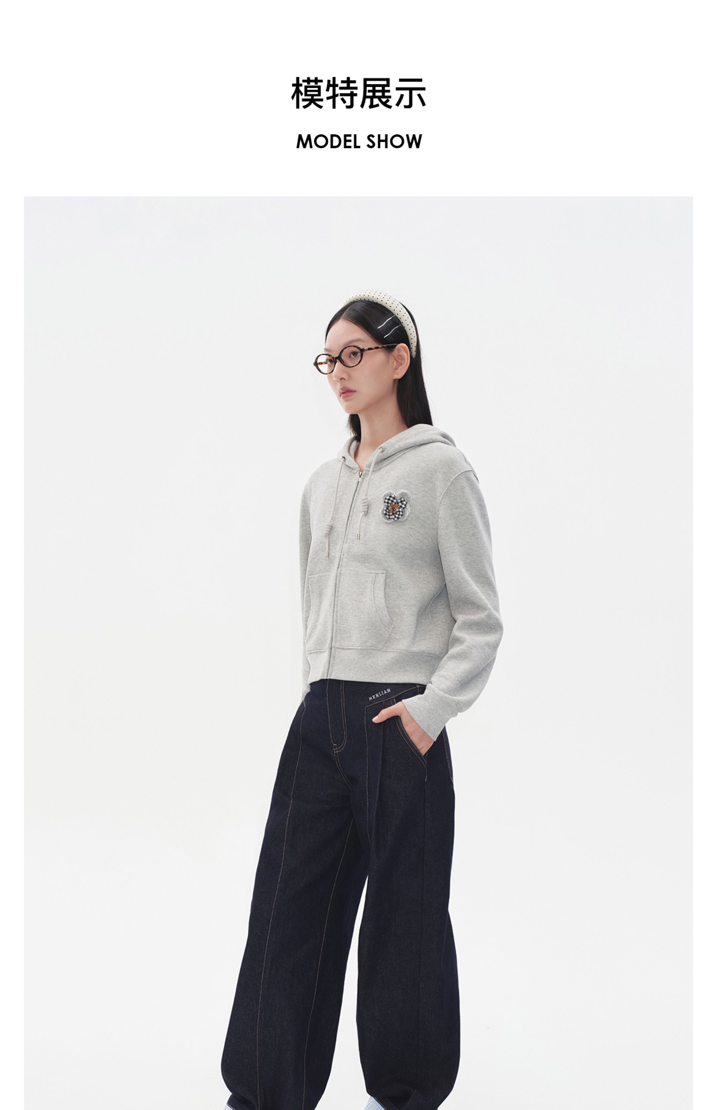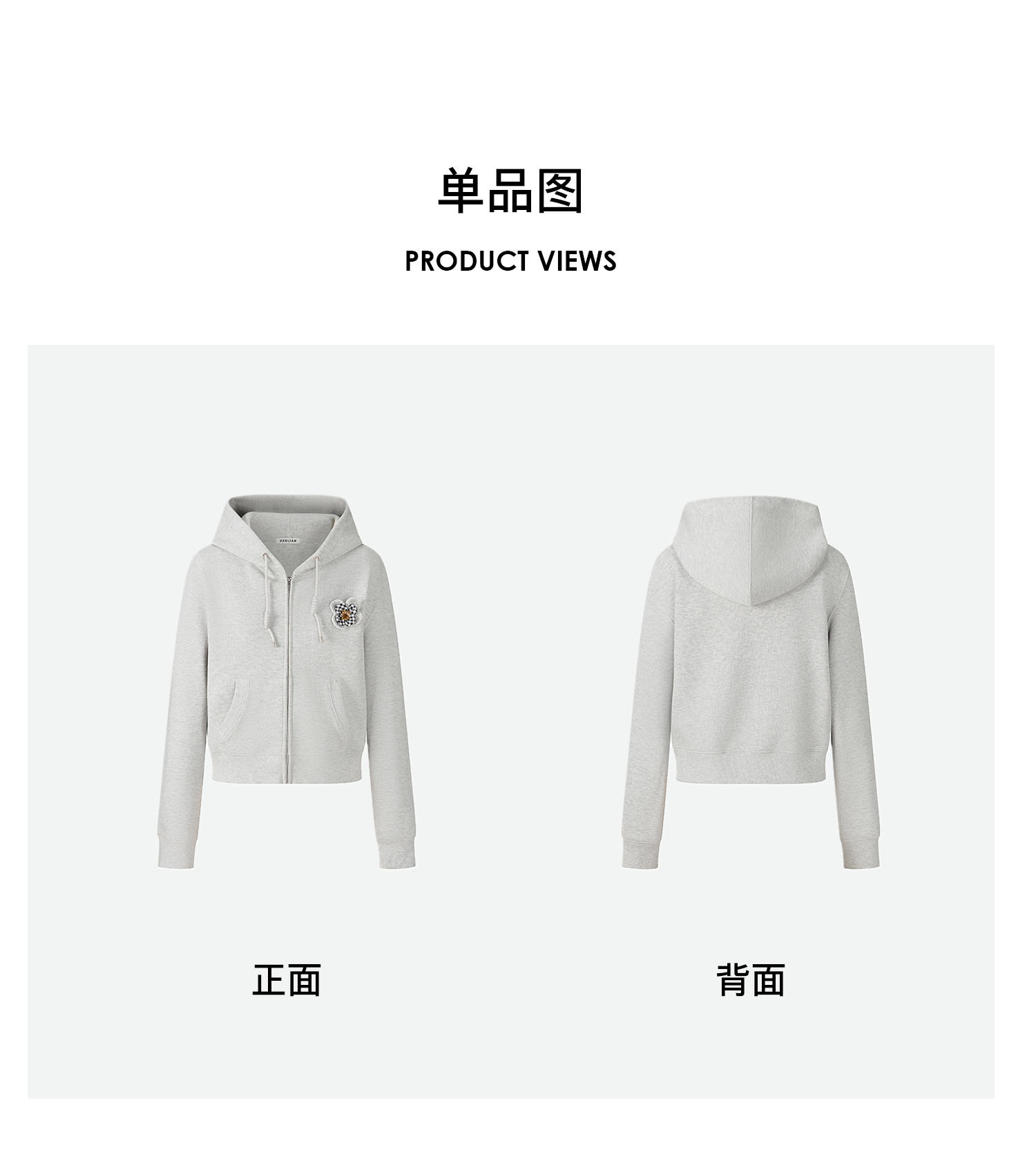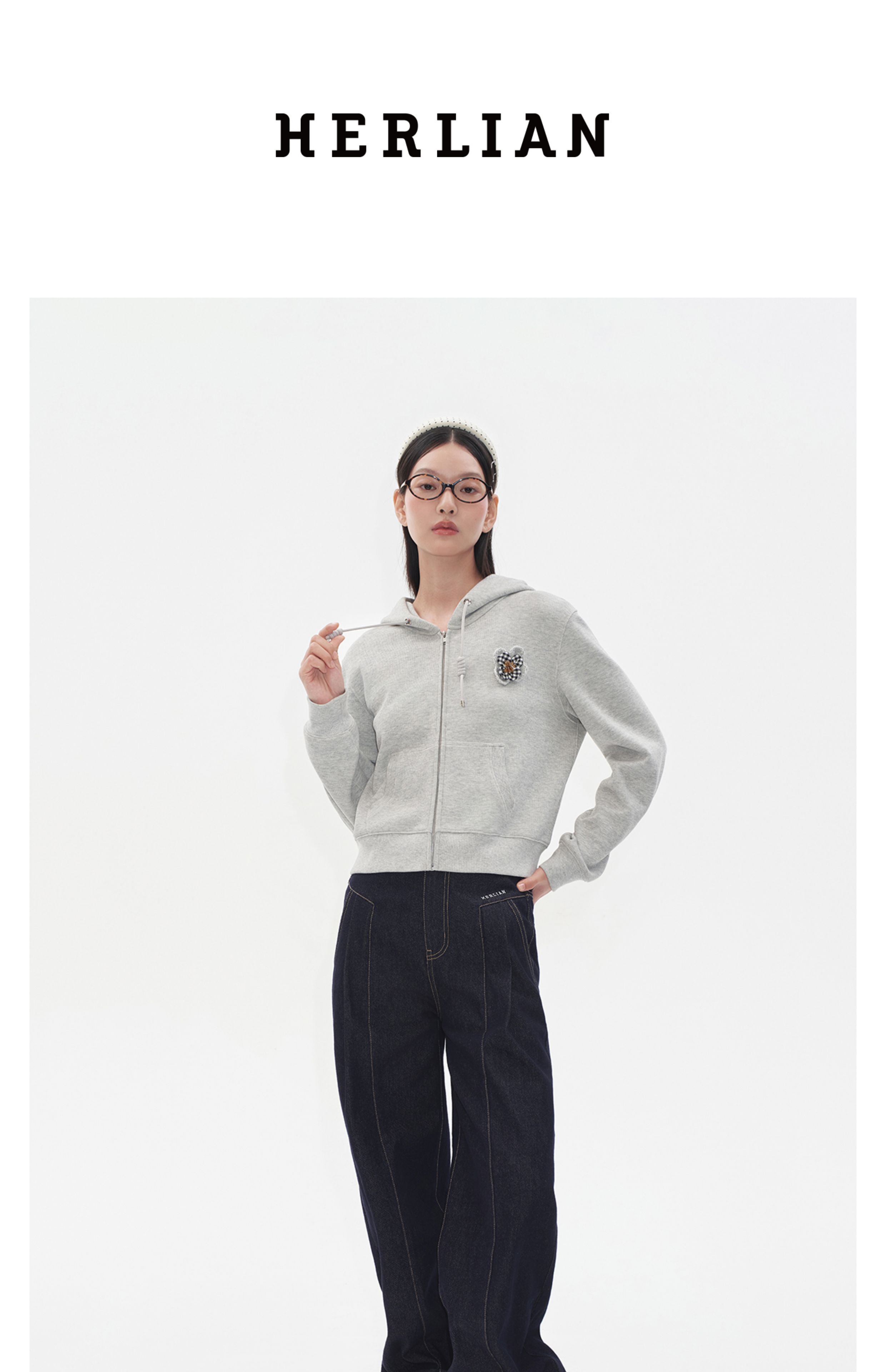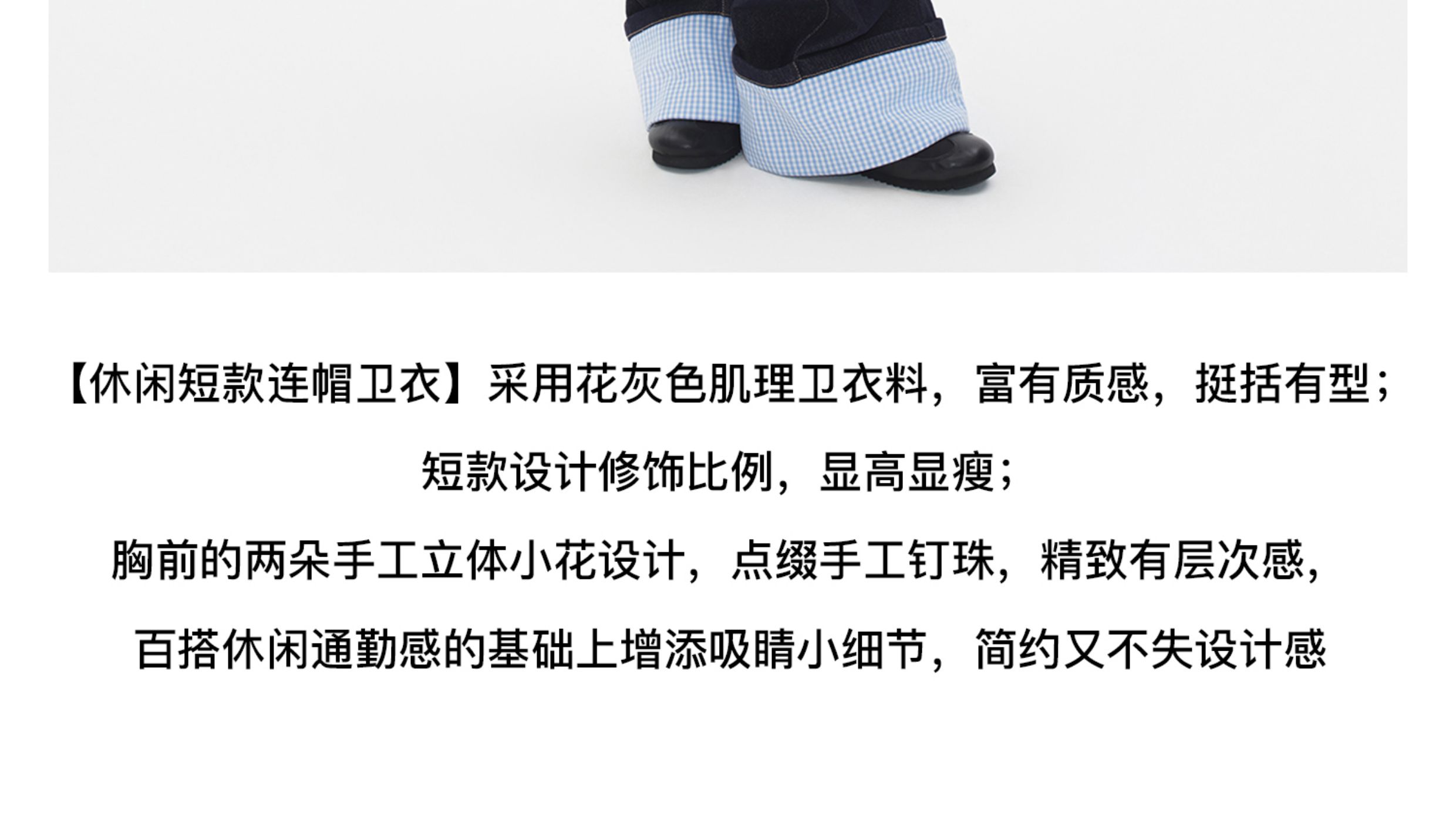 Herlian2025年秋季新品女士格纹钉珠立体花瓣装饰短版卫衣开衫