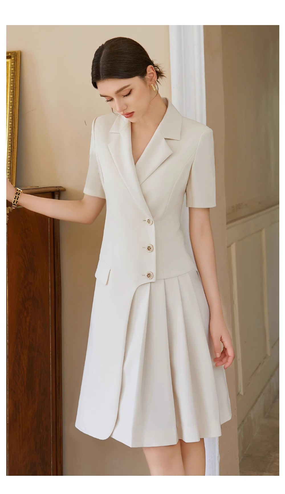 IWY/米白色主持西装职业连衣裙女夏教师演讲比赛公务员面试正装Q1382