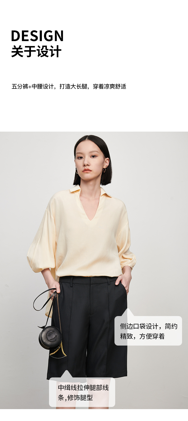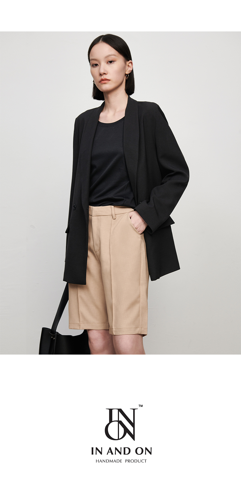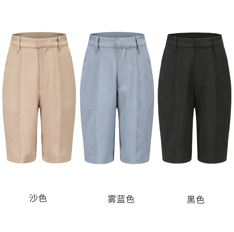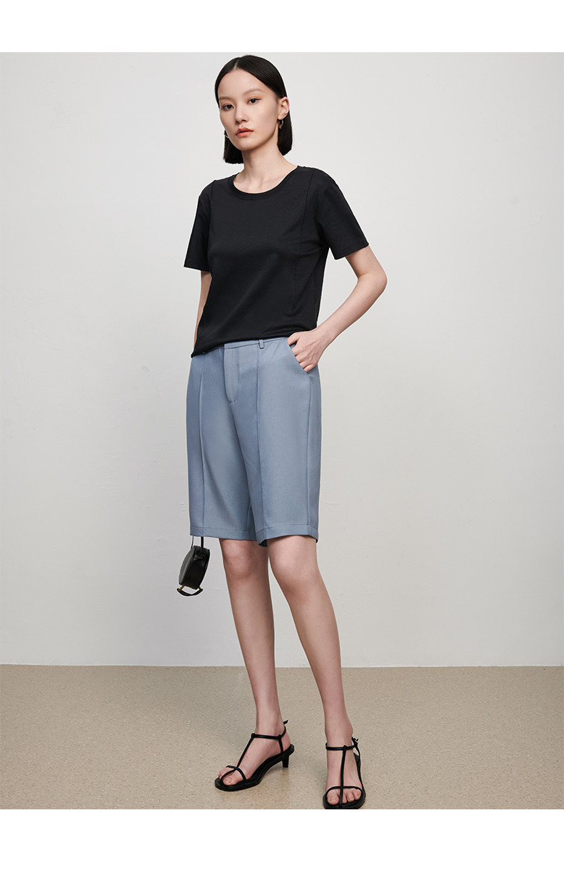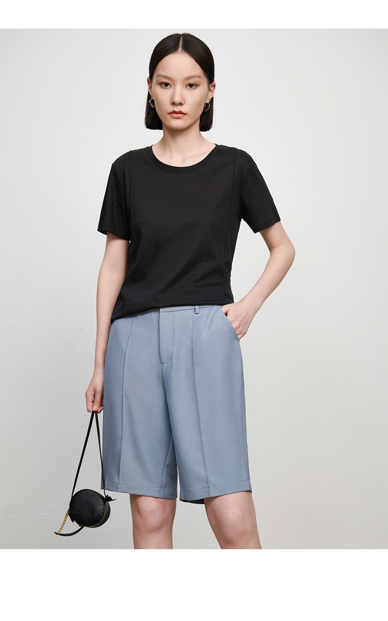 【品牌优选】【合作直发】IN AND ON新款华尔兹花纱麻感缉线休闲中裤时尚百搭五分裤