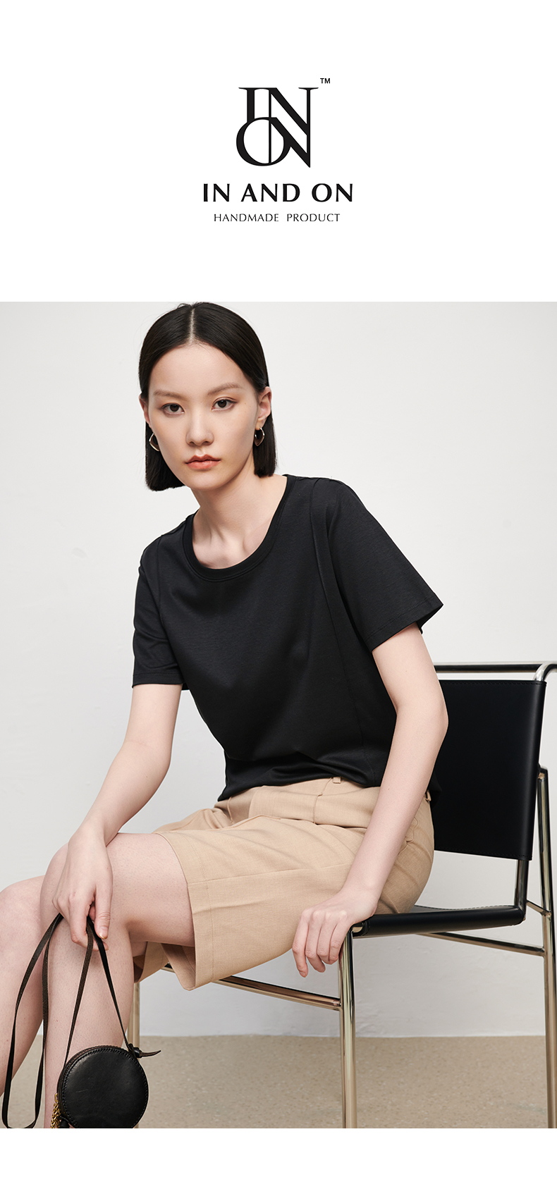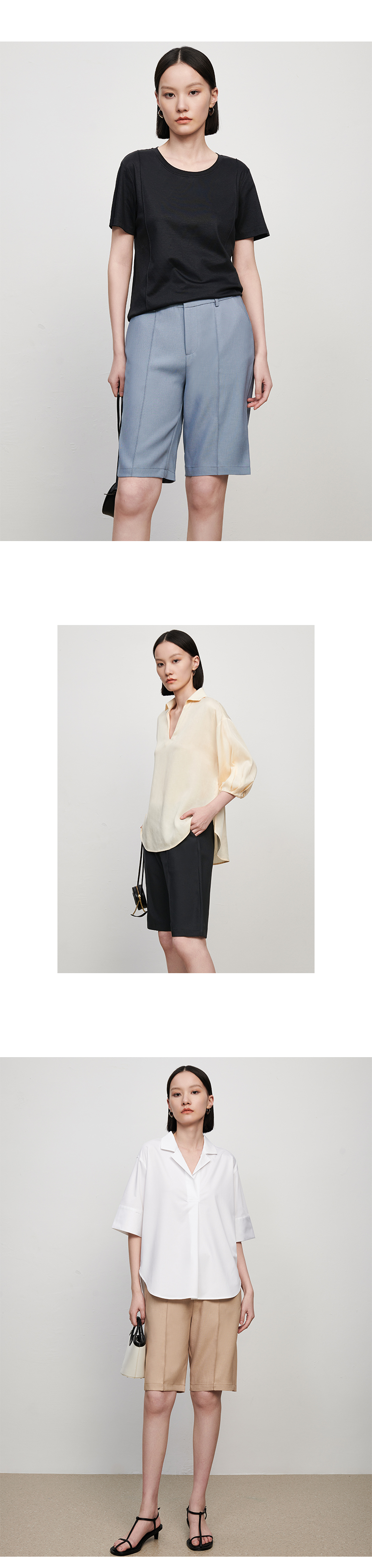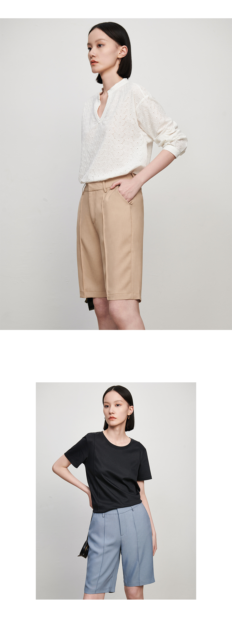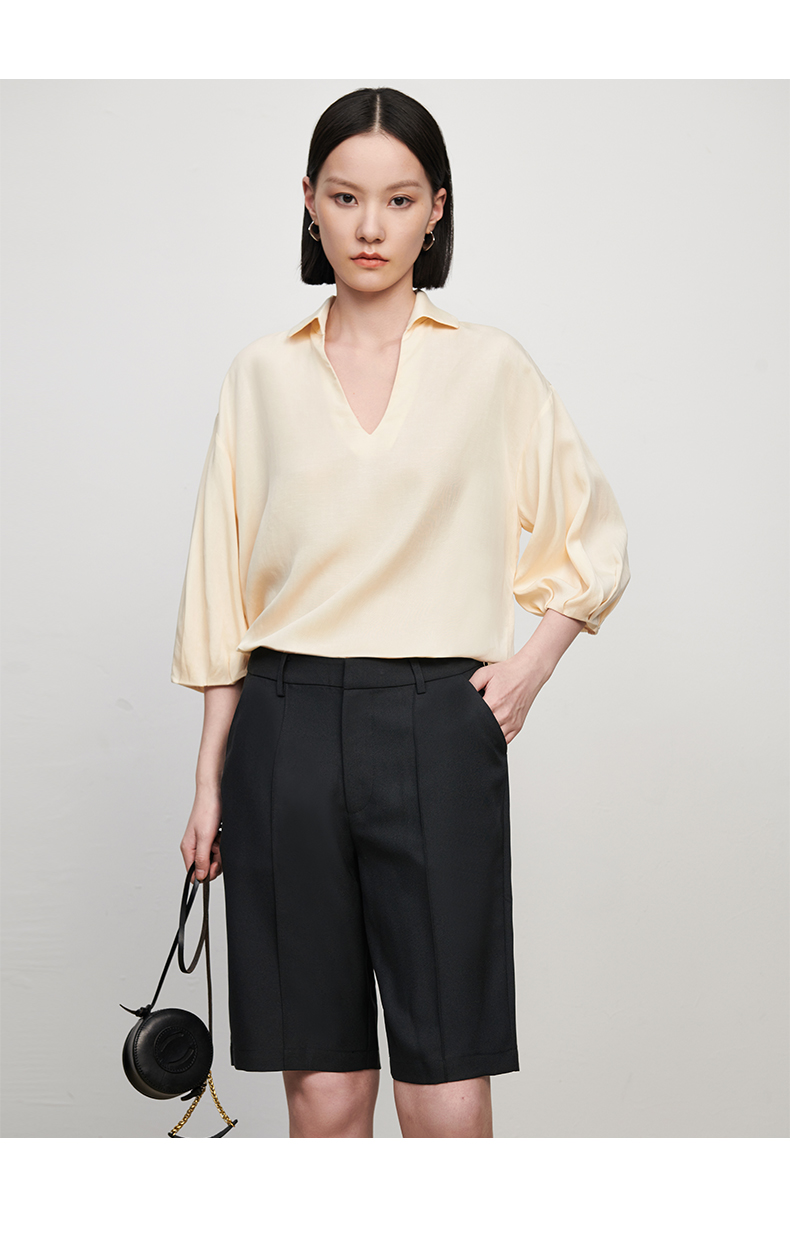 【品牌优选】【合作直发】IN AND ON新款华尔兹花纱麻感缉线休闲中裤时尚百搭五分裤