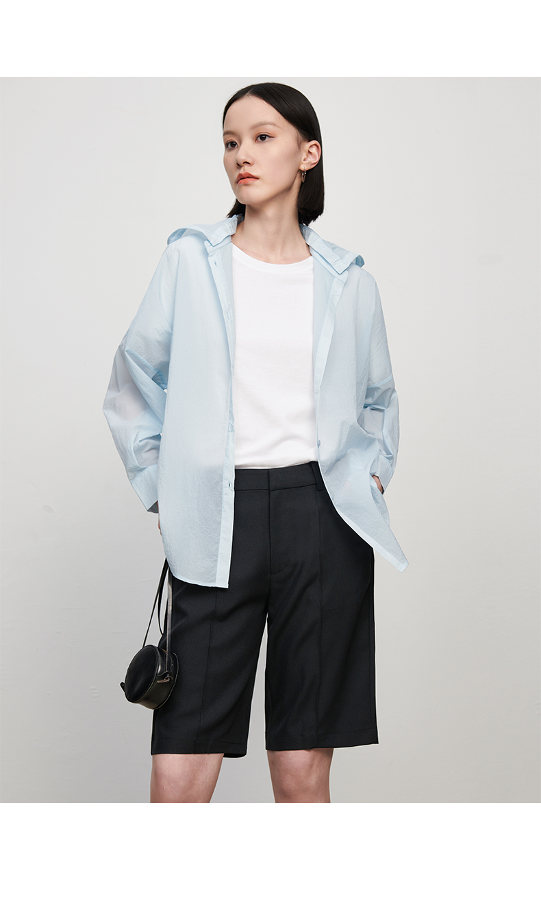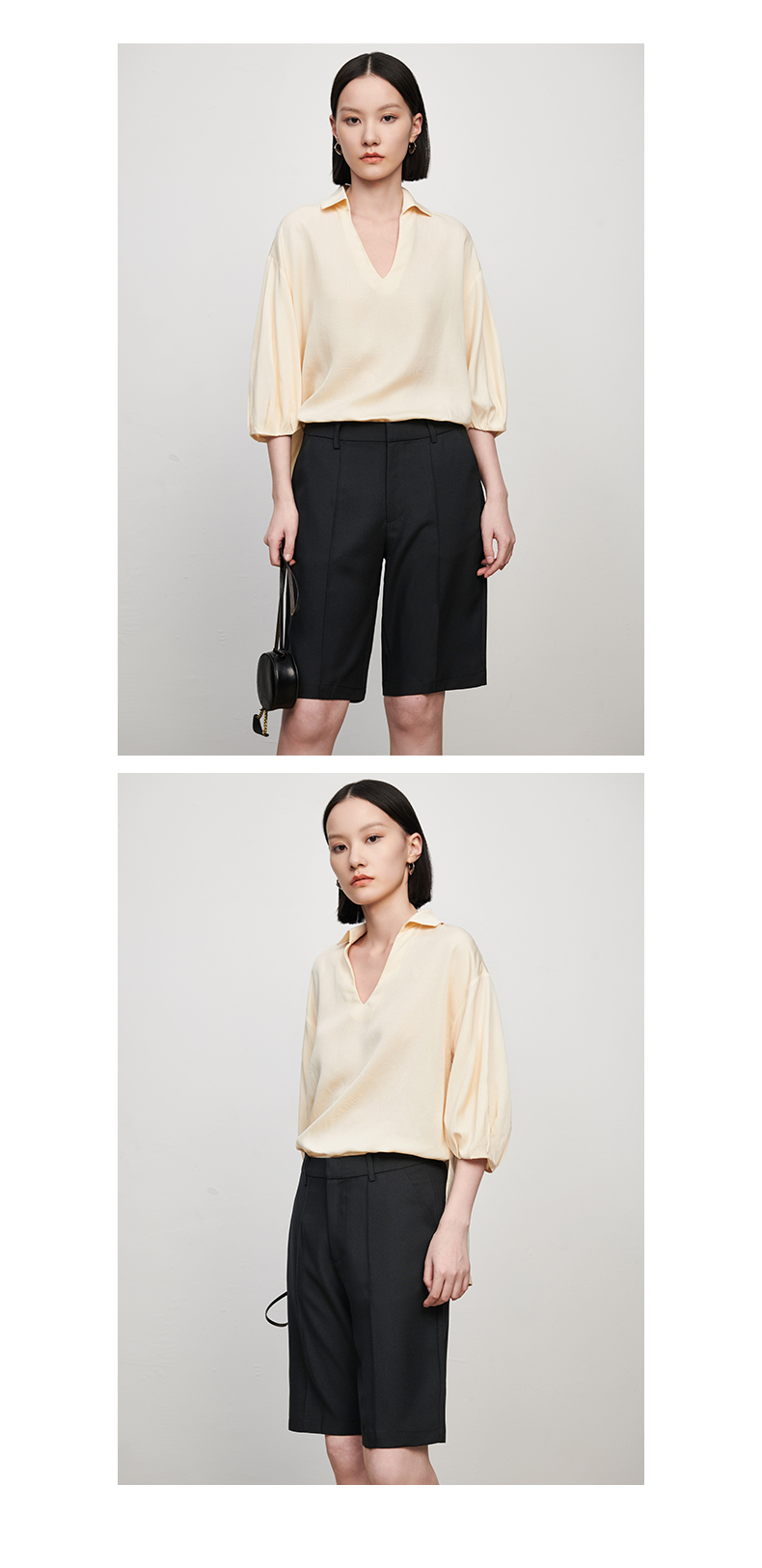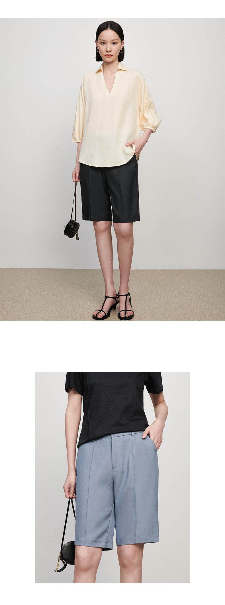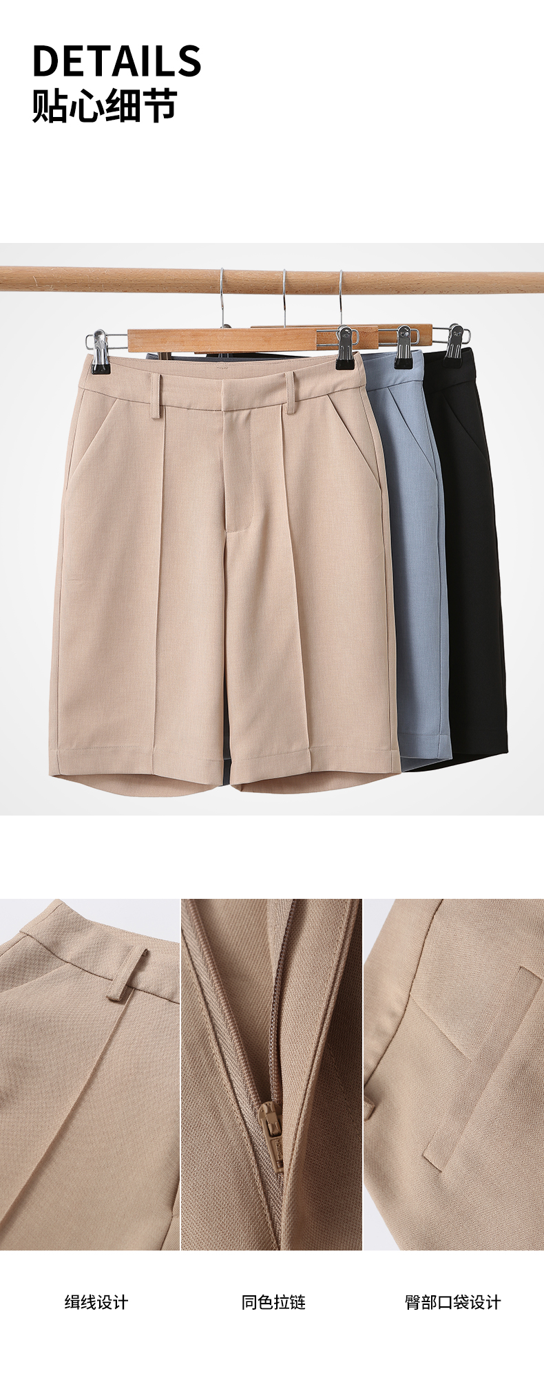 【品牌优选】【合作直发】IN AND ON新款华尔兹花纱麻感缉线休闲中裤时尚百搭五分裤