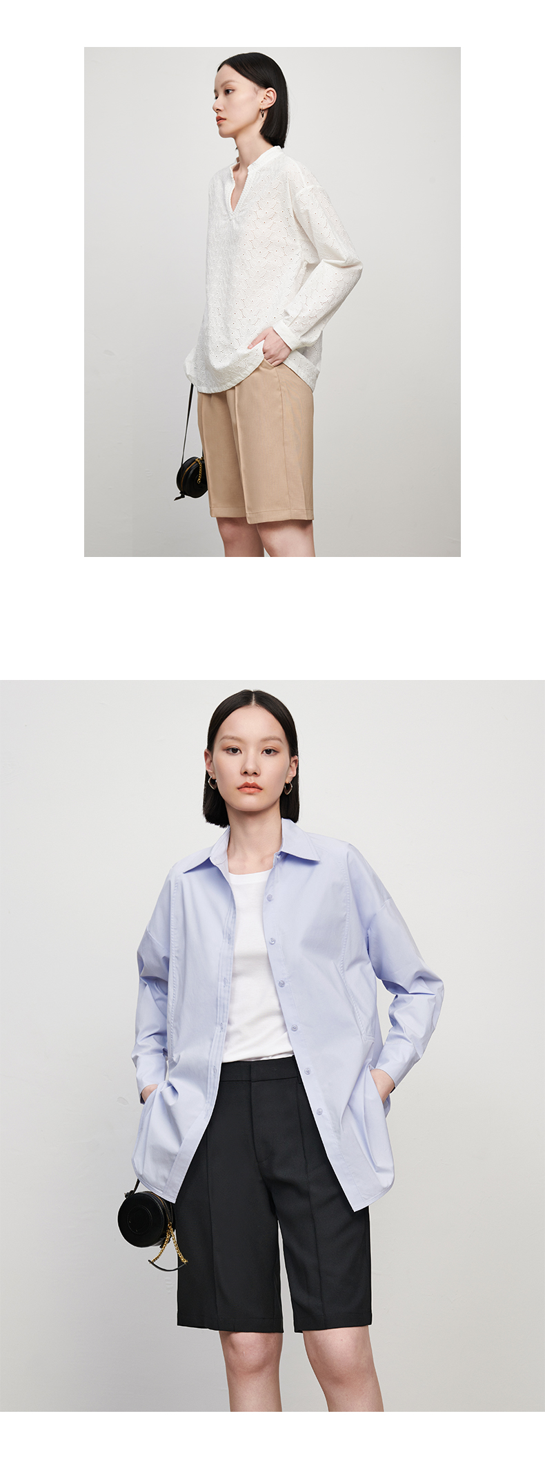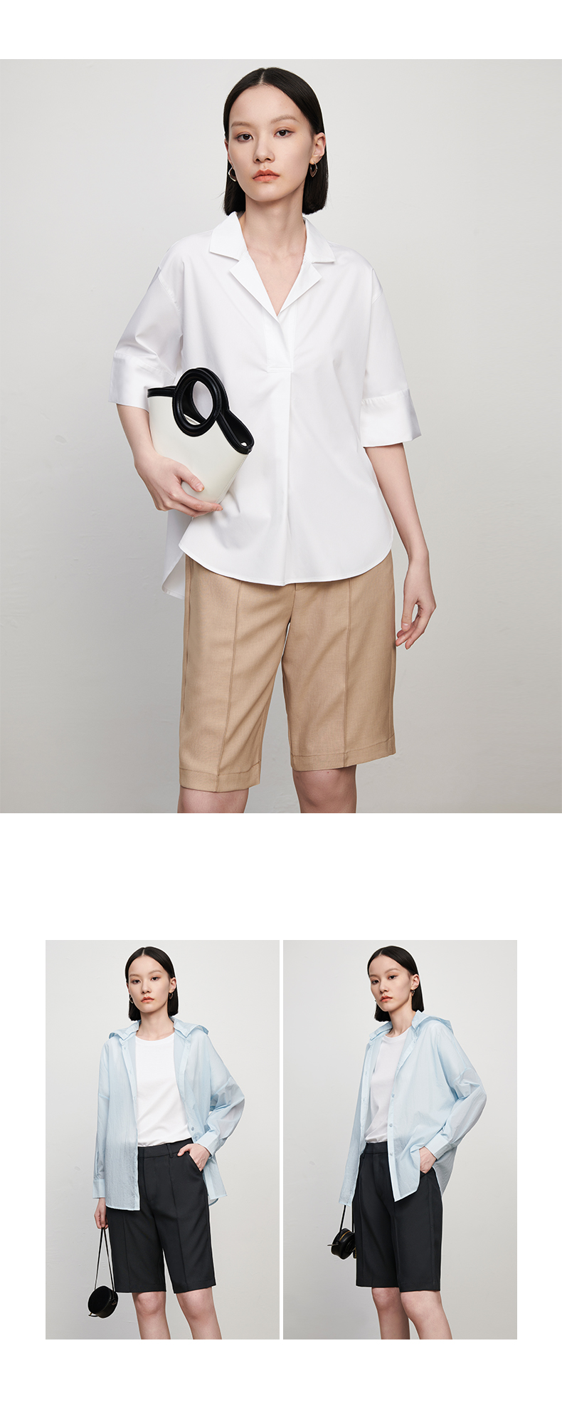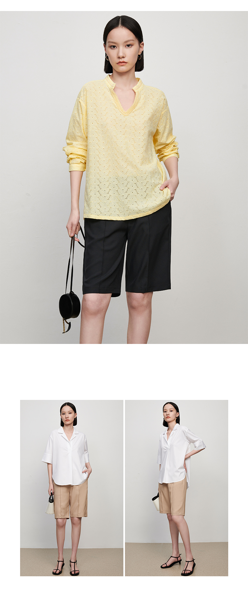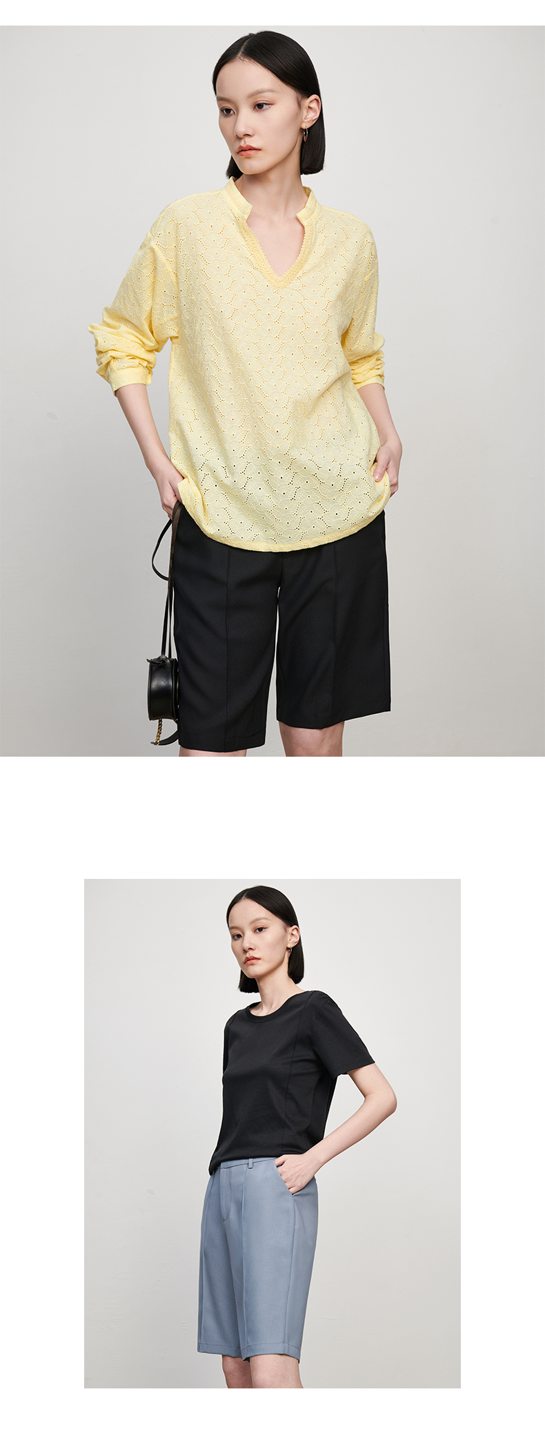 【品牌优选】【合作直发】IN AND ON新款华尔兹花纱麻感缉线休闲中裤时尚百搭五分裤