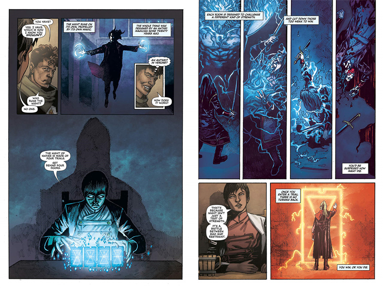 The youthful Maresh is sent to a violent and unmanageable port city on the Blood Coast of Verose, on strict orders from his father, King Nokil Maresh, to cut his military teeth in this lawless landscape. There, he encounters an unruly band of soldiers, a lawless landscape, and through a series of incredible adventures learns what it means to be a leader and what it takes to be a future king. This box-set Collects together SHADES OF MAGIC Vol 1: The Steel Prince, SHADES OF MAGIC Vol 2: Night of Knives, SHADES OF MAGIC Vol 3: The Rebel Army.