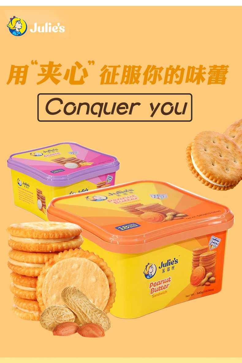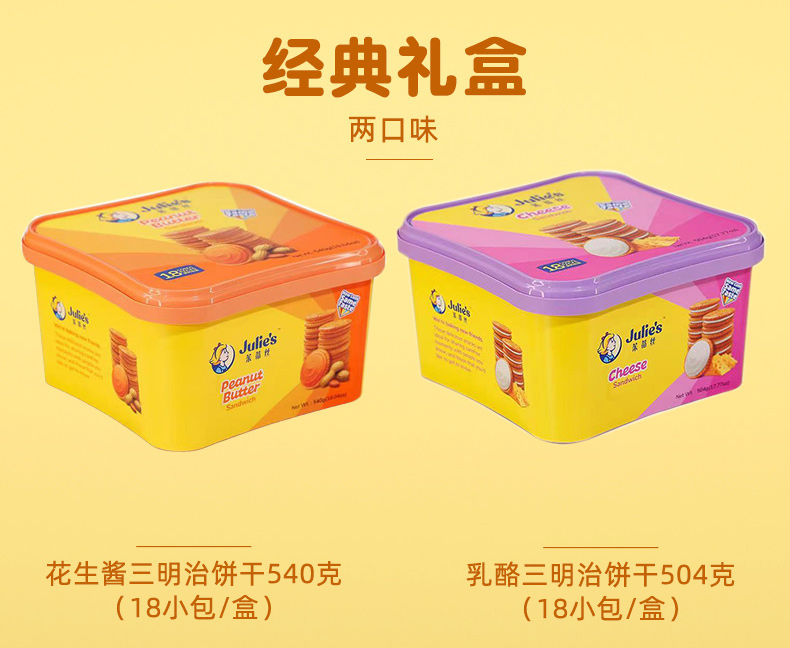 马来西亚茱蒂丝乳酪三明治饼干504g/花生酱三明治饼干540g 品一口夹心的香醇细腻 056936/056935